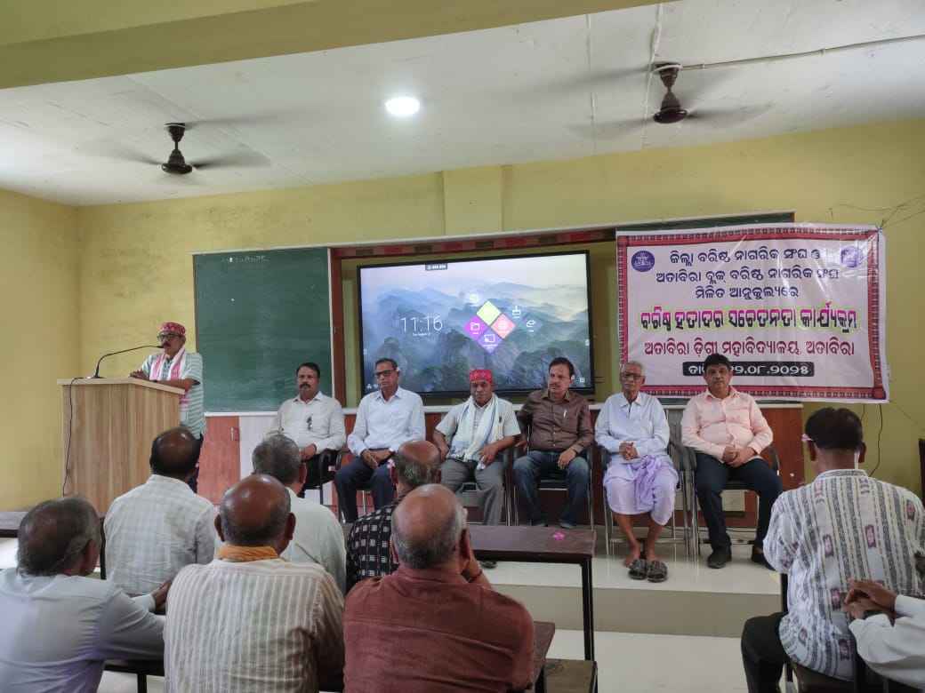 ଅତାବିରା(ଆକାଶ ମିଶ୍ର): ଆଜି ଅତାବିରା ମହାବିଦ୍ୟାଳୟରେ ବରଗଡ଼ ଜିଲ୍ଲା ଓ ଅତାବିରା ବ୍ଲକ ବରିଷ୍ଠ ନାଗରିକ ସଂଘର ମିଳିତ ଆନୁକୁଲ୍ୟରେ " ବରିଷ୍ଠ ହତାଦର" ଉପରେ ଏକ ସଚେତନତା କାର୍ଯ୍ୟକ୍ରମ ଅନୁଷ୍ଠିତ ହୋଇ ଯାଇଛି ।ମହାବିଦ୍ୟାଳୟ ର ଅଧ୍ୟକ୍ଷ ଅଶ୍ୱିନୀ କୁମାର ପ୍ରଧାନଙ୍କ ଅଧ୍ୟକ୍ଷତାରେ ଆୟୋଜିତ ଏହି ସଚେତନତା କାର୍ଯ୍ୟକ୍ରମରେ ଜିଲ୍ଲା ବରିଷ୍ଠ ନାଗରିକ ସଂଘର ସଭାପତି ପ୍ରମୋଦ ଝାଙ୍କର, ସମ୍ପାଦକ ଗୋବିନ୍ଦ ଦାଶ, ସଂଗଠନ ସମ୍ପାଦକ କେଦାର ମିଶ୍ର, ବ୍ଲକ ବରିଷ୍ଠ ନାଗରିକ ସଂଘର ସଭାପତି ଭରତ ଚନ୍ଦ୍ର ପ୍ରଧାନ, ପୂର୍ବତନ ବ୍ଲକ ବରିଷ୍ଠ ନାଗରିକ ସଂଘର ସଭାପତି ବେଣୁଧର ମିଶ୍ର, ଅଧ୍ୟାପକ ସୂର୍ଯ୍ୟନାରାୟଣ ବିଶ୍ଵାଳ ପ୍ରମୁଖ ମଞ୍ଚାସିନ