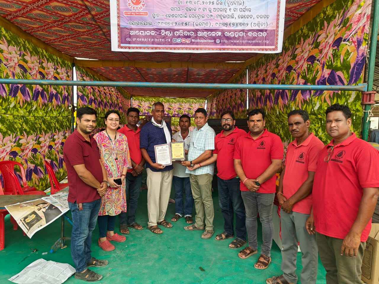 ବରଗଡ ଜିଲ୍ଲା ଭେଡେନ ବ୍ଲକ ଅନ୍ତର୍ଗତ ମହାନଦୀ ଫିଲିଙ୍ଗ ଷ୍ଟେସନ, କେଶରୀ ପାଲି, ମହୁଲପାଲି,ଭେଡେନ, ବରଗଡ ଠାରେ ସମ୍ପୂର୍ଣ ଶରୀର ଦାନ କରିଥିବା ସ୍ୱର୍ଗତ ଚମ୍ପାବତୀ ପ୍ରଧାନ ଙ୍କ ଶ୍ରାଦ୍ଧ ଦିବସ ଓ ବିଶ୍ୱ ଅଙ୍ଗ ଦାନ ଦିବସ ଅବସରରେ ନିଷ୍ଠା ପରିବାର ତରଫ ରୁ ଏକ ସ୍ଵେଚ୍ଛାକୃତ ରକ୍ତ ଦାନ ଶିବିର ଅନୁଷ୍ଠିତ ହୋଇଥିଲା। ସ୍ବର୍ଗତ ପ୍ରଧାନ ଦମ୍ପତ୍ତି ଙ୍କ ଝିଅ ଜ୍ବାଇଁ ନଳିନୀ ପ୍ରଧାନ ଓ ମହେଶ ପ୍ରଧାନ ମୁଖ୍ୟ ଅତିଥି ଭାବରେ ଯୋଗଦେଇ ଫିତା କାଟି ଶିବିର ର ଶୁଭାରମ୍ଭ କରିଥିଲେ।ବରଗଡ଼ ରକ୍ତ ଭଣ୍ଡାର ଦ୍ଵାରା ସର୍ବମୋଟ ୫୩ୟୁନିଟ ରକ୍ତ ସଂଗୃହୀତ ହୋଇଥିଲା।ଅନ୍ଧତ୍ୱ ଦୂରୀକରଣ ପାଇଁ ଚକ୍ଷୁ ଦାନ ତଥା ଡାକ୍ତରୀ ଶିକ୍ଷା ର ବିକାଶ ପାଇଁ ସମ୍ପୂର୍ଣ ଶରୀର ଦାନ କରିଛନ୍ତି ଭେଡେନ ଟିହୀଙ୍କି ପାଲି ର ସ୍ଵର୍ଗତ ଗଙ୍ଗାଧର ପ୍ରଧାନ ଓ ତାଙ୍କ ଧର୍ମ ପତ୍ନୀ ସ୍ୱର୍ଗତ ଚମ୍ପାବତୀ ପ୍ରଧାନ।ସ୍ୱର୍ଗତ ପ୍ରଧାନ ଙ୍କ ସୁପୁତ୍ର ରମେଶ ପ୍ରଧାନ ଓ ଉମେଶ ପ୍ରଧାନ, ପରିବାର ବର୍ଗ ଓ ଶୁଭେଚ୍ଛୁ ମାନେ ସ୍ଵତଃ ରକ୍ତ ଦାନ କରିଥିଲେ ।ନିଷ୍ଠା ପରିବାରର ସଭାପତି ଶ୍ରୀ ଅଶ୍ୱିନୀ ତ୍ରିପାଠୀ, ଉପ ସଭାପତି ସଚି ପଣ୍ଡା,କୋଷାଧ୍ୟକ୍ଷ ଶ୍ୟାମ ସୁନ୍ଦର ସାହୁ,ଜୟନ୍ତ ପ୍ରଧାନ, ଝସ କେତନ ସାହୁ ,ରାତ୍ର ପ୍ରଧାନ, ହେମାଞ୍ଚଲ ସାହୁ ଓ ଅନ୍ୟ ସଦସ୍ୟ ମାନେ ଶିବିର ପରିଚାଳନା କରିଥିଲେ।