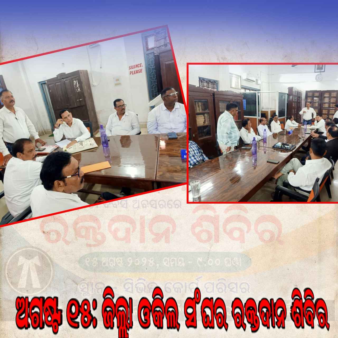 ବଲାଙ୍ଗୀର (ପ୍ରେରଣା ଖବର): ଆସନ୍ତା ଅଗଷ୍ଟ ୧୫ ତାରିଖ ପବିତ୍ର ସ୍ଵାଧୀନତା ଦିବସ ପାଳନ ଅବସରରେ ବଲାଙ୍ଗୀର ଜିଲ୍ଲା ଓକିଲ ସଂଘ ଆନୁକୂଲ୍ୟରେ ଏକ ରକ୍ତଦାନ ଶିବିର ଆୟୋଜନ ହେବାକୁ ଯାଉଛି l ସ୍ଥାନୀୟ ସିଭିଲ କୋର୍ଟ ପରିସରରେ ସକାଳ ୯ଟା ରେ ଅନୁଷ୍ଠିତ ହେବାକୁଥିବା ଏହି ରକ୍ତଦାନ ଶିବିରରେ ଯେକୌଣସି ବ୍ୟକ୍ତି ରକ୍ତ ଦେଇପାରିବେ l ଏଥିପାଇଁ ବଲାଙ୍ଗୀର ଜିଲ୍ଲାର ବିଭିନ୍ନ ବର୍ଗର ଲୋକଙ୍କୁ ସାମିଲ କରାଯାଇଛି l ବାର୍ ଓ ବେଞ୍ଚ ର ମିଳିତ ସହଯୋଗରେ ଜିଲ୍ଲା ଓକିଲ ସଂଘ ପ୍ରଥମ ଥର ପାଇଁ ଏପରି ଏକ ଅନନ୍ୟ କାର୍ଯ୍ୟକ୍ରମ ହାତକୁ ନେଇଛି l ଏହି ରକ୍ତଦାନ ଶିବିର ର ସଫଳ ଆୟୋଜନ ପାଇଁ ସଂଘ ର ସଭାପତି ବାସୁଦେବ ରଥଙ୍କ ଆବାହକତ୍ବରେ ଏକ ପ୍ରସ୍ତୁତି ବୈଠକ ମଧ୍ୟ ହୋଇସାରିଛି l ରକ୍ତଦାନ ଜୀବନଦାନ ସଦୃଶ ଅଟେ ଏବଂ ଏହି ଶିବିର ମାଧ୍ୟମରେ ସମାଜକୁ ଏକତା ଓ ଭାଇଚାରା ର ଏକ ବାର୍ତ୍ତା ଦେବା ଓକିଲ ସଂଘର ଉଦ୍ଦେଶ୍ୟ ବୋଲି ସଂଘର ସଭାପତି ବାସୁଦେବ ରଥ ପ୍ରକାଶ କରିଛନ୍ତି l