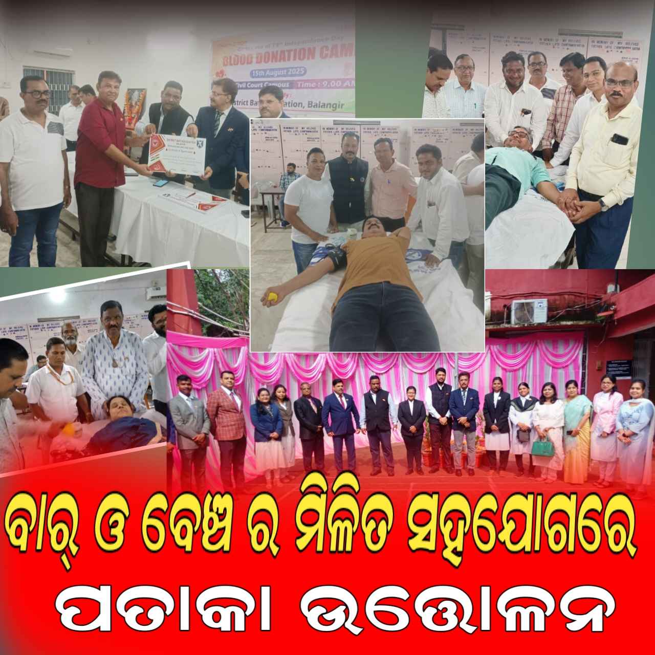 ସଂଘ ର ସମସ୍ତ ସଭ୍ଯ ସହଯୋଗ କରିଥିଲେ l ଏହି ଅବସରରେ କୋର୍ଟ ପରିସରରେ ନାଚଗୀତ ଓ ଅନ୍ୟାନ୍ୟ ରଙ୍ଗାରଙ୍ଗ କାର୍ଯ୍ୟକ୍ରମ ଅନୁଷ୍ଠିତ ହୋଇଥିଲା l ଆଡଭୋକେଟ ସୁଶାନ୍ତ ବାଗ ଙ୍କ କୋଶଲି କବିତା ସମସ୍ତଙ୍କ ମନ ମୋହିଥିଲା l ପରେ କୋର୍ଟ ପରିସରରେ ବଲାଙ୍ଗୀର ଜିଲ୍ଲା ଓକିଲ ସଂଘ ପକ୍ଷରୁ ଏକ ରକ୍ତଦାନ ଶିବିର ଅନୁଷ୍ଠିତ ହୋଇଥିଲା l ଶିବିରରେ ୫୭ ୟୁନିଟ ରକ୍ତ ସଂଗ୍ରହ ହୋଇଥିବା ବେଳେ ସିଭିଲ୍ କୋର୍ଟ ରେଜିଷ୍ଟlର ଙ୍କ ସମେତ ଦୁଇ ଜଣ ପୋଲିସ କର୍ମଚାରୀ ମଧ୍ୟ ରକ୍ତଦାନ କରିଥିଲେ l ଏଥିରେ ଆଡଭୋକେଟ ଅରବିନ୍ଦ ପୁଝାରୀ, ସଂଜୀବ ହୋତା, ସୁବାସ ନନ୍ଦ, ରାମାନନ୍ଦ ଥନlପତି,