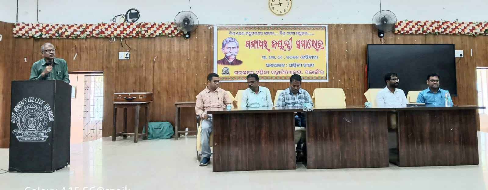 ବଲାଙ୍ଗିର(ଦେବାଶିଷ ବହିଦାର): ସରକାରୀ ମହିଳା ମହାବିଦ୍ୟାଳୟରେ ଗଙ୍ଗାଧର ଜୟନ୍ତୀ ପାଳିତ ହୋଇଯାଇଛି । ମହାବିଦ୍ୟାଳୟର ସାହିତ୍ୟ ସଂସଦ ଆନୁକୂଲ୍ୟରେ ଆୟୋଜିତ ଜୟନ୍ତୀ ସମାରୋହରେ ଅଧ୍ୟକ୍ଷ ଡଃ ଅରବିନ୍ଦ କୁମାର ଓଝା ସଭାପତିତ୍ୱ କରିଥିବା ବେଳେ ଡଃ ସଦାଶିବ ମଲ୍ଲିକ, ନିରଞ୍ଜନ ସେଟ୍, ରତିକାନ୍ତ ନାଏକ। ଡଃ ସିଦ୍ଧେଶ୍ୱର ପଧାନ,ଡଃ ସରୋଜ କୁମାର ଜଗଦଲା ପ୍ରମୁଖ ମଞ୍ଚାସୀନ ଥିଲେ ।