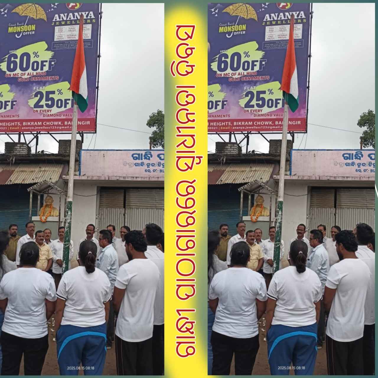 ବଲାଙ୍ଗୀର(ପ୍ରେରଣା ଖବର): ସ୍ଥାନୀୟ ଟିକ୍ରାପଡା ଗାନ୍ଧୀ ପାଠାଗାର ରେ ୭୯ତମ ସ୍ୱାଧୀନତା ଦିବସ ପାଳନ କରା ଯାଇଛି l ପ୍ରାତଃ ରାମଧୂନ ସହ ସକାଳ ୮ଘଣ୍ଟା ସମୟରେ ଗାନ୍ଧି ପାଠାଗାର ସଭାପତି ପ୍ରକାଶ ନେପାକ ପାଠାଗାର ସମସ୍ତ ସଭ୍ୟ ସଭ୍ୟା, ବିଦ୍ୟାଳୟ ଛାତ୍ରଛାତ୍ରୀ ତଥା ବିଙ୍ଗ ଷ୍ଟ୍ରଙ୍ଗ କ୍ଳବର ସଭ୍ୟ ସଭ୍ୟା ମାନଙ୍କ ଗହଣରେ ଜାତୀୟ ପତାକା ଉତ୍ତୋଳନ କରିଥିଲେ l ପାଠାଗାରର ବରିଷ୍ଠ ସଭ୍ୟ ଭଗବାନ ବଗର୍ତି, ସମ୍ପାଦକ ପ୍ରଦୀପ ସାହୁ, ଶ୍ରୀ ନେପାକ ପ୍ରମୁଖ ମହାତ୍ମା ଗାନ୍ଧୀଙ୍କ ପ୍ରତିମୂର୍ତ୍ତିରେ ମାଲ୍ୟାର୍ପଣ କରି ଉଦବୋଧନ ଦେଇଥିଲେ l ବରିଷ୍ଠ ସଭ୍ୟ ରାଜେନ୍ଦ୍ର ମିଶ୍ର, ବୈଷ୍ଣବ ସାହୁ, ହରିଶଙ୍କର ପଣ୍ଡା, ସଂଗ୍ରାମ ବହିଦାର, ଆକବର ଖାନ,ଅବଦୁଲ ରଜାକ, ସୁବାଷ ଦାସ, ଅଜିତ ପଣ୍ଡା ପ୍ରମୁଖ କାର୍ଯ୍ୟକ୍ରମ ଆୟୋଜନରେ ସହଯୋଗ କରିଥିଲେ l ବିଙ୍ଗ ଷ୍ଟ୍ରଙ୍ଗ ହେଲଥ କ୍ଲବର ସତ୍ୟନାରାୟଣ ଦର୍ଜୀ ଏବଂ ସମସ୍ତ ସଭ୍ୟ ସଭ୍ୟା, ବିଦ୍ୟାଳୟ ଛାତ୍ରଛାତ୍ରୀ ତଥା ପାଠାଗାର ସଭ୍ୟ ସଭ୍ୟା ସମସ୍ତେ ଉପସ୍ଥିତ ଥିଲେ l
