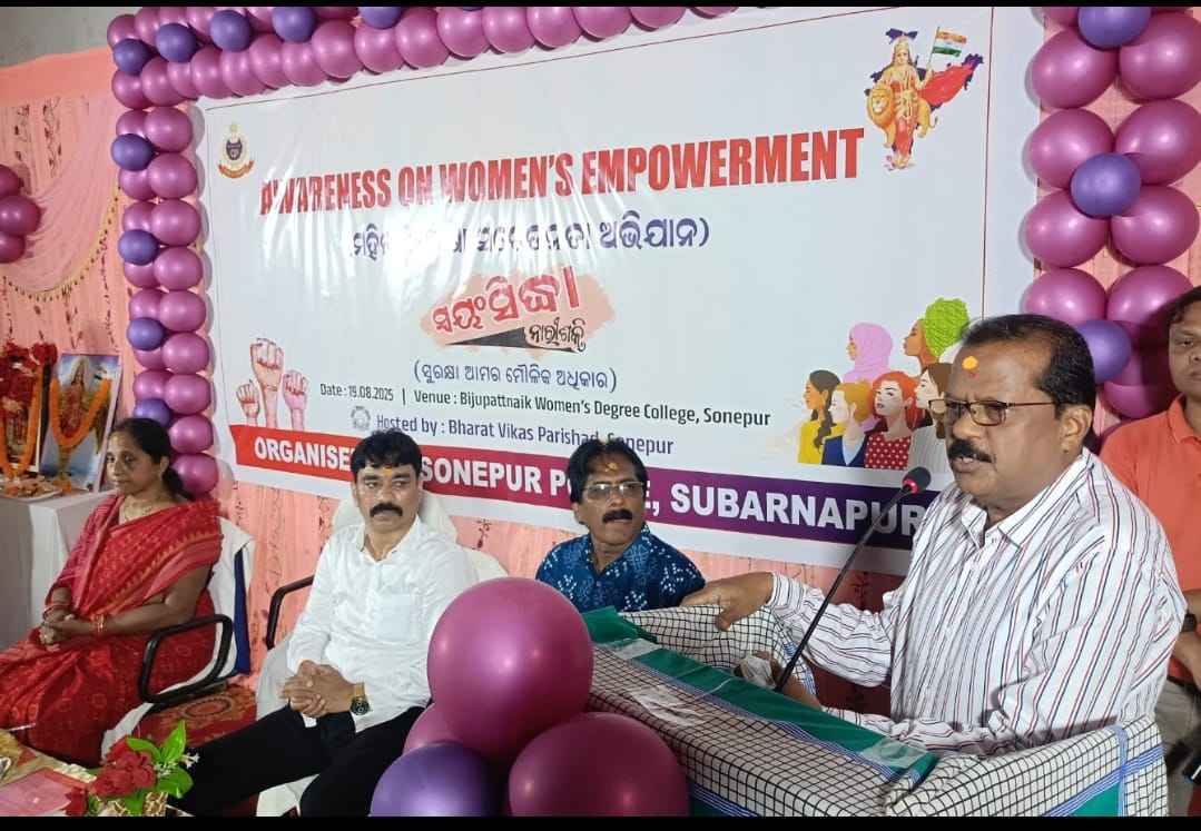 ଶ୍ରୀ ଦୁର୍ୟୋଧନ ସାହୁ ଙ୍କ ସଭାପତିତ୍ୱ ରେ ଅନୁଷ୍ଠିତ ଏହି ସଭାରେ ମହାବିଦ୍ୟାଳୟ ର ଅଧ୍ୟାପକ ଶ୍ରୀ ମଦନ ସୁନ୍ଦର ଖେତି ସଭା ପରିଚାଳନା କରିଥିଲେ l. ମହିଳା ମାନଙ୍କର ଆତ୍ମବିଶ୍ୱାସ ବୃଦ୍ଧି, ଆଇନ ସଚେତନତା ଏବଂ ସେମାନଙ୍କ ଅଧିକାର ଓ କର୍ତ୍ତବ୍ୟ କୁ ଅବଗତ କରାଇବା ସକାଶେ ଏହି କାର୍ଯ୍ୟକ୍ରମ ରେ ପାଞ୍ଚ ଜଣ ମହିଳା ଡି ଏସ ପି ରେଣୁକା ସୁନା, ରାଜେଶ୍ୱରୀ ଭୋଇ, ପ୍ରମୁଖ ଙ୍କ ସହ ଅଧ୍ୟାପିକା ତଥା ସମାଜ ସେଵୀ ସୁନନ୍ଦା ସାହୁ ଆଇନଜୀବୀ ନନ୍ଦିନୀ ଶତପଥୀ ଆଇନଜୀବୀ ମଧୁମିତା ପରମ ଗୁରୁ ଛାତ୍ରୀ ମାନଙ୍କୁ ଉତ୍ସାହିତ କରିବା ସହିତ ପ୍ରଶ୍ନୋତ୍ତର କାର୍ଯ୍ୟକ୍ରମ ମାଧ୍ୟମରେ ସେମାନଙ୍କର ସନ୍ଦେହ ଦୂର କରିଥିଲେ. I ଭାରତ ବିକାଶ ପରିଷଦ ର ସଦସ୍ୟ କ୍ଷୀରୋଦ ମେହେର,କବିତା ପଧାନ,ଶ୍ରଦ୍ଧlଞ୍ଜଳି ମିଶ୍ର, ପ୍ରମୋଦ କୁମାର ସାହୁ,ଦାମୋଦର ପଣ୍ଡା, ଜ୍ୟୋତିର୍ମୟ ମିଶ୍ର,ପଦ୍ମଲୋଚନ ମିଶ୍ର, ପ୍ରତିମା ରଥ, ହରିଶଙ୍କର ମିଶ୍ର, ଲଷ୍ମୀ ପ୍ରିୟା ପାଣିଗ୍ରାହୀ ଗୀତାଞ୍ଜଳି ମିଶ୍ର ଙ୍କ ସମେତ ମହାବିଦ୍ୟାଳୟ ର ସମସ୍ତ କର୍ମକର୍ତ୍ତା ଯୋଗଦାନ କରିଥିଲେ l କଲେଜ୍ ଛାତ୍ରୀ ଙ୍କ ଦ୍ବାରା ନାରୀ ସଶକ୍ତି କରଣ ଓ ସଚେତନତା ଉପରେ ପରିବେଷିତ ସମ୍ବଲପୁରୀ ନାଟିକା *ମୁଇଁ ବି ଝି* ର ନିଖୁଣ ଅଭିନୟ ଅତିଥି ଓ ଛାତ୍ରୀ ଙ୍କୁ ମନ୍ତ୍ର ମୁଗ୍ଧ କରିଥିଲା l l ଜିଲ୍ଲାପାଳ ଓ ଏସପି ଙ୍କୁ କଲେଜ୍ ଛାତ୍ରୀ ଙ୍କ ଦ୍ଵାରା ଭବ୍ୟ ସ୍ଵାଗତ ସମ୍ବର୍ଦ୍ଧନା ଜ୍ଞାପନ କରା ଯାଇଥିଲା l କାର୍ଯ୍ୟକ୍ରମ ଟି ବନ୍ଦେ ମାତରମ ଗାନ ସହିତ ଆରମ୍ଭ ହୋଇ ଜାତୀୟ ସଂଗୀତ ଗାନ ରେ ଶେଷ କରାଯାଇଥିଲା , ଶେଷରେ ସ୍ମିତା ରାଣୀ ମେହେର ଧନ୍ୟବାଦ ଅର୍ପଣ କରିଥିଲେ l