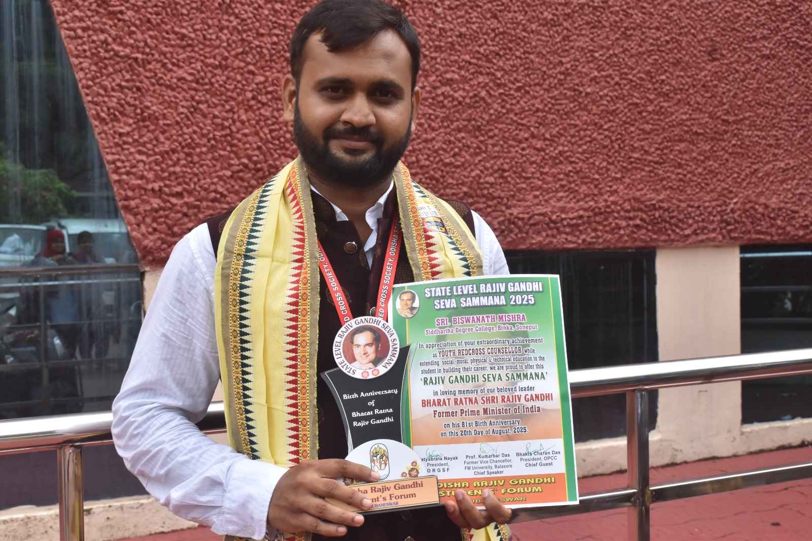 ବିନିକା(ହିମାଂଶୁ ଶେଖର ପୁଟେଲ)ରେଡକ୍ରସ ତରଫରୁ ଜାରି ରହିଥିବା ବିଭିନ୍ନ ଉଲ୍ଲେଖନୀୟ କାର୍ଯ୍ୟର ସଫଳ ସମ୍ପାଦନା ପାଇଁ ବିନିକା ସିଦ୍ଧାର୍ଥ ଡିଗ୍ରୀ ମହାବିଦ୍ୟାଳୟର ଅର୍ଥନୀତି ବିଭାଗ ଅଧ୍ୟାପକ ତଥା ସୋନପୁର ଜିଲ୍ଲା ଯୁବ ରେଡକ୍ରସ ସଂଯୋଜକ ବିଶ୍ବନାଥ ମିଶ୍ରଙ୍କୁ ରାଜୀବ ଗାନ୍ଧୀ ସେବା ସମ୍ମାନରେ ସମ୍ମାନିତ କରାଯାଇଥିବାରୁ ଏ ଅଞ୍ଚଳର ଶିକ୍ଷାପ୍ରେମୀ,ଅଧ୍ୟୟନରତ ଛାତ୍ରଛାତ୍ରୀ ତଥା ସ୍ୱେଚ୍ଛାସେବୀ ମହଲରେ ଖୁସିର ଲହରୀ ଖେଳିଯାଇଛି । ସୂଚନା ଯୋଗ୍ୟ ଯେ ଆଜି ବୁଧବାର ଅର୍ଥାତ ୨୦ଅଗଷ୍ଟ ଭାରତରତ୍ନ ରାଜୀବ ଗାନ୍ଧିଙ୍କ ୮୧ତମ ଜନ୍ମଦିବସ ଅବସରରେ ଭୁବନେଶ୍ବର ସ୍ଥିତ ଜୟଦେବଭବନ ହଲଠାରେ ଆୟୋଜିତ ରାଜ୍ୟସ୍ତରୀୟ ବର୍ଣ୍ଣାଢ଼୍ୟ ସମାରୋହରେ ଅଧ୍ୟାପକ ବିଶ୍ଵନାଥ ମିଶ୍ର ରାଜୀବ ଗାନ୍ଧୀ ସେବା ସମ୍ମାନରେ ସମ୍ମାନିତ ହୋଇଛନ୍ତି ।ଅନୁଷ୍ଠିତ ଏହି ସ୍ବତନ୍ତ୍ର କାର୍ଯ୍ୟକ୍ରମରେ ଓଡ଼ିଶା ପ୍ରଦେଶ କଂଗ୍ରେସ କମିଟିର ସଭାପତି ଭକ୍ତ ଚରଣ ଦାସ ମୁଖ୍ୟ ଅତିଥି ଭାବରେ ଯୋଗଦେଇଥିଲେ | ଏହି ଅବସରରେ ଅବସରପ୍ରାପ୍ତ ଉପ-ମାର୍ଶଲ ଭାରତୀୟ ବାୟୁସେନାର ମହାରାଜା ମହନ୍ତ, ପର୍ଯ୍ୟବେକ୍ଷକ ମୁଖ୍ୟ ସମ୍ପାଦକ ଡ. ପବିତ୍ର ମୋହନ ସାମନ୍ତରାୟ, ପୂର୍ବତନ ମନ୍ତ୍ରୀ ସୁରେଶ କୁମାର ରାଉତରାୟ,ପୂର୍ବତନ ରାଜ୍ୟସଭା ସଭ୍ୟ ରାମଚନ୍ଦ୍ର ଖୁଣ୍ଟିଆ,ଓଡ଼ିଶା ପ୍ରଦେଶ କଂଗ୍ରେସ କମିଟିର ପୂର୍ବତନ ସଭାପତି ନିରଞ୍ଜନ ପଟ୍ଟନାୟକ,ଫକୀରମୋହନ ବିଶ୍ବିଦ୍ୟାଳୟର ପୂର୍ବତନ କୁଳପତି ପ୍ରଫେସର କୁମାରବର୍ ଦାସ, ଓଡ଼ିଶା ରାଜୀବ ଗାନ୍ଧୀ ଛାତ୍ର ଫୋରମର ସଭାପତି ସତ୍ୟବ୍ରତ ନାୟକ ପ୍ରମୁଖ ଉପସ୍ଥିତ ରହି ର୍ରେଡ଼କ୍ରସର ଉଲ୍ଲେଖନୀୟ କାର୍ଯ୍ୟ ପାଇଁ ଅଧ୍ୟାପକ ଶ୍ରୀ ମିଶ୍ରଙ୍କୁ ଟ୍ରଫି,ମାନପତ୍ର ଓ ଉପଢ଼ୌକନ ଦେଇ ସମ୍ମାନିତ କରିଥିଲେ |ଏହି ଖବର ଜାଣିବା ପରେ ବିଶେଷ କରି ବିନିକା ସିଦ୍ଧାର୍ଥ କଲେଜର ସମସ୍ତ ଅଧ୍ୟାପକ, ଅଧ୍ୟାପିକା,କର୍ମଚାରୀ ଏବଂ ଛାତ୍ରଛାତ୍ରୀଙ୍କ ଠାରେ ଖୁସି ପ୍ରକଟ ସୃଷ୍ଟି କରିଛି |