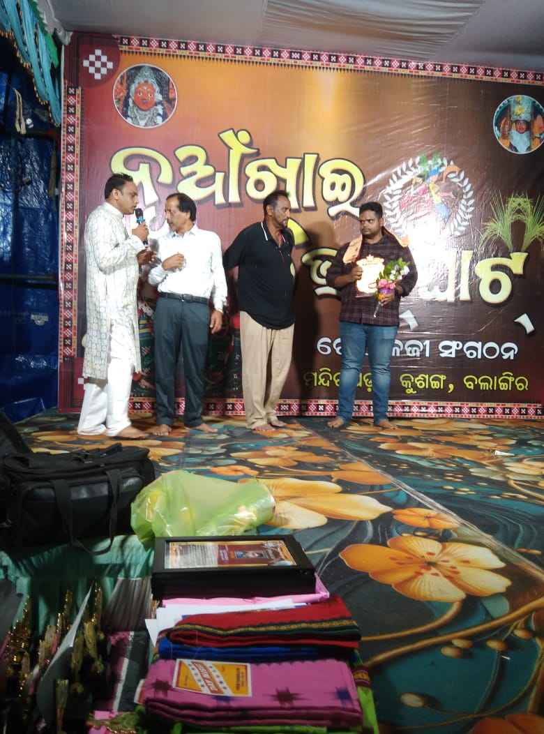 ବଲାଙ୍ଗୀର (ପ୍ରେରଣା ଖବର): ପଶ୍ଚିମ ଓଡିଶାର ପବିତ୍ର ଗଣପର୍ବ ନୂଆଁଖାଇ ଅବସରରେ ଗୋପାଳଜୀ ସଂଗଠନ କୁଶଙ୍ଗ ତରଫରୁ “ନୂଆଁଖାଇ ଭେଟଘାଟ” ସ୍ଥାନୀୟ ଜଗନ୍ନାଥ ମନ୍ଦିର ପ୍ରାଙ୍ଗଣରେ ଅନିଷ୍ଠିତ ହୋଇଯାଇଛି। ଉକ୍ତ ଅବସରରେ ଅପରାହ୍ନରେ ଅନୁଷ୍ଠିତ ସାସ୍କୃତିକ ସଭାରେ କୁଶଙ୍ଗ ଗ୍ରାମର ଗୌନ୍ତିଆ ବୃନ୍ଦାବନ ପଟେଲ ମୁଖ୍ୟ ଅତିଥି ଭାବରେ ଯୋଗ ଦେଇଥିଲା ବେଳେ ସମାଜସେବୀ ଗୋଲକ ବିହାରୀ ପଟେଲ ସମ୍ମାନିତ ଅତିଥି ଭାବରେ ଉପସ୍ଥିତ ଥିଲେ। ଏହି ଅବସରରେ କୁଶଙ୍ଗ ଗ୍ରାମରୁ ପ୍ରଥମକରି ଓଡିଶା ପ୍ରଶାସନିକ ସେବା ପରୀକ୍ଷା ରେ କୃତକାର୍ଯ୍ୟ ହୋଇଥିବା ଅଙ୍କିତ ନାଏକ, ପଦ୍ମପୁର ଅଞ୍ଚଳ ମହାବିଦ୍ୟାଳୟର ଅବସରପ୍ରାପ୍ତ ଅଧ୍ୟକ୍ଷ ଲଲିତ ମୋହନ ପଣ୍ଡା,