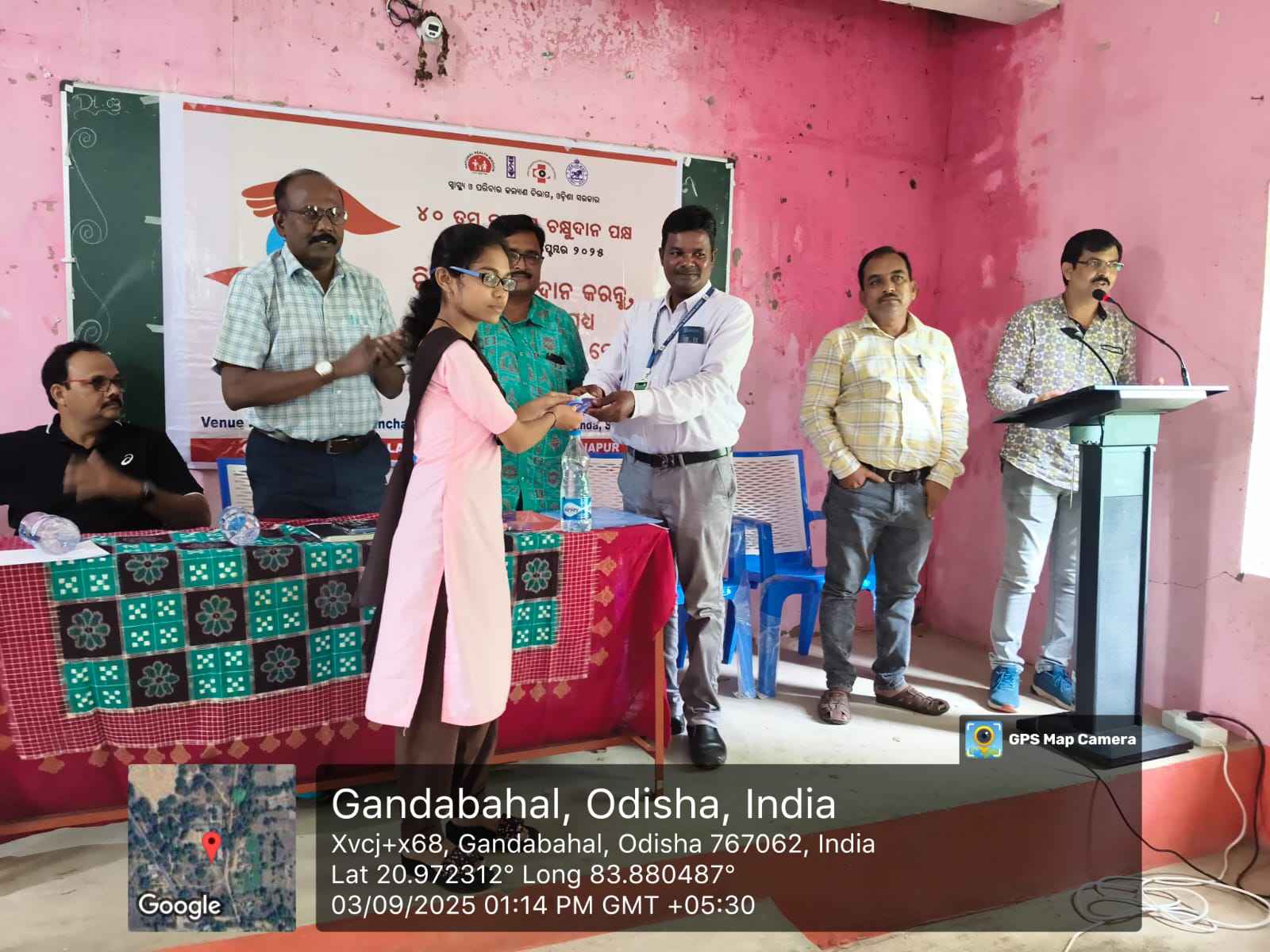 ଉକ୍ତ ସଭାରେ ମହାବିଦ୍ୟାଳୟ ର ସମସ୍ତ ଅଧ୍ୟାପକ, ଅଧ୍ୟାପିକା ତଥା ଛାତ୍ର ଛାତ୍ରୀ ସବୁ ,ସ୍ଵାସ୍ଥ୍ୟ ବିଭାଗ ର କର୍ମଚାରୀ ଅଧିକାରୀ ବୃନ୍ଦ ଏବଂ ସାମ୍ବାଦିକ ବନ୍ଧୁ ମାନେ ଉପସ୍ଥିତ ଥିଲେ । ସ୍ୱାସ୍ଥ୍ୟପରିଦର୍ଶକ ପ୍ରମୋଦ କୁମାର ସାହୁ ସଭା ପରିଚାଳନା କରିଥିବାବେଳେ DEO,NPCB & VI ବିଭାଗ ର ଅଶ୍ଵିନୀ କୁମାର ମେହେର ଏକ ମ୍ୟାଜିକ ପରିବେଷଣ କରି କାର୍ଯ୍ୟକ୍ରମ କୁ ପୂର୍ଣ୍ଣ ସହଯୋଗ କରିଥିଲେ । ଶେଷରେ ଜନସ୍ୱାସ୍ଥ୍ୟ ସମ୍ପ୍ରସାରଣ ଅଧିକାରୀ ପ୍ରଦ୍ୟୁମ୍ନ କୁମାର ସାହୁ କୁଇଜ୍ କାର୍ଯ୍ୟକ୍ରମ ପରିଚାଳନା କରି ୧୦ ଜନ କୃତି ଛାତ୍ର ଛାତ୍ରୀ ଙ୍କୁ ଅତିଥି ମାନେ ପୁରସ୍କୃତ କରିଥିଲେ ଏବଂ ଉପସ୍ଥିତ ସମସ୍ତଙ୍କୁ ଧନ୍ୟବାଦ ଅର୍ପଣ କରିଥିଲେ . ଚକ୍ଷୁ ଦାନ ପକ୍ଷ ପାଳନ ଉପରେ ଏକ ଲିଫ ଲେଟ ପ୍ରଦର୍ଶିତ କରାଯାଇ ସମସ୍ତ ଙ୍କୁ ସଚେତନ କରିବା ପାଇଁ ବଣ୍ଟନ କରାଯାଇଥିଲା.