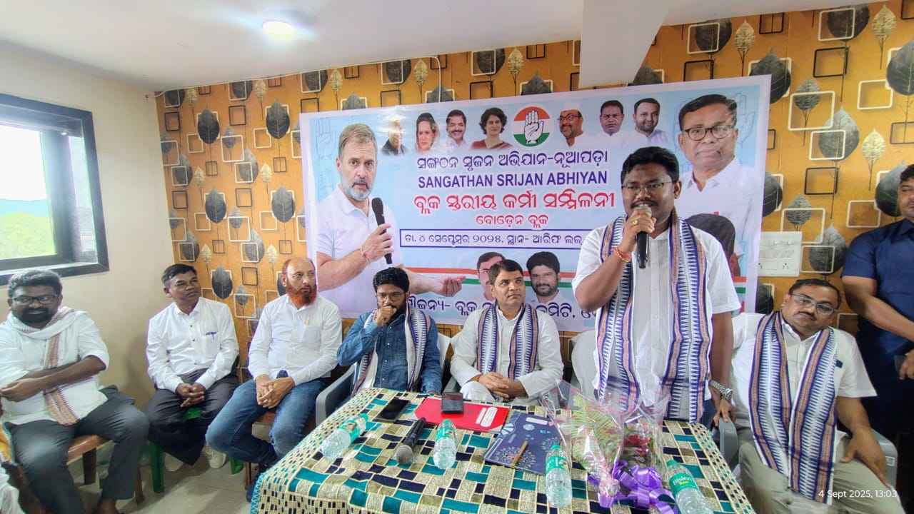 ନୂଆପଡ଼ା (ରାମନାଥ ପଣ୍ଡା)ନୂଆପଡ଼ା ଜିଲ୍ଲା ବୋଡ଼େନ ବ୍ଲକ ଅନ୍ତର୍ଗତ ବୋଡ଼େନ ଆରିଫ ଲଜରେ ଜିଲ୍ଲା କଂଗ୍ରେସ କମିଟି ପକ୍ଷରୁ ବ୍ଲକ ସ୍ତରୀୟ କର୍ମୀ ସମ୍ମିଳନୀ ସଂଗଠନ ସୃଜନ ଅଭିଯାନ ଅନୁଷ୍ଠିତ ହୋଇଯାଇଅଛି। ଏହି ସମ୍ମିଳନୀରେ ଅଖିଳ ଭାରତୀୟ କଂଗ୍ରେସ କମିଟି ସଚିବ ମନୋଜ ଚୌହାନ ଯୋଗ ଦେଇ ଜାତୀୟ କଂଗ୍ରେସର ସ୍ଥିତି ଦିନକୁ ଦିନ ମଜଭୁତ ହେଉଥିବା ପ୍ରକାଶ କରିବା ସହ ତୃଣମୂଳ ସ୍ତରରେ ଦଳ ସଙ୍ଗଠନକୁ ମଜଭୁତ କରିବାକୁ କର୍ମୀଙ୍କୁ ଆହ୍ବାନ କରିଥିଲେ। ଆଜିର କାର୍ଯ୍ୟକ୍ରମରେ ଗୁଣପୁର ବିଧାୟକ ସତ୍ୟଜିତ ଗମାଙ୍ଗୋ ସହ ଦୁଇ ପର୍ଯ୍ୟବେକ୍ଷକ ମୂରଲୀ ନାଏକ ଓ ଟଙ୍କଧର ସାହୁ ମଧ୍ୟ ଯୋଗ ଦେଇ ତୃଣମୂଳ ସ୍ତରରେ ସଙ୍ଗଠିତ ହେବାକୁ ଆହ୍ଵାନ କରିଥିଲେ। ସଭାରେ ଖଡିଆଳ ଦଳୀୟ ବିଧାୟକ ପ୍ରତିନିଧି କମଲ ଚରଣ ତାଣ୍ଡି, ନୂଆପଡ଼ା ଜିଲ୍ଲା ସଂଯୋଜକ ଘାସିରାମ ମାଝୀ , ରାଜ୍ୟ ପିସିସି ମେମ୍ୱର ଫାରୁକ ମହମ୍ମଦ ପ୍ରମୁଖ ମଞ୍ଚାଷିନ ଥିବାବେଳେ ଅନ୍ୟମାନଙ୍କ ମଧ୍ୟରେ ଭାଗିରଥି ଦଣ୍ଡସେନା, ଦିଗ ଜଗତ, ପରକ୍ଷିତ ଛତ୍ରିଆ, ରାୟ ସିଂ ହଂସ, ଦିଲ୍ଲିପ ବିଭାର, ଅଭି ମହାନନ୍ଦ ,ଚୈତନ୍ୟ ଜଗତ,ପିତାମ୍ବର ବେହେରା,ରାଜେଶ ବେହେରା, ପ୍ରଦ୍ୟୁମ୍ନ ଦଣ୍ଡସେନା ,ଦେବା ମାଝୀ ,ବିଜୟ ଧରୁଆ, ସହଦେବ ମାଝୀଙ୍କ ସମେତ ବ୍ଲକ ସ୍ତରୀୟ ପଦାଧିକାରୀ ଏବଂ ବହୁ କଂଗ୍ରେସ କର୍ମୀ ଯୋଗଦାନ କରିଥିଲେ ।
