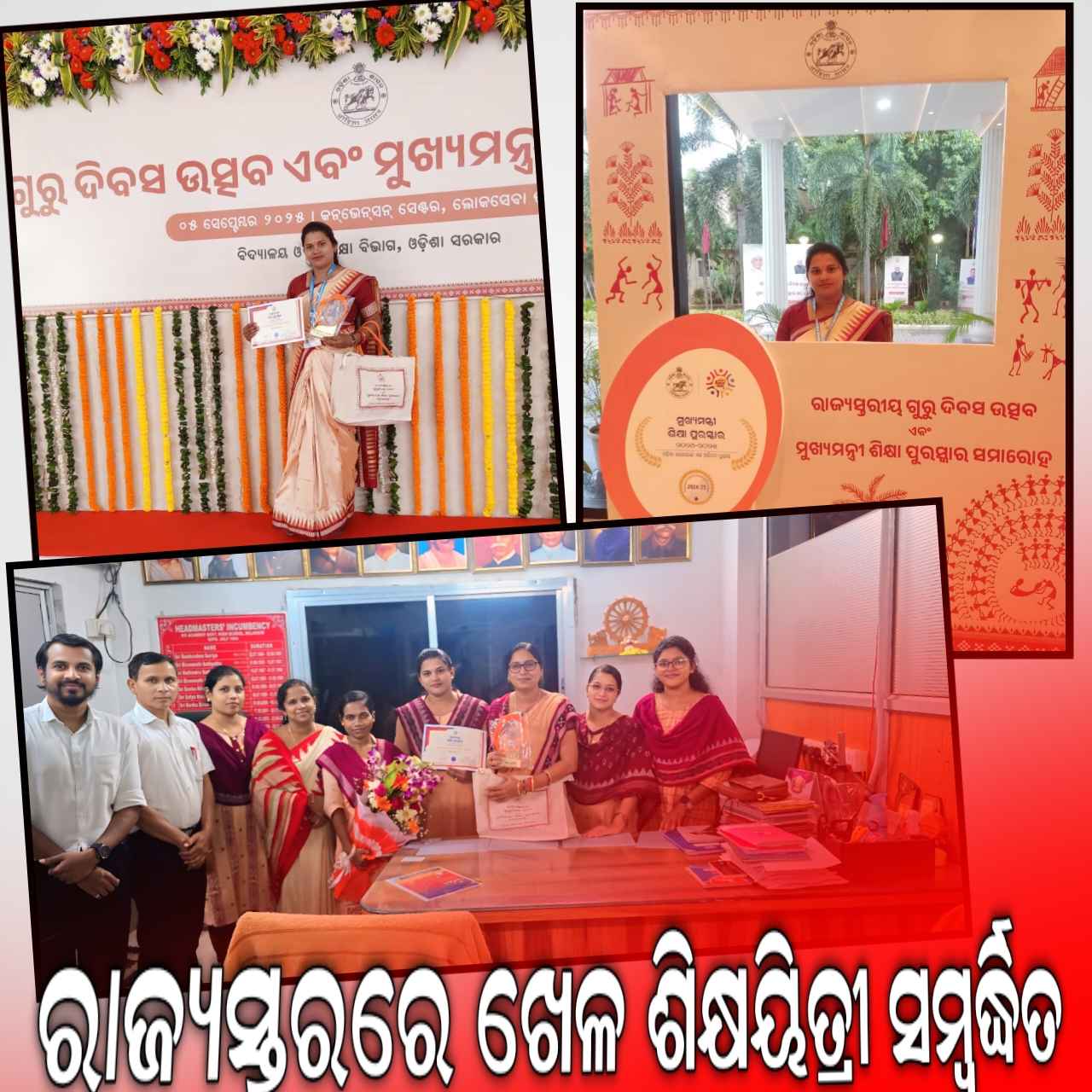 ବଲାଙ୍ଗୀର: ଗତକାଲି ରାଜ୍ୟସ୍ତରୀୟ ଗୁରୁ ଦିବସ ପାଳନ ଓ ମୁଖ୍ୟମନ୍ତ୍ରୀ ଶିକ୍ଷା ପୁରସ୍କାର ପ୍ରଦାନ କରାଯାଇଛି l ଭୁବନେଶ୍ବର ଲୋକ ସେବା ଭବନ ସମ୍ମିଳନୀ କକ୍ଷ ଠାରେ ଅନୁଷ୍ଠିତ ଏକ ବର୍ଣ୍ଣାଢ୍ୟ ଉତ୍ସବରେ ରାଜ୍ୟର ବିଭିନ୍ନ ଜିଲ୍ଲାର କୃତୀ ଶିକ୍ଷକ ଶିକ୍ଷୟିତ୍ରୀ ମାନଙ୍କୁ ଶିକ୍ଷା ପୁରସ୍କାର ପ୍ରଦାନ କରାଯାଇଛି l ଏହି କ୍ରମରେ ବଲାଙ୍ଗୀର ପତିତପାବନ ଏକାଡେମୀର ଖେଳ ଶିକ୍ଷୟିତ୍ରୀ ଭାବରେ କାର୍ଯ୍ୟରତ ସସ୍ମିତାରାଣୀ ମିଶ୍ରଙ୍କୁ ଖେଳକୁଦ ଆୟୋଜନ ଓ ପ୍ରଶିକ୍ଷଣ କ୍ଷେତ୍ରରେ ଉତ୍ତମ ପ୍ରଦର୍ଶନ ପାଇଁ ଶ୍ରେଷ୍ଠ ଖେଳ ଶିକ୍ଷୟିତ୍ରୀ ଭାବରେ ପୁରସ୍କୃତ କରାଯାଇଛି l ଏହି ସମାରୋହରେ ମୁଖ୍ୟ ଅତିଥି ଭାବେ ମୁଖ୍ୟମନ୍ତ୍ରୀ ମୋହନ ଚରଣ ମାଝୀ ଓ