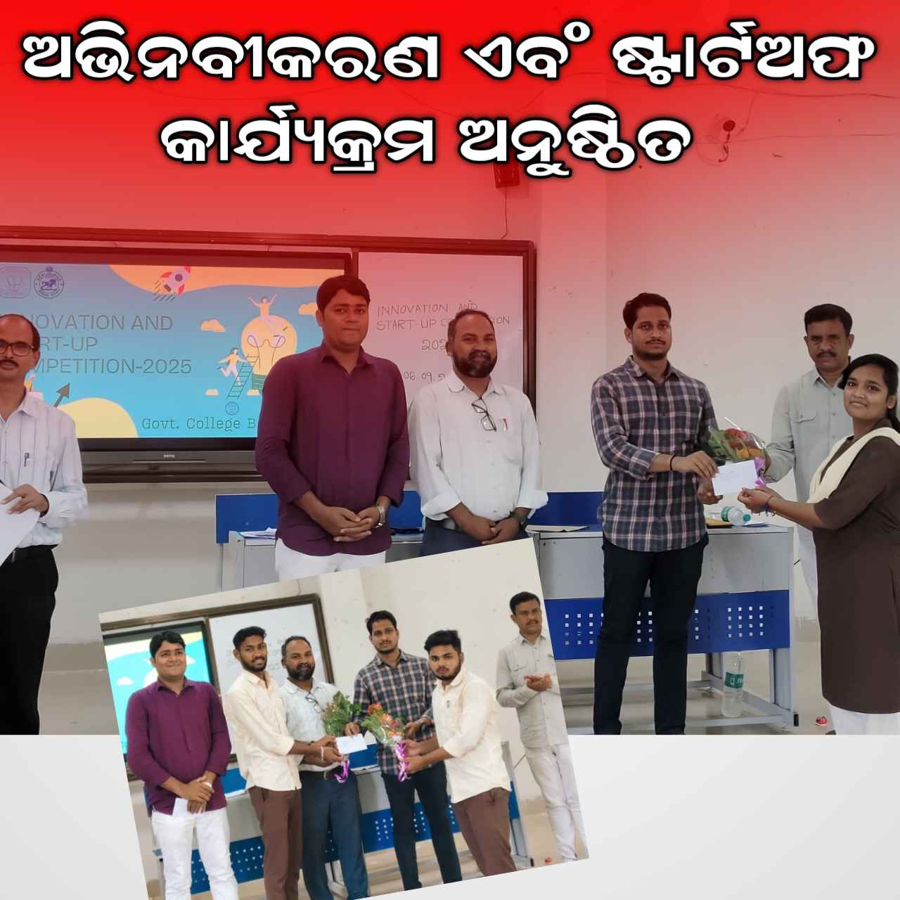 ବଲାଙ୍ଗିର(ପ୍ରେରଣା ଖବର): ସ୍ଥାନୀୟ ସରକାରୀ ମହାବିଦ୍ୟାଳୟ ବଲାଙ୍ଗିରରେ ଓଡ଼ିଶା ସରକାରଙ୍କ ଉଚ୍ଚଶିକ୍ଷା ବିଭାଗର ନିର୍ଦ୍ଦେଶକ୍ରମେ ଅଭିନବୀକରଣ ଏବଂ ଷ୍ଟାର୍ଟଅଫ ପ୍ରତିଯୋଗିତା ଅନୁଷ୍ଠିତ ହୋଇଯାଇଛି। ଏଥିରେ କଲେଜର ଅଧ୍ୟକ୍ଷ ଡକ୍ଟର କୌତୁକ ପନ୍ଦର ସଭାପତିତ୍ବ କରିବା ସହିତ ସରକାରଙ୍କ ଏଭଳି ମହତ କାର୍ଯ୍ୟକ୍ରମର ଅଭିଲକ୍ଷ୍ୟ ସଂପର୍କରେ ଅବଗତ କରାଇଥିଲେ। ମୁଖ୍ୟଅତିଥି ଭାବରେ ପୁଇଁନ୍ତଳା ବ୍ଳକ ଉନ୍ନୟନ ଅଧିକାରୀ ଅମରେନ୍ଦ୍ର ସ୍ବାଇଁ ଯୋଗଦେଇ ଯୁବ ଶିଳ୍ପଉଦ୍ୟୋଗୀ ସ୍ଥାନୀୟ ସମସ୍ୟାକୁ କିଭଳି ସମାଧାନ କରିବା ସହିତ ନୂତନ ପଥ ନିର୍ମାଣ କରିପାରିବେ ସେ ସଂପର୍କରେ ଆଲୋଚନା କରିଥିଲେ। ସମ୍ମାନୀତ ଅତିଥି ଭାବରେ ଉଦ୍ୟୋଗୀ ତଥା ସଂଗଠକ ରାଜେଶ ଝାଙ୍କର ଯୋଗଦେଇ କୂଟୀର ଶିଳ୍ପ ମାଧ୍ୟମରେ ମହିଳାମାନେ କିପରି ସ୍ବାବଲମ୍ବୀ ହୋଇପାରିବେ ସେ ବିଷୟରେ ଗଭୀର ଭାବରେ ଆଲୋଚନା କରିଥିଲେ। ଏହି ପରିପ୍ରେକ୍ଷୀରେ ଆୟୋଜିତ ପ୍ରତିଯୋଗିତାରେ ମହାବିଦ୍ୟାଳୟର ଛାତ୍ରଛାତ୍ରୀ ନିଜର ଅଭିନବ ଚିନ୍ତାଧାରା ଏବଂ ଉଦ୍ୟୋଗୀ ଜ୍ଞାନ କୌଶଳକୁ ପ୍ରକଳ୍ପ ମାଧ୍ୟମରେ ଉପସ୍ଥାପନ କରିଥିଲେ ଏବଂ ଶ୍ରେଷ୍ଠ ତିନିଜଣ କୃତି ଛାତ୍ରଛାତ୍ରୀଙ୍କୁ ପୁରସ୍କୃତ କରାଯାଇଥିଲା। ଏହି କାର୍ଯ୍ୟକ୍ରମଟିକୁ ସହକାରୀ ପ୍ରଫେସର ଡକ୍ଟର ଶ୍ରୀକାନ୍ତ କୁମାର ବାରିକ ସଂଚାଳନ କରିଥିବା ବେଳେ ବିଚାରକ ଭାବରେ ଡକ୍ଟର ବିଜୟ କୁମାର ବେହେରା, ଡକ୍ଟର ମେଘନାଦ ସାହୁ, ଅମୃତା ମହାପାତ୍ର ଏବଂ ରାଜେଶ ଝାଙ୍କର ଉପସ୍ଥିତ ରହି ପ୍ରକଳ୍ପଗୁଡ଼ିକର ମୂଲ୍ୟାଙ୍କନ କରିଥିଲେ। ପରିଶେଷରେ ଆନୁଷ୍ଠାନିକ ଭାବେ ଅଧ୍ୟାପକ ହୃଷୀକେଶ ଦାସ ଧନ୍ୟବାଦ ଅର୍ପଣ କରିଥିଲେ। ଅଧ୍ୟାପକ ଚନ୍ଦନ ପୁହାଣ, ଆଶୀର୍ବାଦ ସାହୁ ଏବଂ ସୁମନ୍ତ ରଣା କାର୍ଯ୍ୟକ୍ରମର ସଫଳ ପରିଚାଳନା ପାଇଁ ସହଯୋଗ କରିଥିଲେ। ଏଥିରେ ମହାବିଦ୍ୟାଳୟର ସମସ୍ତ ଅଧ୍ୟାପକ ଅଧ୍ୟାପିକା ଏବଂ ଛାତ୍ରଛାତ୍ରୀ ଉପସ୍ଥିତ ଥିଲେ।