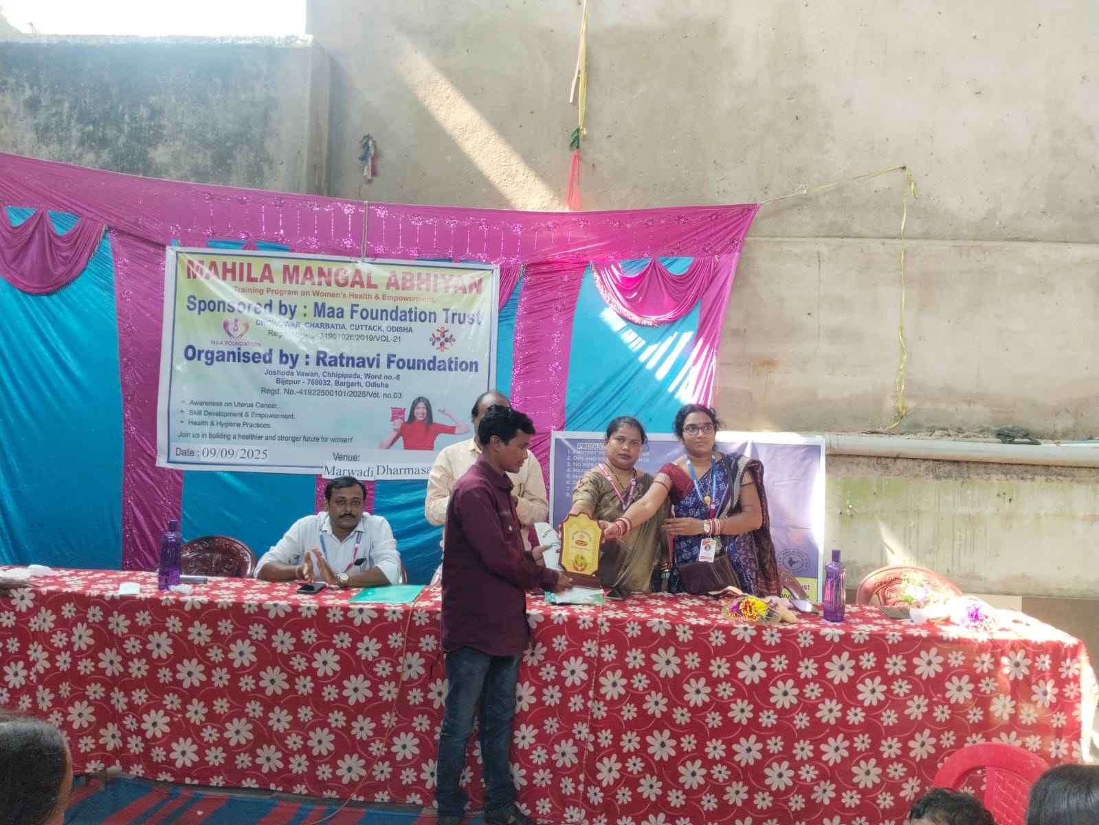 ବରଗଡ଼ ଜିଲ୍ଲା ଅନ୍ତର୍ଗତ ବରପାଲି ସ୍ଥିତ ମାରୱାଡି ଧର୍ମଶାଳା ଠାରେ ମାଁ ଫାଉଣ୍ଡେସନ ଚୌଦ୍ଵାର ଓ ରତ୍ନାଭି ଫାଉଣ୍ଡେସନ ବିଜେପୁର ର ମିଳିତ ଆନୁକୂଲ୍ୟରେ ମହିଳା ମଙ୍ଗଳ ଅଭିଯାନ ପରିକଳ୍ପନା ବିଷୟ କୁ ନେଇ ଏକ ପ୍ରଶିକ୍ଷଣ ଶିବିର ଅନୁଷ୍ଠିତ ହୋଇଥିଲା। ଉକ୍ତ କାର୍ଯ୍ୟକ୍ରମରେ ମା ଫାଉଣ୍ଡେସନ ର କାର୍ଯ୍ୟନିର୍ବାହୀ ନିର୍ଦ୍ଦେଶକ ଅମ୍ବିକା କୁମାର ଲେଙ୍କା, କୌଶଲ୍ୟା ସାହୁ ପ୍ରଶିକ୍ଷଣ ପ୍ରଦାନ କରିଥିଲେ। ଅନୁଷ୍ଠିତ କାର୍ଯ୍ୟକ୍ରମରେ ରତ୍ନାଭି ଫାଉଣ୍ଡେସନ ର ଚେୟାରମ୍ଯାନ ରତ୍ନମାଲା ଗୁରୁ ,ସମ୍ପାଦକ ଭଗବାନ ଦାଶ, ଏମ୍.ଡି କମ୍ ସିଇଓ ଶୁଭେନ୍ଦୁ ଶେଖର ଗୁରୁ, କୋଷାଧ୍ୟକ୍ଷ ରବିନାରାୟଣ ଗୁରୁ ଉପସ୍ଥିତ ଥିଲେ। ପ୍ରଶିକ୍ଷଣ ଶିବିର କୁ ରତ୍ନାଭି ଫାଉଣ୍ଡେସନ ର ପ୍ରକଳ୍ପ ମୁଖ୍ୟ ରୁଦ୍ରପ୍ରସାଦ ଗୁରୁ ପରିଚାଳନା କରିଥିଲେ । ପ୍ରଶିକ୍ଷଣ ଶିବିର ରେ କେବଳ ମହିଳା ମାନଙ୍କୁ ହେଉ ଥିବା ଗର୍ଭାଶୟ କ୍ଯାନ୍ସର କାରଣ ଓ ନିରାକରଣ ବିଷୟ ରେ ସମ୍ପୂର୍ଣ୍ଣ ଆଲୋଚନା କରିଥିବାବେଳେ ମହିଳା ମଙ୍ଗଳ ଅଭିଯାନ ପରିକଳ୍ପନା ର ସମ୍ପୂର୍ଣ୍ଣ ଦିଗପ୍ରତି ସଚେତନ କରାଇ ଥିଲେ । ଉକ୍ତ ଶିବିରରେ ବରଗଡ଼, ବଲାଙ୍ଗୀର, କଳାହାଣ୍ଡି, ସୁବର୍ଣ୍ଣପୁର, ଝାରସୁଗୁଡ଼ା ଆଦି ଜିଲ୍ଳାରେ ନିଯୁକ୍ତି ପାଇଥିବା ଫାଉଣ୍ଡେସନ ର ସମସ୍ତ ଜିଲ୍ଲା ସଂଯୋଜକ, ବ୍ଲକ ସଂଯୋଜକ, ପଞ୍ଚାୟତ ସଂଯୋଜକ ମାନେ ଅଂଶଗ୍ରହଣ କରିଥିଲେ। ।ରତ୍ନାଭି ଫାଉଣ୍ଡେସନ ପାଇଁ ନିଷ୍ଠା ର ସହ କାର୍ଯ୍ୟ କରିଥିବା ଝାରସୁଗୁଡ଼ା ର ସଂଯୋଜକ ହେମନ୍ତ ପୋଖରା ଓ ସଇଁତଳା ବ୍ଳକ ସଂଯୋଜକ ପ୍ରତାପ ରଣା ଙ୍କୁ ମାନପତ୍ର ଦେଇ ସମ୍ବର୍ଦ୍ଧିତ କରାଯାଇଥିଲା । ପରି ଶେଷ ରେ କଳାହାଣ୍ଡି ଜିଲ୍ଲା ସଂଯୋଜକ ଯୁଧିଷ୍ଠିର ଯୋଶୀ ସମସ୍ତଙ୍କୁ ଧନ୍ୟବାଦ ଅର୍ପଣ କରିଥିଲେ। ।