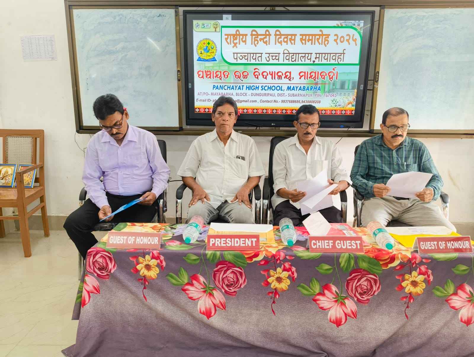 ଡୁଙ୍ଗୁରିପାଲି, ତା ୧୬/୯(ପ୍ରେରଣା ଖବର) : ସୁବର୍ଣ୍ଣପୁର ଜିଲ୍ଲା ଡୁଙ୍ଗୁରିପାଲି ବ୍ଲକ୍ ଅନ୍ତର୍ଗତ ପଞ୍ଚାୟତ ଉଚ୍ଚ ବିଦ୍ୟାଳୟ ମାୟାବର୍ହ୍।ଠାରେ ପ୍ରଧାନଶିକ୍ଷକ ଡ. ରବିଚନ୍ଦ୍ର ପଶାୟତଙ୍କ ସଭାପତିତ୍ବରେ ରାଷ୍ଟ୍ରୀୟ ହିନ୍ଦୀ ଦିବସ ପାଳିତ ହୋଇଯାଇଛି । ବିଜ୍ଞାନ ଶିକ୍ଷକ ତଥା ବରିଷ୍ଠ ଶିକ୍ଷକ ଦୀନବନ୍ଧୁ ପ୍ରଧାନ ସଭାକୁ ସଂଯୋଜନା କରିଥିଲେ। ସଭାରେ ହିନ୍ଦୀ ଶିକ୍ଷକ ନନ୍ଦିଘୋଷ ବାରିକ ସ୍ବାଗତ ଭାଷଣ ପ୍ରଦାନ କରିବା ସହ ଉଦ୍ଦେଶ୍ୟ ଜ୍ଞାପନ କରିଥିଲେ। ଆଞ୍ଚଳିକ ଉଚ୍ଚ ବିଦ୍ୟାଳୟ ବାବୁପାଲିର ପୂର୍ବତନ ହିନ୍ଦୀ ଶିକ୍ଷକ ପଙ୍କଜ କୁମାର ମେହେର ମୁଖ୍ୟ ଅତିଥି ଭାବରେ ଯୋଗଦାନ କରି ହିନ୍ଦୀ କେବଳ ଆମ ଭାଷା ନୁହେଁ ଆମ ସଂସ୍କୃତି ବୋଲି ମତ ପ୍ରକାଶ କରିଥିଲେ। ବଦକର୍ଲେ ଉଚ୍ଚ ବିଦ୍ୟାଳୟର ପୂର୍ବତନ ପ୍ରଧାନ ଶିକ୍ଷକ ପ୍ରମୋଦ କୁମାର ପ୍ରଧାନ ସମ୍ମାନିତ ଅତିଥି ଭାବରେ ଯୋଗଦାନ କରି ହିନ୍ଦୀର ଇତିହାସ ବିଷୟ ରେ ତଥ୍ୟ ପ୍ରଦାନ କରିଥିଲେ। ଅନ୍ୟତମ ଅତିଥି ସମ୍ପଦ ଖମାରୀ ହିନ୍ଦୀ କେବଳ ରାଷ୍ଟ୍ରୀୟ ଭାଷା ନୁହେଁ ଏହା ପ୍ରତ୍ୟେକ ଭାରତୀୟଙ୍କ ହୃଦ୍ ସ୍ପନ୍ଦନ ବୋଲି ମତ ବ୍ୟକ୍ତ କରିଥିଲେ। ଶିକ୍ଷକ ମନୋଜ କୁମାର ପୂଜାରୀ, ରାଜୁ ମେହେର, ସ୍ନିଗ୍ଧା ପ୍ରଧାନ , ନିକିତା ଦୀପ, କିରଣ କୁମାର ପଟେଲ ସଭାରେ ଉପସ୍ଥିତ ରହି ଛାତ୍ର ଛାତ୍ରୀ ମାନଙ୍କୁ ଉତ୍ସାହିତ କରିଥିଲେ।