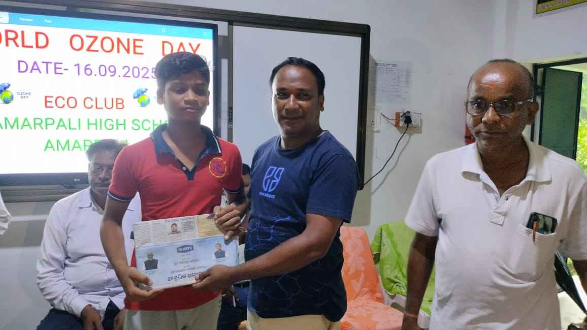 ବୀରମହାରାଜପୁର,(ବିନୋଦ ପାଣ୍ଡେ): ସୁବର୍ଣ୍ଣପୁର ଜିଲ୍ଲା ବୀରମହାରାଜପୁର ବ୍ଲକ ଅନ୍ତର୍ଗତ ଅମରପାଲି ହାଇସ୍କୁଲରେ ମଙ୍ଗଳବାର ଅପରାହ୍ନରେ ବିଶ୍ଵ ଓଜୋନ ଦିବସ ପାଳନ ହୋଇଯାଇଛି। ବିଜ୍ଞାନ ଶିକ୍ଷକ ସମ୍ବିତ ପ୍ରଧାନ ଙ୍କ ପ୍ରତ୍ୟକ୍ଷ ତତ୍ତ୍ଵାବଧାନରେ ଅନୁଷ୍ଠିତ କାର୍ଯ୍ୟକ୍ରମରେ ବହଳପଦର କ୍ଲଷ୍ଟର ର ସିଆରସିସି କମ୍ଭୁଧର ପ୍ରଧାନ , ସ୍କୁଲର ପ୍ରଧାନ ଶିକ୍ଷକ ଉମେଶ ଚନ୍ଦ୍ର ପଣ୍ଡା, ପୀତାମ୍ବର ସାହୁ,ସ୍କୁଲ ପରିଚାଳନା କମିଟିର ସଦସ୍ୟ କାର୍ତ୍ତିକ ପ୍ରଧାନ,ଶିକ୍ଷକ ପଦ୍ମନାଭ ପ୍ରଧାନ,ବ୍ରହ୍ମାନନ୍ଦ ପ୍ରଧାନ ପ୍ରମୁଖ ଅତିଥି ଭାବେ ଯୋଗଦେଇଥିଲେ। ଅତିଥିମାନେ ନିଜ ବକ୍ତବ୍ୟରେ ଓଜୋନ ସ୍ତର ର କାର୍ଯ୍ୟ ,ଏହାର ପ୍ରଭାବ ଏବଂ ଏହି ଦିବସ ପାଳନ ର ତାତ୍ପର୍ଯ୍ୟ ବିଷୟରେ ମତବ୍ୟକ୍ତ କରିବା ସହିତ ପରିବେଶ ରେ ସନ୍ତୁଳନ ରଖିବାପାଇଁ ବୃକ୍ଷ ରୋପଣ ର ଆବଶ୍ୟକତା ରହିଛି ବୋଲି କହିଥିଲେ। ଏହି ଅବସର ରେ ପୂର୍ବରୁ ଅନୁଷ୍ଠିତ ବିଭିନ୍ନ ପ୍ରତିଯୋଗିତାର କୃତି ପ୍ରତିଯୋଗୀଙ୍କୁ ଅତିଥି ମାନଙ୍କ ଦ୍ଵାରା ପୁରସ୍କୃତ କରାଯାଇଥିଲା। ଶେଷରେ ଶିକ୍ଷକ କହ୍ନେଇ ଚରଣ ପ୍ରଧାନ ଧନ୍ୟବାଦ ଅର୍ପଣ କରିଥିଲେ। କାର୍ଯ୍ୟକ୍ରମ ପରିଚାଳନା ରେ ନଟବର ରଣା, ନଟିଆ ଚରଣ ସାହୁ,ଜଗନ୍ନାଥ ସାହୁ ଓ ଗୋବର୍ଦ୍ଧନ ନାଏକ ପ୍ରମୁଖ ସହଯୋଗ କରିଥିଲେ। କାର୍ଯ୍ୟକ୍ରମ ରେ ସ୍କୁଲର ସମସ୍ତ ଛାତ୍ରିଛାତ୍ର ଅଂଶ ଗ୍ରହଣ କରିଥିଲେ।