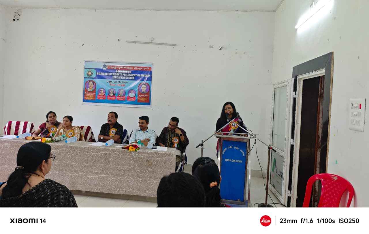 ଡୁଙ୍ଗୁରିପାଲି ମହାବିଦ୍ୟାଳୟରେ ଶିକ୍ଷା ବିଭାଗ ତରଫରୁ ଅଧ୍ୟକ୍ଷ ଶ୍ରୀଯୁକ୍ତ ବିଜୟାନନ୍ଦ ଦାଶଙ୍କ ଅଧ୍ୟକ୍ଷତାରେ ଏକ ସଂପାନ ଅନୁଷ୍ଠିତ ହୋଇଯାଇଛି। ଏହି ସଂପାନରେ ଆଲୋଚକ ଭାବେ ସାରଲା ମହାବିଦ୍ୟାଳୟ(ଜଗତସିଂହପୁର) ର ଅଧ୍ୟାପିକା ସୁଶ୍ରୀ ଅନ୍ନପୂର୍ଣ୍ଣା ପଣ୍ଡା ଏବଂ ଆଞ୍ଚଳିକ ଶିକ୍ଷାକେନ୍ଦ୍ର ଭୁବନେଶ୍ଵରର ଅଧ୍ୟାପକ ଆକାଶ ମେହେର ଯୋଗଦାନ କରି ବେଦାନ୍ତ ଦର୍ଶନ ଶାସ୍ତ୍ର ଉପରେ ଆଲୋଚନା କରିଥିଲେ । ପ୍ରଥମେ ମାଁ