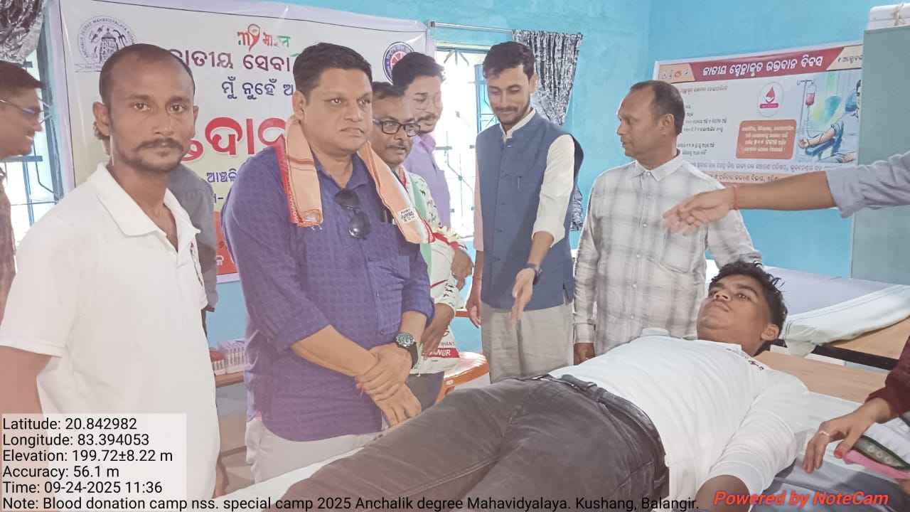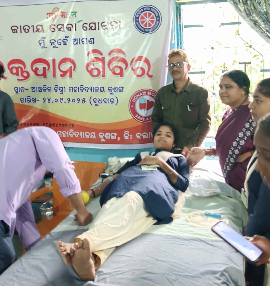 ବଲାଙ୍ଗୀର(ପ୍ରେରଣା ଖବର): ବୁଧବାର ଦିନ ଡିଗ୍ରୀ କଲେଜ କୁଶଙ୍ଗ ତରଫରୁ ଜାତୀୟ ସେବା ଯୋଜନା ଦିବସ ଅବସର ରେ ଅଧ୍ୟକ୍ଷ ବିଜୟ କୁମାର କଲେଟଙ୍କ ସଭାପତିତ୍ବରେ କଲେଜ ପରିସରରେ ରକ୍ତଦାନ ଶିବିର ଅନୁଷ୍ଠିତ ହୋଇଥିଲା l ଏହି କାର୍ଯ୍ୟକ୍ରମରେ ବଲାଙ୍ଗିର ଉପଜିଲ୍ଲାପାଳ ଆଲୋକ ପଟେଲ ମୁଖ୍ୟ ଅତିଥି ଭାବେ ଯୋଗ ଦେଇଥିବା ବେଳେ ଲୋଇସିଂହା ବ୍ଲକ ଚେୟାରମ୍ୟାନ ଯତୀନ୍ଦ୍ର କୁମାର ପଟେଲ ଏବଂ ସ୍ଥାନୀୟ ସରପଞ୍ଚ ଗୀତାଞ୍ଜଳି ପଟେଲ ଅନ୍ୟତମ ଅତିଥି ଭାବେ ଯୋଗ ଦେଇ ସମସ୍ତଙ୍କୁ ଉତ୍ସାହିତ କରିଥିଲେ l ପ୍ରୋଗ୍ରାମଅଫିସର ଡ. ଲକ୍ଷ୍ମଣ ମେହେରଙ୍କ ତତ୍ତ୍ୱାବଧାନରେ ଶିବିରରେ ୩୬ୟୁନିଟ ରକ୍ତ ସଂଗ୍ରହ ହୋଇଥିଲା l ଏଇ ଅବସରରେ ଭୀମଭୋଇ ମେଡିକା ମେଡିକାଲ ମେଡିକାଲ ବଲାଙ୍ଗିର ଏବଂ ଲୋଇସିଂହା ହସପିଟାଲର ସ୍ୱାସ୍ଥ୍ୟ ବିଶେଷଜ୍ଞଙ୍କ ଦ୍ୱାରା ଛାତ୍ରଛାତ୍ରୀମାନଙ୍କ ସ୍ୱାସ୍ଥ୍ୟ ପରୀକ୍ଷା ସହ ହେମୋଗ୍ଲୋବିନ ପରୀକ୍ଷା ମଧ୍ୟ କରାଯାଇଥିଲା l ଶିବିରର ସଫଳ ପରିଚାଳନା ପାଇଁ ମା ଛେଳିଆପାଟ ସେବା ସଙ୍ଗଠନ ଭରସୁଜାର ସକ୍ରିୟ ଭୂମିକା ରହିଥିଲା l ଏଥିରେ କଲେଜର ସମସ୍ତ କର୍ମକର୍ତ୍ତାଙ୍କ ସହିତ ବଲାଙ୍ଗିରର ସ୍ବେଛାସେବୀ ସଂଗଠନ ଏବଂ ଅଞ୍ଚଳର ଅନେକ ସ୍ବେଛାସେବୀ ସ୍ୱତଃସ୍ଫୁର୍ତ୍ତ ଭାବେ ସହଯୋଗ କରିଥିଲେ l ସମସ୍ତଙ୍କ ପାଇଁ ଖାଦ୍ୟପେୟର ବ୍ୟବସ୍ଥା ରହିଥିଲା l