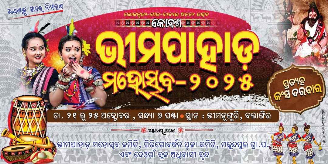 ବଲାଙ୍ଗୀର(ପ୍ରେରଣା ଖବର): ଆସନ୍ତା ଅକ୍ଟୋବର ୨୧ ତାରିଖଠାରୁ ୨୫ ତାରିଖ ପର୍ଯ୍ୟନ୍ତ ୫ଦିନ ଧରି ଦେଓଗାଁବ୍ଲକ ମକୁନ୍ଦପୁର ଗ୍ରାମପଞ୍ଚାୟତ ର ଭୀମଡୁଙ୍ଗୁରୀ ପର୍ଯ୍ୟଟନସ୍ଥଳୀ ଠାରେ ୧୧ତମ ଭୀମପାହାଡ ମହୋତ୍ସବ- ୨୦୨୫ ଅନୁଷ୍ଠିତ ହେବାକୁ ଯାଉଛି । ଭୀମପାହାଡ ମହୋତ୍ସବ କମିଟି, ଗିରୀଗୋବର୍ଦ୍ଧନ ପୂଜାକମିଟି ଓ ଦେଓଗାଁ ଅଞ୍ଚଳବାସୀଙ୍କ ମିଳିତ ଅନୁକୂଲ୍ୟରେ ଅନୁଷ୍ଠିତ ହେଉଥିବା ଏହି ମହୋତ୍ସବରେ ହଜାର ହଜାର ଲୋକଙ୍କ ସମାଗମ ହେବ । ସେଥିପାଇଁ ମହୋତ୍ସବ କମିଟି ପକ୍ଷରୁ ପ୍ରସ୍ତୁତି ସରିଯାଇଛି । ଆଜି ମହୋତ୍ସବର ଲୋଗୋକୁ ଉନ୍ମୋଚନ କରାଯିବା ସହିତ ଏକ ସାମ୍ବାଦିକ ସମ୍ବିଳନୀ କରି ମହୋତ୍ସବ ବିଷୟରେ କମିଟି ସୂଚନାଦେଇଛି । ଭୀମଡୁଙ୍ଗୁôରୀ ପର୍ଯ୍ୟଟନସ୍ଥଳୀର ସଭାକକ୍ଷଠାରେ ମହୋତ୍ସବ