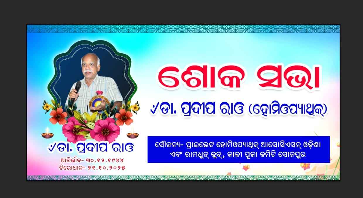 ଖ୍ୟାତନାମା ହୋମିଓପ୍ୟାଥିକ ଚିକିତ୍ସକ ଡାକ୍ତର ପ୍ରଦୀପ ରାଓ (୮୨ ) ଙ୍କ ପରଲୋକ ଘଟିଛି l ତାଙ୍କ ବିୟାଗ ରେ ମହଲରେ ଶୋକର ଛାୟା ଖେଳିଯାଇଛି । ସେ ୧୯୭୧ ରୁ ୧୯୭୭ ମସିହା ପର୍ଯ୍ୟନ୍ତ ସରକାରୀ ହୋମିଓପ୍ୟାଥିକଗ ମେଡ଼ିକାଲ କଲେଜ, ଭୁବନେଶ୍ୱର ଡ଼େମୋଷ୍ଟ୍ରେଟର ଭାବେ କାର୍ଯ୍ୟ କରୁଥିଲେ । ୧୯୭୭ ମସିହାରେ ସେ ଚାକିରି ଛାଡ଼ି ରୋଗୀ ସେବାକୁ ଆଦରି ନେଇଥିଲେ । ସେ ମନୋନିତ ସଭ୍ୟ ଭାବେ C.C.H.ସେଣ୍ଟ୍ରାଲ କାଉନସିଲ ଅଫ ହୋମିଓପ୍ୟାଥିକ୍ ଗଭରମେଣ୍ଟ ଅଫ ଇଣ୍ଡିଆ ୧୯୮୯ ରୁ ୧୯୯୮ ପର୍ଯ୍ୟନ୍ତ ଥିଲେ l ସଭାପତି ପଦବୀରେ . ଷ୍ଟେଟ ବୋର୍ଡ ଅଫ୍ ହୋମିଓପ୍ୟାଥିକ ମେଡ଼ିସିନ ଓଡ଼ିଶା ଭାବେ ମଧ୍ୟ କାର୍ଯ୍ଯ କରିଥିଲେ l .ଆଜିବନ ସଦସ୍ଯ-ଇଣ୍ଡିୟନ ଇନଷ୍ଟିଚ୍ୟୁଟ୍ ଅଫ୍ ଫିଜିକ୍ସ୍ ସିଏନ ଆଣ୍ଡ ଆଡ଼ଭାଇଜର ( I .I .H. P. ODISHA ) ଭାବେ ଦାୟିତ୍ୱ ଥିଲେ l ପରୀକ୍ଷକ ଭାବରେ ବିଭିନ୍ନ ହୋମିଓପ୍ୟାଥିକ ୟୁନଭରସିଟି ଓଡ଼ିଶା ଓ ଭାରତର ଅନ୍ୟାନ୍ୟ ରାଜ୍ୟରେ କାର୍ଯ୍ଯ କରିଥିଲେ l ୨୦୧୯ ମସିହାରେ ପ୍ରତିଭା ହୋମିଓ ପ୍ୟାଥିକ ଆସୋସିଏସନ୍ ଏବଂ ଆଲେନ୍ ହୋମିଓ ଓ ହର୍ବାଲ- ପ୍ରଡ଼କ୍ଟ ଲିମିଟେଡ ତେଲେଙ୍ଗାନା ପକ୍ଷରୁ ଜୀବନବ୍ୟାପି ସାଧନା ସମ୍ମାନ ଲାଭ କରିଥିଲେ. l ତାଙ୍କର ବିୟୋଗରେ ପ୍ରାଇଭେଟ ହୋମିଓ ପ୍ୟାଥିକ ପ୍ରାକ୍ଟିସନର ଆସୋସିଏସନ୍ ଓଡ଼ିଶା ର ଅପୁରଣିୟ କ୍ଷତି ହୋଇଛି l ପ୍ରାଇଭେଟ ହୋମିଓ ପ୍ୟାଥିକ ପ୍ରାକ୍ଟିସନର ଆସୋସିଏସନ୍ ଓଡ଼ିଶା ର ଉପ-ସଭାପତି ଶ୍ରୀଯୁକ୍ତ ଜଗନ୍ନାଥ ଦାଶ ଙ୍କ ସଭାପତିତ୍ବରେ, ରାମଧୁନ କ୍ଳବ ଓ କାଳୀପୂଜା କମିଟିର ସମସ୍ତ ସଦସ୍ୟ ମାନଙ୍କ ମିଳିତ ସହଯୋଗରେ ଶ୍ରୀ ଶ୍ରୀ ରାମଜୀ ମନ୍ଦିର ,ମଝିପଡ଼ା , ସୋନପୁର ଠାରେ ଡାକ୍ତର ପ୍ରଦୀପ ରାଓ ଙ୍କ ଉଦ୍ଧେଶ୍ୟରେ ଶୋକ ସଭା ଅନୁଷ୍ଠିତ ହୋଇଛି l , ଏହି ଶୋକ ସଭାରେ ପି.ଏଚ.ପି.ଏ ସୋନପୁର, ବଉଦ,ବଲାଙ୍ଗିର ସଭ୍ୟ ଜଗଦୀସ ମେହେର, ଟଙ୍କଧର ବାରିକ୍ ,ସୂର୍ଯ୍ୟ ନାରାୟଣ ବାଘ,ଦେବାନନ୍ଦ ବହିଦାର, ଜଗବନ୍ଧୁ ତ୍ରିପାଠୀ , ଅଭିମନ୍ୟୁ ରଣା ,ନରେନ୍ଦ୍ରମିଶ୍ର,ଶଙ୍କର ମିଶ୍ର , ଧୃବଚ଼ରଣ ସାହୁ, ଦୃଷିକେଶ ଦାଶ, କୁନାରଥ ,ପୁରୁଷୋତ୍ତମ ବେଦବାକ ଯୋଗ ଦେଇ ଥିଲେ l ଶ୍ରୀ କଇଁରୁ ସ୍ୱାଇଁ ପୌର ପରିଷଦ ପ୍ରାକ୍ତନ ଅଧ୍ୟକ୍ଷ, ମନୋରଞ୍ଜନ ତ୍ରୀପାଠୀ, ବରିଷ୍ଠ ସାମ୍ବାଦିକ, ପୀୟୂଷ ପଣ୍ଡା [ ଯୋଜନା ବୋର୍ଡ ସଦସ୍ୟ ] ଶ୍ରୀ ରାଓ ଙ୍କ ଫଟୋ ଚିତ୍ର ରେ ଧୁପ, ଦୀପ ,ପୁସ୍ପମାଲ୍ୟ ଅର୍ପଣ କରି ଶ୍ରଦ୍ଧାଞ୍ଜଳୀ ଜ୍ଞାପନ କରିଥିଲେ | ରାମଧୁନ କ୍ଳବ ଓ କାଳୀପୂଜା କମିଟିର ସଦସ୍ୟ ଲଡ଼ୁ କିଶୋର ମଲ୍ଲିକ, ପୁରନ୍ଦର ଭାଇ, ସୁରଜ, ବୁବୁନ୍, ବିକାଶ,ମଦନ, ଜଗନ ,ଚନ୍ଦନ ଭାଇ, ସମସ୍ତ ସଦସ୍ୟ ଙ୍କ ଉପସ୍ତିତିରେ ଉପ-ସଭାପତି ଶ୍ରୀୟୁକ୍ତ ଜଗନ୍ନାଥ ଦାଶ ଡାକ୍ତର ପ୍ରଦୀପ ରାଓ ଙ୍କ ସୃତି ଚାରଣ କରିଥିଲେ । ଶେଷରେ ସମସ୍ତେ ଦିବଂଗତ ଆତ୍ମାର ସଦଗତି ପାଇଁ ଭଗବତୀ ଙ୍କ ଠାରେ ନିରବ ପ୍ରାର୍ଥନା କରାଯାଇଥିଲେ ।