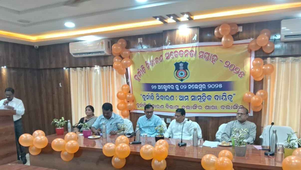 ପୌରପରିଷଦ ତଥା ବିଜ୍ଞାପିତ ଅଞ୍ଚଳ ପରିଷଦ ସ୍ତରରେ କରାଯାଇ ଶ୍ରେଷ୍ଠ ବିବେଚିତ ପ୍ରତିଯୋଗୀ ମାନେ ଜିଲ୍ଲା ସ୍ତରୀୟ ପ୍ରତିଯୋଗିତାରେ ଭାଗ ନେଇଥିଲେ । ଅନୁଷ୍ଠିତ ଜିଲ୍ଲା ସ୍ତରୀୟ ଓଡିଆ ଏବଂ ଇଂରାଜୀ ଭାଷା ରେ ବକ୍ତୃତା ଓ ପ୍ରବନ୍ଧ ଲିଖନ ପ୍ରତିଯୋଗିତାର କୃତୀ ପ୍ରତିଯୋଗୀ ମାନଙ୍କୁ ଆଜି ଅନୁଷ୍ଠିତ ସଚେତନତା ସଭା ରେ ଅତିଥିମାନେ ପୁରସ୍କାର ଓ ମାନପତ୍ର ପ୍ରଦାନ କରିଥିଲେ । ମୁଖ୍ୟବକ୍ତା ରୂପେ ଡ଼. ପ୍ରେମଚାନ୍ଦ ମହାନ୍ତି ଦୁର୍ନୀତି ନିବାରଣ ସଚେତନତା ସପ୍ତାହ ପାଳନ ଉପଲକ୍ଷେ ନିଜ ମନ୍ତବ୍ୟ ରଖିଥିଲେ | ଆରକ୍ଷୀ ନିରୀକ୍ଷକ, ଦୁର୍ନୀତି ନିବାରଣ ଶାଖା,ବଲାଙ୍ଗିର ଟେରେସା ଖେସ ଧନ୍ୟବାଦ ଅର୍ପଣ କରିଥିଲେ ଓ ପ୍ରଧାନ ଶିକ୍ଷକ ବାପୁଜୀ ନୋଡାଲ ଉଚ୍ଚ ବିଦ୍ୟାଳୟ, କନକେଲ ରାମ ଗୋପାଳ ଖମାରି ଶର୍ମା ସଭା ସଂଚାଳନ କରିଥିଲେ । । ସରକାରୀ ଅଧିକାରୀ, ବିଭିନ୍ନ ବିଦ୍ୟାଳୟ ଓ ମହାବିଦ୍ୟାଳୟ ର ଛାତ୍ରଛାତ୍ରୀ ,ଶିକ୍ଷକ ଶିକ୍ଷୟତ୍ରୀ କାର୍ଯ୍ୟକ୍ରମ ରେ ଉପସ୍ଥିତ ଥିଲେ । ଦୁର୍ନୀତି ନିବାରଣ ବିଭାଗ ବଲାଙ୍ଗିର ଶାଖା ର କର୍ମଚାରୀ ଓ ସୂଚନା ଲୋକ ସମ୍ପର୍କ କାର୍ଯ୍ୟାଳୟର ପୁରୁଷୋତ୍ତମ ମୁନା, ସୁରେଶ ଚନ୍ଦ୍ର ପଟେଲ, କେଶବ ବାଗ, ସମୀର ସାହୁ ଓ ତପନ କୁମାର ପଟେଲ ପ୍ରମୁଖ ଉପସ୍ଥିତ ରହି ସହଯୋଗ କରିଥିଲେ ।