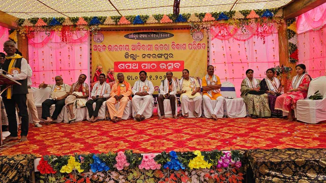 ନବରଙ୍ଗପୁର ଜିଲ୍ଲା ଝରିଗାଁ ବ୍ଳକ ଧାମନାଗୁଡା ଜୟ ମା ଦନ୍ତେଶ୍ଵରୀ ଭୈରବ ମନ୍ଦିର ପଡିଆ ରେ ଅଖିଳ ଭାରତୀୟ ଆଦିବାସୀ ଭତରା ବିକାଶ ପରିଷଦର ନୁତନ ଜିଲ୍ଲା,ବ୍ଳକ କର୍ମକର୍ତ୍ତାମାନଙ୍କ ଶପଥ ପାଠ ଉତ୍ସବ ମହାସମାରୋହରେ ପାଳିତ ହୋଇଯାଇଛି l ଏହି ଅବସରରେ ନବରଙ୍ଗପୁର ଜିଲ୍ଲାର ଦଶ ଗୋଟି ବ୍ଳକରୁ ଆସିଥିବା ଅଖିଳ ଭାରତୀୟ ଆଦିବାସୀ ଭତରା ବିକାଶପରିଷଦ ର ନୁତନ କର୍ମକର୍ତ୍ତା ମାନଙ୍କ ସହ ଦଶ ଗୋଟି ବ୍ଳକରୁ ୧୦ ହଜାର ରୁ ଉର୍ଦ୍ଧ ଆଦିବାସୀ ସମ୍ପ୍ରଦାୟର ଜନସାଧାରଣ ଉପସ୍ଥିତ ରହି କାର୍ଯ୍ୟକ୍ରମ କୁ ସଫଳ କରିଥିଲେ l ଅଖିଳ ଭାରତୀୟ ଭତରା ବିକାଶ ପରିଷଦ ନବରଙ୍ଗପ ଜିଲ୍ଲା ର ନୁତନ କର୍ମକର୍ତ୍ତା ଚୟନ କରାଯାଇ ଏଠାରେ ଶପଥ ପାଠ କରାଇଥିଲେ l ଏହି ଅବସରରେ ନବରଙ୍ଗପୁର ଜିଲ୍ଲା ପୂର୍ବତନ ସଭାପତି ଅର୍ଜୁନ ଭତ୍ରl ଙ୍କ ସଭାପତିତ୍ବରେ ସମ୍ମାନୀତ ଅତିଥି ଡାବୁଗାଁ ପୂର୍ବତନ ବିଧାୟକ ଭୂଜବଳ ମାଝୀ, ନବରଙ୍ଗପୁର ବିଧାୟକ ଗୌରୀ ଶଙ୍କର ମାଝୀ,କେନ୍ଦ୍ରୀୟ ଭତରା ସାମାଜ ସଭାପତି ଜଗଦୀଶ ଭତ୍ରl, ଉପ ସଭାପତି ଗୋପାଳ ପୂଜାରୀ ଓ ସମ୍ପାଦକ ଗୋପି ମାଝୀ, ଛତ୍ତିଶଗଡ଼ ରାଜ୍ଯ ସଭାପତି ଲଲିତ ପୂଜାରୀ, ଦନ୍ତେୱଡ଼ାର ଦନ୍ତେଶ୍ଵରୀ ମା ଙ୍କ ପୁଝାରୀ ମହାଶୟ, ଉମରକୋଟ ବ୍ଲକ ଅଧ୍ଯକ୍ଷା ରାଧା ଭତ୍ରl,ଡାବୁଗାଁ ପଞ୍ଚାୟତ ଅଧକ୍ଷା ବୀଣା ମାଝୀ,ପାପଡାହାଣ୍ଡି ବ୍ଲକ ଜିଲ୍ଲାପାରିଷଦ ସଭ୍ୟା ଡାଃ ଲିପିକା ମାଝୀ ପ୍ରମୁଖ ମଞ୍ଚାସିନ ଥିଲେ। ନବ ନିର୍ବାଚିତ ଜିଲ୍ଲା ସଭାପତି ଜଗନ୍ନାଥ ମାଝୀ ଙ୍କୁ ପୂର୍ବତନ ଜିଲ୍ଲା ସଭାପତି ଉତ୍ତରୀୟ ଓ ପୁଷ୍ପ ଗୁଚ୍ଛ ଦେଇ ସ୍ଵାଗତ କରିଥିଲେ l ଉପ ସଭାପତି ରାମ ଧର ମାଝୀ,ସାଧାରଣ ସମ୍ପାଦକ ପ୍ରତାପ ଚନ୍ଦ୍ର ନାୟକ, ସହ ସମ୍ପାଦକ ମୋତିରାମ ନାୟକ, ସଂଯୋଜକ ଜୟ ରାମ ଭତ୍ରl ,କୋଷାଧ୍ଯକ୍ଷ ଚନ୍ଦ୍ର ପୂଜାରୀ, ସହ ନୂତନ କର୍ମ କର୍ତ୍ତାଙ୍କ ନାମ ଘୋଷଣା ସହ ଶପଥ ନେଇଥିଲେ।ନନ୍ଦାହାଣ୍ଡ ବ୍ଲକ ବ୍ୟତୀତ ୯ ଟି ବ୍ଳକର କର୍ମକର୍ତ୍ତା ଚୟନ ହୋଇ ସାରିଛି l ସମସ୍ତ ନୁତନ କର୍ମକର୍ତ୍ତା ମାନଙ୍କୁ କେନ୍ଦ୍ରୀୟ କମିଟି ସଭାପତି ଓ ନୁତନ ସଭାପତି ମଞ୍ଚ ରେ ଥିବା ସମସ୍ତ ଅତିଥି ମାନଙ୍କ ଦ୍ଵାରା ଶପଥ ପାଠ କରାଇ ପୁଷ୍ପ ଗୁଚ୍ଛ ଓ ଉତ୍ତରୀୟ ଦେଇ ସ୍ୱାଗତ କରାଯାଇଥିଲା l କୋରାପୁଟ ଓ କଳାହାଣ୍ଡି ରୁ ମଧ୍ୟ କର୍ମକର୍ତ୍ତା ଆସିଥିବା ବେଳେ ଘନ ମାଝୀ ଓ ରାଜ ମନ ଭତ୍ରl ମଞ୍ଚ ପରିଚାଳନା କରିଥିଲେ l ତାଙ୍କୁ ଦୈତାରୀ ପୂଜାରୀ ଓ ନରସିଂ ମାଝୀ ସହଯୋଗ କରିଥିଲେ ଳ ଆଜି ୧୦ ହଜାରରୁ ଉର୍ଦ୍ଧ ଜନସାଧାରଣଙ୍କ ସମାଗମ ହୋଇଥିବା ବେଳେ ସମସ୍ତଙ୍କ ପାଇଁ ମଧ୍ୟାହ୍ନ ଭୋଜନର ବ୍ୟବସ୍ଥା କରାଯାଇ ଥିଲା।