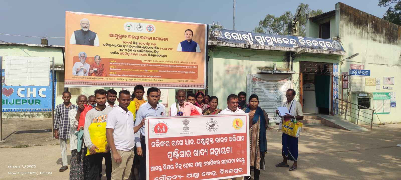 ପ୍ରଧାନମନ୍ତ୍ରୀ “ଯକ୍ଷ୍ମା ମୁକ୍ତ ଭାରତ ଅଭିଯାନ” ଅନ୍ତର୍ଗତ ବିଜେପୁର ଗୋଷ୍ଠୀ ସ୍ୱାସ୍ଥ୍ୟକେନ୍ଦ୍ରରେ ଚିକିତ୍ସାଧୀନ ଥିବା ଯକ୍ଷ୍ମା ରୋଗୀମାନଙ୍କୁ ପୌଷ୍ୟ ଗ୍ରହଣ କରି ସହାୟତା କରିବା ଉଦ୍ୟମ ସତରେ ଏକ ସ୍ୱାଗତ ଯୋଗ୍ୟ ପଦକ୍ଷେପ। ଏଠାରେ କାର୍ଯ୍ୟରତ ସ୍ୱାସ୍ଥ୍ୟ କର୍ମୀ, ଯକ୍ଷ୍ମା ବିଜେତା, ସେଚ୍ଛାସେବୀ, ଆଶା ଦିଦି ସମୁହ ଓ କଲେଜ ଛାତ୍ରୀମାନେ ଏଥିପାଇଁ ପୌଷ୍ୟ ଭାବେ ଆଗକୁ ଆସି ରୋଗୀମାନଙ୍କୁ ପୃଷ୍ଟିକର ଖାଦ୍ୟ ଓ ଆବଶ୍ୟକ ସାମଗ୍ରୀ ଯୋଗାଇ ମାନବିକତାର ଉଦାହରଣ ସୃଷ୍ଟି କରିଛନ୍ତି। ଏହି ଉଦ୍ୟମରେ ସ୍ୱାସ୍ଥ୍ୟ ପରିଦର୍ଶକ ପୁରୁଷ ଅମିତ କୁମାର ସାହୁ, ରଂଜିତ ବେହେରା, ନବ କୁମାର ବାରିକ, ସ୍ୱାସ୍ଥ୍ୟ ପରିଦର୍ଶିକା କବିତାଞ୍ଜଳୀ ଦାଶ, ସଂଯୁକ୍ତା ଷଢ଼ଙ୍ଗୀ (ଅବସର ପ୍ରାପ୍ତ ସ୍ୱାସ୍ଥ୍ୟ ପରିଦର୍ଶିକା), ବହୁମୁଖୀ ସ୍ୱାସ୍ଥ୍ୟ କର୍ମୀ ସ୍ମୃତିମୟୀ ପଣ୍ଡା, ନିୟତି ଗିରି, ହେମଲତା ମିଶ୍ର, କୁନ୍ତଳା ମହାଳିକ, ସୁଜାତା ପଧାନ, ଜୟକୁମାରୀ ବିଶି, ଅଞ୍ଜୁଲତା ଦାଶ, ସୂବଲୟା ସା, ବିଜୟିନୀ ସି, ମନ୍ଦାକିନୀ ସାହୁ, ଗୋଷ୍ଠୀ ସ୍ୱାସ୍ଥ୍ୟ ଅଧିକାରୀ ଶକୁନ୍ତଳା ବରିହା, ଉମାକାନ୍ତ ସାହୁ, ସୁନୀତି କୁମ୍ଭାର, ସ୍ମିତା କବିତା ଲୁଗୁନ, ତପନ କୁମାର ସାହୁ, ତାରାଚାନ୍ଦ ମେହେର, ରକ୍ତ ପରୀକ୍ଷକ ପ୍ରଦୀପ କୁମାର ରାଉତ, ବାସନ୍ତୀ ବାରିକ, ରାଜେଶ ପ୍ରଧାନ, ଅନିତା ବିଶି, ବ୍ଲକ ଡାଟା ମ୍ୟାନେଜର ନାରାୟଣ ପାଢ଼ୀ, ବ୍ଲକ MRA କ୍ଷୀରୋଦ୍ର ସାହୁ, Nirmal Supervisor କୁନା ମେହେର, ଯକ୍ଷ୍ମା ବିଜେତା କୈଳାଶ ଭୁଏ, ପ୍ରମୋଦ ମେହେର, ପ୍ରେମାନନ୍ଦ ଗୁରୁ, ଆଶା ଦିଦି ସାବିତ୍ରୀ ମେହେର, ଭୂମିସୁତା ପଧାନ, କଦମ୍ବାନୀ ଲୁହାଙ୍କ ଯୋଗଦାନ ଉପସ୍ଥିତ ସମସ୍ତ ଯକ୍ଷ୍ମା ରୋଗୀ ମାନଙ୍କୁ ଖାଦ୍ୟ ସମୂହ କିଟ୍ ବ୍ୟାଗ ପ୍ରଦାନ କରିଥିଲେ। କଲେଜ ଛାତ୍ରୀ ପୁନମ ପାଇକ ମଧ୍ୟ ପୌଷ୍ୟ ଭାବେ ଯୋଗଦେଇ ଯୁବପୀଢ଼ା ପାଇଁ ଏକ ପ୍ରେରଣା ସୃଷ୍ଟି କରିଛନ୍ତି।