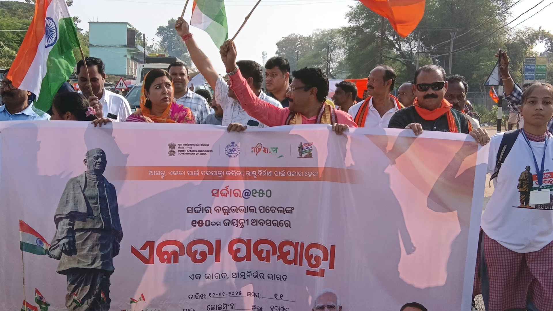 ଲୋଇସିଂହା, (ବିନୋଦ ଦୀପ) ଆଜି ସର୍ଦ୍ଦାର ପଟେଲ ଙ୍କ 150ତମ ଜନ୍ମ ଜୟନ୍ତୀ ଅବସରରେ ବିଜେପି ପକ୍ଷରୁ ଏକତା ପଦଯାତ୍ରା ଲୋଇସିଂହା ମହାବିଦ୍ୟାଳୟ ପରିସରରେ ଅନୁଷ୍ଠିତ ହୋଇଥିଲା l ଏହି ପରିପ୍ରେକ୍ଷୀରେ ଲୋଇସିଂହା ମହାବିଦ୍ୟାଳୟ ରୁ କଲେଜ ଛକ ରୁ ଅଗ୍ରେସନ ଭବନ ପର୍ଯ୍ୟନ୍ତ ଲମ୍ବା ତ୍ରିରଙ୍ଗା ପତାକା ଧରି ଏକ ବିଶାଳ ଏକତା ଯାତ୍ରା ହୋଇଥିଲା l ଏହି କାର୍ଯ୍ୟକ୍ରମ ର ଉଦ୍ଦେଶ୍ୟ ଏହା ଯେ ସର୍ଦ୍ଦାର ପଟେଲ ଙ୍କ ସଂକଳ୍ପ କୁ ପାଳନ କରିବା, ଏକ ରାଷ୍ଟ୍ର ଏକ ସଂକଳ୍ପ l ଏହି ଏକତା ପଦଯାତ୍ରା ରେ ସାମିଲ ଥିଲେ ସ୍ୱାସ୍ଥ୍ୟମନ୍ତ୍ରୀ ଡ଼. ମୁକେଶ ମହାଳିଙ୍ଗ, ବଲାଙ୍ଗୀର ସାଂସଦ ସଂଗୀତା କୁମାରୀ ସିଂଦେଓ ବ୍ଲକ ଅଧ୍ୟକ୍ଷ ଯତୀନ୍ଦ୍ର ପଟେଲ, ଲୋଇସିଂହା କଲେଜ ର ଛାତ୍ରଛାତ୍ରୀ ସମେତ ଲୋଇସିଂହା ନିର୍ବାଚନ ମଣ୍ଡଳୀ ର ଶତାଧିକ ବିଜେପି କର୍ମକର୍ତା ପଦଯାତ୍ରା ରେ ଉପସ୍ଥିତ ଥିଲେ l ସୁରକ୍ଷା ଦାୟିତ୍ୱ ରେ ଥିଲେ ଲୋଇସିଂହା ପୋଲିସ ଦଳ l