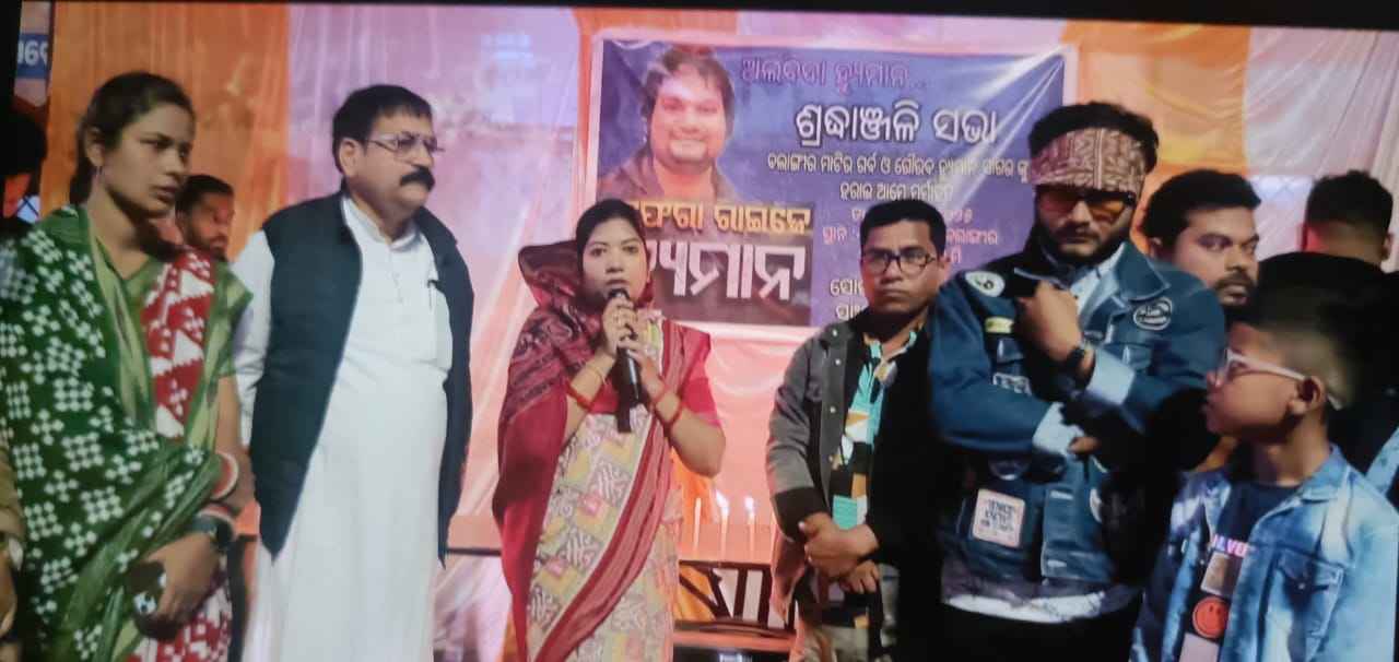 ବଲାଙ୍ଗୀର(ଦେବାଶିଷ ବହିଦାର): ଗତ ସୋମବାର ଦିନ ରାତିରେ ସଂଗୀତ ଜଗତର ବେତାଜ ବାଦଶାହ ବଲାଙ୍ଗୀର ଜିଲ୍ଲାର ଗର୍ବ ଓ ଗୌରବ ହ୍ୟୁମାନ ସାଗରଙ୍କ ଏମ୍ସରେ ଚିକିତ୍ସାଧୀନ ଅବସ୍ଥାରେ ଦେହାନ୍ତ ହୋଇଥିଲା l ଏହି ଖବର ସାରା ରାଜ୍ୟକୁ ସ୍ତବଧ କରିଦେଇଥିବା ବେଳେ ଜନ୍ମମାଟି ବଲାଙ୍ଗୀର ଜିଲ୍ଳା ସଇଁତଳା ବ୍ଳକ ଡେଙ୍ଗରେ ମଧ୍ୟ ଶୋକାକୁଳ ବାତା ବରଣ ଦେଖାଯାଇଥିଲା l ଆଜି ବଲାଙ୍ଗୀରର ସମସ୍ତ ସାମାଜିକ ଏବଂ ସାଂସ୍କୃତିକ ଅନୁଷ୍ଠାନ ତରଫରୁ ସ୍ଥାନୀୟ କଚେରୀ ଛକ ଠାରେ କର୍ମକର୍ତା ଗୋବିନ୍ଦ ଶତପଥୀ, ସୋମନାଥ ମିଶ୍ର ଏବଂ ବିକାଶ ସା ଙ୍କ ସଂଯୋଜନା ରେ ଶ୍ରଦ୍ଧାଞ୍ଜଳି ସଭା ଅନୁଷ୍ଠିତ ହୋଇଥିଲା l ଏହି ଶ୍ରଦ୍ଧାଞ୍ଜଳି
