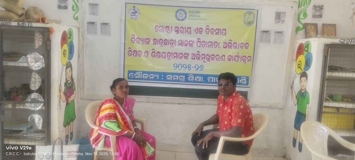 ପାପଡାହାଣ୍ଡି ବ୍ଳକ ଅଧୀନରେ ସେମଳା ଆଞ୍ଚଳିକ ସାଧନ କେନ୍ଦ୍ର ଅନ୍ତର୍ଗତ ସରକାରୀ ପ୍ରାଥମିକ ବିଦ୍ୟାଳୟ, ପକନାଗୁଡାରେ ଦିବ୍ୟାଙ୍ଗ ଛାତ୍ରଛାତ୍ରୀ ଙ୍କ ଅଭିଭାବକ ଓ ଶିକ୍ଷକଙ୍କ ପାଇଁ ଅଭୀମୁଖିକରଣ କାର୍ଯ୍ୟକ୍ରମ ଆୟୋଜିତ ହେଲା। ଏହି କାର୍ଯ୍ୟକ୍ରମର ଉଦ୍ଦେଶ୍ୟ ରେ ସି.ଆର.ସି.ସି. ବାବୁଲାଲ ଅନ୍ତର୍ନିବେଶୀ ଶିକ୍ଷା, ପ୍ରାରମ୍ଭିକ ପରିଚୟ, ଶ୍ରେଣୀ ଗୃହ ପରିଚାଳନା ଓ ଦିବ୍ୟାଙ୍ଗ ଙ୍କ ପାଇଁ ଉପଲବ୍ଧ ସେବା ସମ୍ବନ୍ଧରେ ସଚେତନତା ବୃଦ୍ଧି କରିବା। ଏହି ସମ୍ପର୍କିତ ସମ୍ବଳ ଶିକ୍ଷକ ମାନେ ସମଗ୍ର ଶିକ୍ଷାର ବିଭିନ୍ନ ପ୍ରାବଧାନ, ସହାୟକ ଉପକରଣ, ଥେରାପି ସହାୟତା, ହୋମ୍-ବେସଡ୍ ଏଡୁକେସନ୍, ଆଇ ଇ ପି ପ୍ରସ୍ତୁତି — ବିଷୟରେ ଅଭିଭାବକ ଓ ଶିକ୍ଷକଙ୍କୁ ଜଣାଇଲେ। ଅଭିଭାବକଙ୍କୁ ଘରେ ଶିକ୍ଷା ସମର୍ଥନ ବୃଦ୍ଧି ଓ ବିଦ୍ୟାଳୟ ରେ ନିୟମିତ ଉପସ୍ଥାନ ବିଷୟରେ ପରାମର୍ଶ ଦିଆଗଲା। ଶିକ୍ଷକମାନଙ୍କୁ ଦିବ୍ୟାଙ୍ଗ ଙ୍କ ପାଇଁ ଆବଶ୍ୟକ ହୋଇଥିବା ଶିକ୍ଷା ଓ ପରିଚାଳନା ପ୍ରଣାଳୀ ବିଷୟରେ ପ୍ରଶିକ୍ଷଣ କରାଗଲା। ସିଆରସିସି ବାବୁଲାଲ ସେମଳା ର ଅଙ୍କିତ ପୂଜାରୀ ମାଙ୍କ ସହ ପିଲା ପାଉଥିବା ବାଣୀଶ୍ରୀ ଯୋଜନା, ପିଲା ବିଦ୍ୟାଳୟ କୁ ଆସୁନଥିଲେ ସୁଦ୍ଧା ଘରକୁ ପି ଏମ ପୋଷଣ ସାମଗ୍ରୀ ପ୍ରଧାନ ଶିକ୍ଷକ ଘରକୁ ଦେବା ପାଇଁ ସିଆରସିସି ପ ସହଯୋଗ କୁ ସମସ୍ତେ ପ୍ରଶଂସା କରଥିଲେ ।