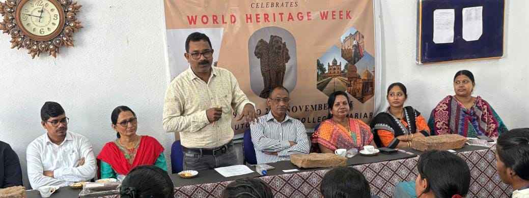 ନୂଆପଡ଼ା ଜିଲ୍ଲା ଖଡ଼ିଆଳ ସ୍ୱୟଂ ଶାସିତ ମହାବିଦ୍ୟାଳୟରେ ବିଶ୍ୱ ଐତିହ୍ୟ ସପ୍ତାହ ଦିବସ ସମାରୋହର ଉଦଯାପିତ। ଅଧ୍ୟକ୍ଷ ଶ୍ରୀ ପ୍ରଶାନ୍ତ କୁମାର ପଣ୍ଡାଙ୍କ ସଭାପତିତ୍ୱରେ ଅନୁଷ୍ଠିତ ସଭା ରେ ଛାତ୍ର କଲ୍ୟାଣ ଅଧିକାରୀ ଡ଼ ଗୀତାଶ୍ରୀ ପ୍ରିୟମ୍ବଦା, ଅଧ୍ୟାପିକା ରାଜଲଷ୍ମୀ ରଥ, ଅଧ୍ୟାପିକା ନିବେଦିତା ଆଚାରୀ, ଅଧ୍ୟାପିକା ସଲମା ମେହେରୁନ ଖାନ, ଅଧ୍ୟାପକ ଚିତ୍ତରଞ୍ଜନ ଜେନା,ଅଧ୍ୟାପକ ଖଗେଶ୍ୱର ଭୋଇ ,ଆଦର୍ଶ ଡିଗ୍ରୀ ମହାବିଦ୍ୟାଳୟ ରୁ ଯୋଗ ଦେଇଥିବା ଅଧ୍ୟାପକ କୁନାଲ ବାଗ,ଅଧ୍ୟାପକ ଟିକେଶ୍ୱର ରଣା ,ଅଧ୍ୟାପକ ଯସ୍ମୀନ ନିଆଲ ପ୍ରମୁଖ ଜିଲ୍ଲା, ରାଜ୍ୟ,ଦେଶ ତଥା ବିଶ୍ୱର ଐତିହାସିକ, ସାଂସ୍କୃତିକ ବିଭବ କୁ ଜାଣିବା, ବୁଝିବା ସୁରକ୍ଷିତ ରଖିବା ସମ୍ପର୍କରେ ସୂଚନା ପ୍ରଦାନ କରିଥିଲେ । ଯୁକ୍ତ ଦୁଇ ଅଧ୍ୟକ୍ଷ ତଥା ପ୍ରତ୍ନତାତ୍ତ୍ୱିକ ଓ ସଂଗ୍ରହାଳୟ ବିଭାଗ ମୁଖ୍ୟ ଡ଼ ରଣବୀର ସିଂହ ଉକ୍ତ ଦିବସ ପାଳନର ବୈଶିଷ୍ଟ୍ୟ ଆଲୋଚନା କରିବା ସହ ଧନ୍ୟବାଦ ଅର୍ପଣ କରିଥିଲେ । ବିଭାଗୀୟ ଛାତ୍ରଛାତ୍ରୀମାନେ ଅନେକ ଉପାଦେୟପୂର୍ଣ୍ଣ ତଥ୍ୟ ସଂଗ୍ରହ ପୂର୍ବକ ପ୍ରଦର୍ଶିତ କରିଥିଲେ ।ଏହି କାର୍ଯ୍ୟକ୍ରମକୁ ମାଆ ମାଣିକେଶ୍ୱରୀ ବିଶ୍ୱବିଦ୍ୟାଳୟ ର କୁଳପତି ଡ଼ ନିବେଦିତା ନାଥ , ଶିକ୍ଷାବିତ ସୁମନ ରଥ, ଶିକ୍ଷାବିତ ଲୋହିତାକ୍ଷ ଯୋଶୀ ମଧ୍ୟ ପରିଦର୍ଶନ କରିଥିଲେ । ସମସ୍ତ ଅଧ୍ୟାପକ, ଅଧ୍ୟାପିକା, ଛାତ୍ରଛାତ୍ରୀ ଯୋଗ ଦେଇଥିଲେ।ନୂଆପଡା ଜିଲ୍ଲା ପରମେଶ୍ୱର ମେହେର