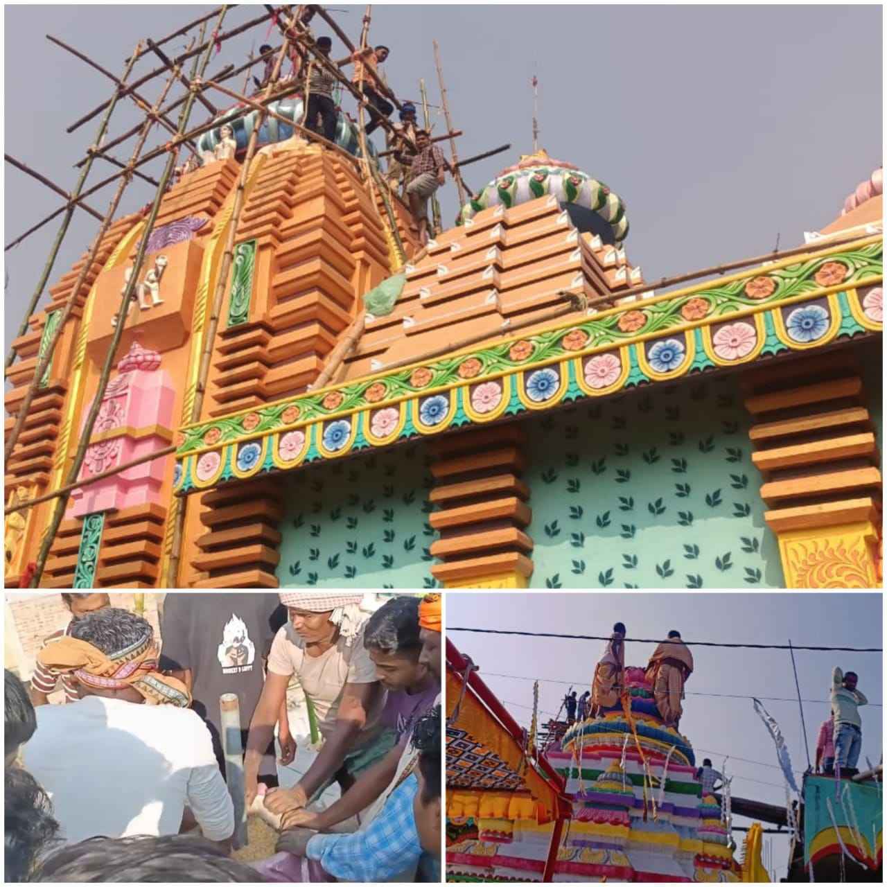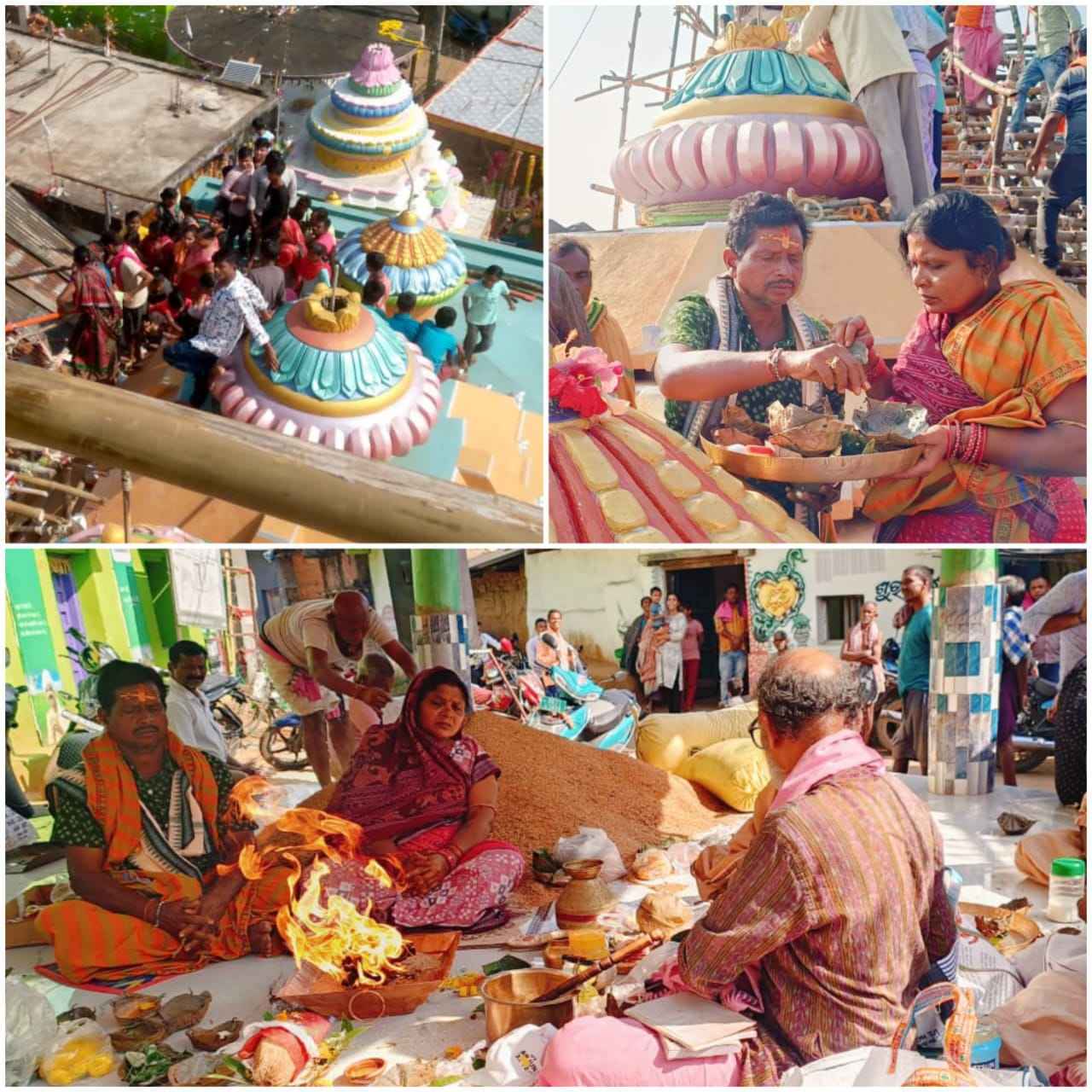 ବିନିକା(ହିମାଂଶୁ ଶେଖର ପୁଟେଲ)"ଜୟ ଗୋ ମାଁ ମାହେଶ୍ୱରୀ ତୁହି ହିଁ ଆମର ସାହା ଭରସା" ଆଦି ଭକ୍ତଙ୍କ ଧ୍ବନିରେ ଫୁଲମୁଠି ଗ୍ରାମ ପ୍ରକମ୍ବିତ ହୋଇଥିଲା ଗ୍ରାମରେ ମାଁ ଙ୍କ ନୂତନ ମନ୍ଦିର ପ୍ରତିଷ୍ଠା ପୂର୍ବରୁ ଆଜି ପବିତ୍ର ଗୁରୁବାର ଦିନରେ ଆଧ୍ୟାତ୍ମିକ ପରିବେଶ ମଧ୍ୟରେ ମନ୍ଦିର ଚୁଡ଼ରେ ରତ୍ନମୁଦ ସ୍ଥାପନ କାର୍ଯ୍ୟକ୍ରମ ବେଶ ଉତ୍ସାହ ଉଦ୍ଦୀପନା ମଧ୍ୟରେ ପାଳିତ ହୋଇଯାଇଛି।ବିନିକା ବ୍ଲକ ଅନ୍ତର୍ଗତ ଫୁଲମୁଠି ଗ୍ରାମରେ କେଉଁ ଆବାହନ କାଳରୁ ମାଁ ମାହେଶ୍ୱରୀ ଦେବୀ ପୂଜା ପାଉଛନ୍ତି ତାଙ୍କର ଭବ୍ୟ ନୂତନ ମନ୍ଦିର ନିର୍ମାଣ କାର୍ଯ୍ୟ ସମ୍ପୂର୍ଣ୍ଣ ହେବାପରେ ଆସନ୍ତା ଫେବୃଆରୀ ମାସରେ ରୀତିନୀତି ଅନୁଯାୟୀ ମନ୍ଦିର ପ୍ରତିଷ୍ଠା ଉତ୍ସବ ପାଳନ ହେବ ।ଏନେଇ ଆଜି ମନ୍ଦିରରେ ରତ୍ନମୁଦ ସ୍ଥାପନ କରାଯାଇଥିଲା ।ଦେବୀଙ୍କ ବନ୍ଦନା ଗାନ ସହିତ ଭଜନ,କୀର୍ତ୍ତନ୍ୟର ତାଳେ ତାଳେ ଗ୍ରାମବାସୀ ଏକ ଶୋଭାଯାତ୍ରାରେ ମାହେଶ୍ୱରୀ ସ୍ନାନ ଘାଟ ନିକଟ ବଦବନ୍ଧକୁ ଯାଇଥିଲେ ।ସେଠାରେ ପୁରୋହିତ ବାସୁଦେବ ହୋତା ମନ୍ତ୍ର ଉଚ୍ଚାରଣ କରି ପୂଜା କାର୍ଯ୍ୟ ସମାପନ କରିବା ପରେ ଖରଖରି ଗଛକୁ ମନ୍ଦିରକୁ ଅଣାଯାଇ ମୂର୍ତ୍ତି ନିର୍ମାଣ କରାଯାଇଥିଲା । ମନ୍ଦିର ଚୁଡ଼ରେ ରତ୍ନମୁଦ ସ୍ଥାପନ ପୂର୍ବରୁ ସ୍ଥାନୀୟ ମଣ୍ଡପ ଠାରେ ପୂଜକ ଶ୍ରୀ ହୋତାଙ୍କ ତତ୍ତ୍ୱାବଧାନରେ ପୂଜା କାର୍ଯ୍ୟ ଆରମ୍ଭ ହୋଇଥିଲା ଏଥିରେ ମନ୍ଦିର ପ୍ରତିଷ୍ଠା କର୍ତ୍ତା ଭାବେ ବନମାଳି ମହାକୁର ଓ ତାଙ୍କ ଧର୍ମପତ୍ନୀ ମାଳତୀ ମହାକୁର ଦାୟିତ୍ଵ ନିର୍ବାହ କରିଥିଲେ।ପରେ ଶ୍ରଦ୍ଧାଳୁ ଭକ୍ତଙ୍କ ହରିବୋଲ ହୁଳହୁଳି ଧ୍ବନିରେ ମନ୍ଦିର ଚୁଡ଼ରେ ରତ୍ନମୁଦ ସ୍ଥାପନ କାର୍ଯ୍ୟକ୍ରମ ଆରମ୍ଭ ହୋଇଥିଲା ।ମାଁ ଙ୍କ ଆଶୀର୍ବାଦ ଏବଂ ସୁଖ ଦୁଃଖରେ ମାଁ ସାହା ଭରସା ହେବାର ଆରାଧନା କରି ଲୋକେ ନିଜ ସ୍ଥିତିକୁ ଅନୁଶୀଳନ କରି ମାଁ ଙ୍କ ପାଇଁ କିଏ ସୁନା,ରୂପା,ତମ୍ବା ତ ଆଉ କିଏ ଟଙ୍କା,ପଇସା,ବିରି,ମୁଗ,ଚାଉଳ,ଧାନ ଅର୍ପଣ କରିଥିଲେ ।ମନ୍ଦିର ଚୁଡ଼ ଉପରକୁ ଭକ୍ତ ଉଠି ନିଜର ଅର୍ପିତ ସାମଗ୍ରୀକୁ ଦାନ କରିଥିଲେ ।ମନ୍ଦିର ଚୁଡ଼ାରେ ଥିବା ୩ଟି କୁମ୍ଭରେ ଦାନ ସାମଗ୍ରୀ ଭର୍ତ୍ତି କରାଯାଇଥିଲା ।କୁମ୍ଭ ଗୁଡିକ ସମ୍ପୂର୍ଣ୍ଣ ଭର୍ତ୍ତି ହେବାପରେ ଉପସ୍ଥିତ ଶ୍ରଦ୍ଧାଳୁ ଭକ୍ତଙ୍କ ଜୟ ଧ୍ବନିରେ ମନ୍ଦିର ପରିସର କମ୍ପି ଉଠିଲା।ଶେଷରେ ସମସ୍ତ ଶ୍ରଦ୍ଧାଳୁ ଭକ୍ତ ମାଁ ଙ୍କ ଆଶୀର୍ବାଦ ନେଇଥିଲେ ।ଏହି ରତ୍ନମୁଦ ସ୍ଥାପନ କାର୍ଯ୍ୟକ୍ରମରେ ମନ୍ଦିର ପ୍ରତିଷ୍ଠା କମିଟିର ସମସ୍ତ ସଦସ୍ୟ ଓ ଗ୍ରାମବାସୀ ସମ୍ପୂର୍ଣ୍ଣ ସହଯୋଗ କରିଥିଲେ।