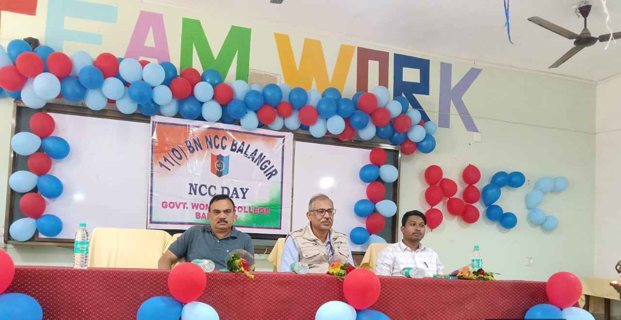 ବଲାଙ୍ଗିର(ଦେବାଶିଷ ବହିଦାର): ସରକାରୀ ମହିଳା ମହାବିଦ୍ୟାଳୟ, ବଲାଙ୍ଗିରର ଜାତୀୟ ସମର ଶିକ୍ଷାର୍ଥୀ ବାହିନୀଙ୍କ ଦ୍ୱାରା ଏନ୍. ସି. ସି ଦିବସ ପାଳିତ ହୋଇଯାଇଛି I ମହାବିଦ୍ୟାଳୟରେ ଆୟୋଜିତ ଏହି ଉତ୍ସବରେ କଲେଜର ଅଧ୍ୟକ୍ଷ ଡ଼ଃ ଅରବିନ୍ଦ କୁମାର ଓଝା, ବିଭୂତି ଭୂଷଣ ସାହୁ, ସିଟିଓ ମାନସ ରଞ୍ଜନ ଭୋଇ ତଥା ୬୦ଜଣ