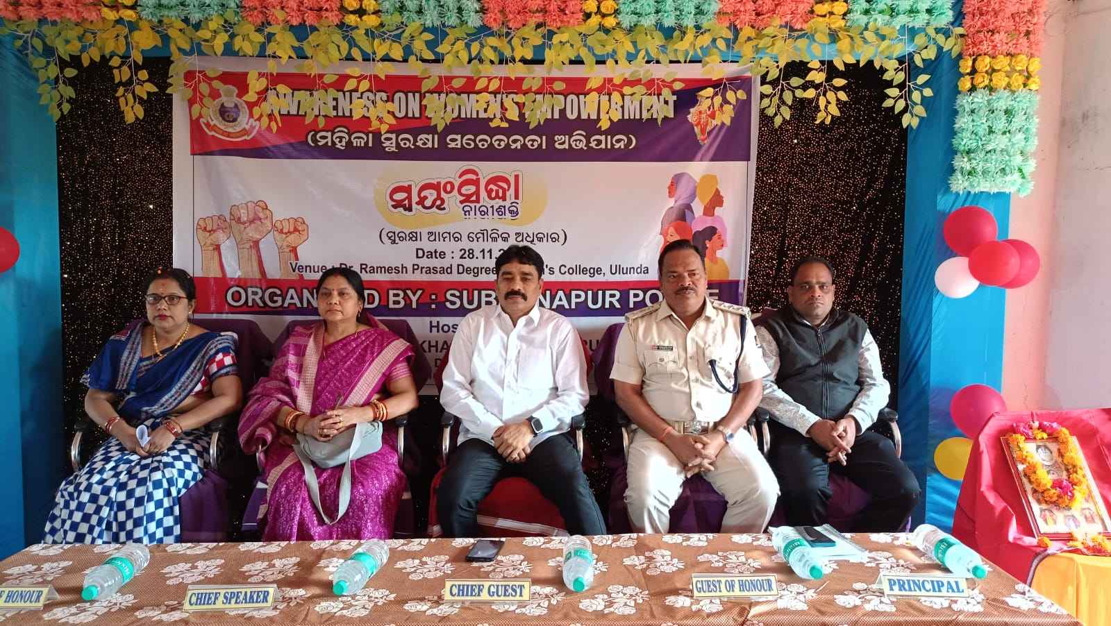 ଉଲୁଣ୍ଡା ଡ଼.ରମେଶ ପ୍ରସାଦ ଡିଗ୍ରୀ ମହିଳା ମହା ବିଦ୍ୟାଳୟ ଠାରେ ମହିଳା ସଶକ୍ତି କରଣ ଓ ମହିଳା ସୁରକ୍ଷା ସଚେତନତା ଅଭିଯାନ କାର୍ଯ୍ୟକ୍ରମ ଅନୁଷ୍ଠିତ ହୋଇଯାଇଛି l ସୁବର୍ଣ୍ଣପୁର ଜିଲ୍ଲା ପୋଲିସର ତତ୍ୱାବଧାନାରେ ଏବଂ ସ୍ଵର୍ଣ ଶିଖା ଚେରିଟେବୁଲ ଟ୍ରଷ୍ଟର ସହଯୋଗ ରେ ଆୟୋଜିତ ଏହି ସଚେତନତା କାର୍ଯ୍ୟକ୍ରମକୁ ଜିଲ୍ଲା ଆରକ୍ଷୀ ଅଧିକ୍ଷକ ନାରାୟଣ ନାଏକ ମୁଖ୍ୟ ଅତିଥି ଭାବେ ଯୋଗ ଦେଇ ନାରୀ ସୁରକ୍ଷିତ ଓ ସଶକ୍ତି କରଣ ହେଲେ ଆମ ଦେଶ ସମୃଦ୍ଧି ଶାଳୀ ହେବ ବୋଲି କହିଥିଲେ l ବକ୍ତା ଭାବରେ ବିନିକା ମହିଳା କଲେଜର ଅଧ୍ୟାପିକା ବୟନ୍ତୀ ସାହୁ ଯୋଗଦେଇ ମହିଳା ମାନଙ୍କ ସୁରକ୍ଷା ଓ ମୌଳିକ ଅଧିକାର ଉପରେ ଆଲୋଚନା କରିଥିଲେ l ସମ୍ମାନିତ ଅତିଥି ଭାବରେ ଏସ ଡ଼ି ପି ଓ ହେମନ୍ତ ରାଓ, କଲେଜ ଅଧ୍ୟକ୍ଷ ରାଜୀବ ଲୋଚନ ବେହେରା, ସମାଜସେବୀ ଶ୍ରୀ ଧର୍ମ ନିରଞ୍ଜନ ପଣ୍ଡା, ମଧୁମିତା ପରମ ଗୁରୁ, କଣ୍ଠ ଶିଳ୍ପୀ ଶାଶ୍ୱତ ତ୍ରିପାଠୀ ଯୋଗଦେଇ ମହିଳା ଙ୍କୁ ସଚେତନ କରିଥିଲେ l ଏହି ଅବସର ରେ ସାଇବର ଅପରାଧ ଉପରେ ଏକ ନାଟକ ପ୍ରଦର୍ଶିତ ହୋଇଥିଲା l ପରେ ଛାତ୍ରୀ ମାନଙ୍କ ଦ୍ୱାରା ସାଂସ୍କୃତିକ କାର୍ଯ୍ୟକ୍ରମ ପରିବେଷଣ ହୋଇଥିଲା l ଓ ବିଭିନ୍ନ ପ୍ରତିଭା ମାନଙ୍କୁ ଅତିଥି ଙ୍କ ଦ୍ଵାରା ସମ୍ବର୍ଦ୍ଧିତ କରା ଯାଇଥିଲା l ସସ୍ମିତା ତ୍ରିପାଠୀ ସଭା ସଂଯୋଜନା କରିଥିବା ବେଳେ କଲେଜର ସମସ୍ତ ଛାତ୍ରୀ ଉପସ୍ଥିତ ଥିଲେ l କଲ୍ୟାଣୀ ପାତ୍ର ଧନ୍ୟବାଦ ଦେଇଥିଲେ l