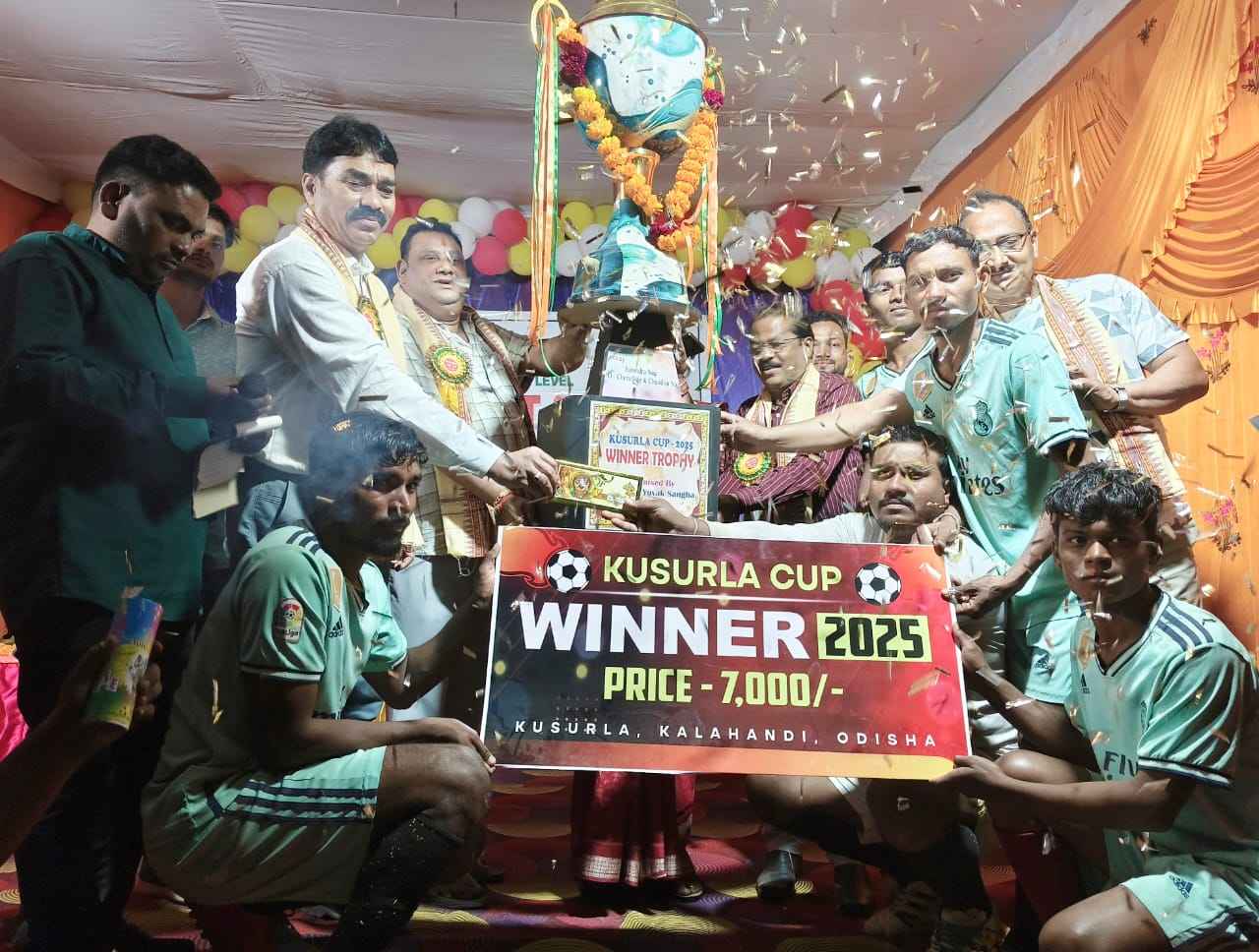 କଳାହାଣ୍ଡି ଜିଲ୍ଲା କର୍ଲାମୁଣ୍ଡା ବ୍ଲକ କୁଶୁର୍ଲା ହରଗୌରୀ ଯୁବକ ସଂଘ ପକ୍ଷରୁ କୁଶୁର୍ଲା କପ ୨୦୨୫ ନକ ଆଉଟ ଫୁଟବଲ ଟୁର୍ଣ୍ଣାମେଣ୍ଟ ରବିବାର ଉଦଯାପିତ ହୋଇଯାଇଛି।ଏହି ଅବସରରେ ରଜାପଡା ଓ ଟକର୍ଲା ମଧ୍ୟ ରେ ଫାଇନାଲ ମ୍ୟାଚ ଅନୁଷ୍ଠିତ ହୋଇଥିଲା।ଏଥିରେ ନିର୍ଦ୍ଧାରିତ ସମୟରେ ଉଭୟ ଦଳ ଗୋଟିଏ ଲେଖାଏ ଗୋଲ ଦେଇଥିଲେ। ପରେ ଟ୍ରାଏବାଇକର ସହଯୋଗ ରେ ରଜାପଡା ଦଳ ୩/୨ ଗୋଲ ରେ ଚମ୍ପିୟାନ ହୋଇଥିଲା। ପୁରସ୍କାର ବିତରଣ ସଭା ରେ ମୁଖ୍ୟ ଅତିଥି ଭାବେ ସୁବର୍ଣ୍ଣପୁର ଜିଲ୍ଲାପାଳ ଡକ୍ଟର ନୃପରାଜ୍ ସାହୁ,ସୁବର୍ଣପୁର ଆରକ୍ଷୀ ଅଧିକ୍ଷକ ନାରାୟଣ ନାଏକ,ନର୍ଲା ବ୍ଲକ ଅଧ୍ୟକ୍ଷ ଦୁର୍ଗା ପ୍ରସାଦ ମହାନ୍ତି, ଜୋରାଡ଼ବରା ପଞ୍ଚାୟତ ସରପଞ୍ଚ ଖିତିସୁତା ସାହୁ,ମେରା ଯୁବ ଭାରତ କଳାହାଣ୍ଡି ର ଜିଲ୍ଲା ସଂଯୋଜକ ପ୍ରସନ୍ନ କୁମାର ମେହେର ,ଜିଲ୍ଲା କ୍ରୀଡା ଅଧିକାରୀ ରମେଶ ଚନ୍ଦ୍ର ପାଢ଼ୀ,ବୈଦ୍ୟନାଥ ବେହେରା, ବଦ୍ରୀ ନାଥ ପାତ୍ର ପ୍ରମୁଖ ଯୋଗ ଦେଇ ଖେଳାଳି ମାନଙ୍କୁ ଉତ୍ସାହିତ କରି ଖେଳ ରେ ହାର ଜିତ ଗୋଟେ ମୁଦ୍ରା ର ଉଭୟ ପାର୍ଶ୍ଵ, ତେଣୁ ଖେଲୁଆଡ ମନୋଭାବ ନେଇ ଆଗକୁ ବଢ଼ିବାକୁ ପରାମର୍ଶ କରି ଥିଲେ l ଓ ବିଭିନ୍ନ ପ୍ରତିଯୋଗିତାରେ କୃତ କାର୍ଯ୍ୟ ହୋଇଥିବା ପ୍ରତିଯୋଗୀ ମାନଙ୍କୁ ପୁରସ୍କାର ପ୍ରଦାନ କରିବା ସହ ଫୁଟବଲ ମ୍ୟାଚ ର ବିଜେତା ଓ ଉପବିଜେତା ଦଳ କୁ ଟ୍ରଫି ସହିତ ନଗଦ ଅର୍ଥ ରାଶୀ ପ୍ରଦାନ କରିଥିଲେ। ପୁରସ୍କାର ବିତରଣ ସଭା କୁ ଯୁଗଳ ନାଗ ଓ ସନ୍ତୋଷ ସୁନା ସଂଯୋଜନା କରିଥିଲେ। ତେବେ ଭାରତ ସରକାର ଙ୍କ ଯୁବ ବ୍ୟାପାର ଓ କ୍ରୀଡା ମନ୍ତ୍ରାଳୟ ଅଧିନସ୍ଥ ମୋ ଭାରତ କଳାହାଣ୍ଡି ଶାଖା ସହାୟତା ଗତ ରବିବାର ଠାରୁ ହରଗୌରୀ ଯୁବକ ସଂଘ ଦ୍ବାରା ବିଭିନ୍ନ ଖେଳ ପ୍ରତିଯୋଗିତା ଆୟୋଜନ କରିଥିଲେ। ହରଗୌରୀ ଯୁବକ ସଂଘ ସଭାପତି ଯୋଗେଶ ଚନ୍ଦ୍ର ଜାନୀ, ସମ୍ପାଦକ ସନ୍ତୋଷ ରଣା, ସ୍ବେଚ୍ଛାସେବୀ ସନତ କୁମାର ସାହୁ ଙ୍କ ସମେତ ଅନୁଷ୍ଠାନର ସମସ୍ତ କର୍ମକର୍ତ୍ତା ଉପସ୍ଥିତ ରହି ସହଯୋଗ କରିଥିଲେ I