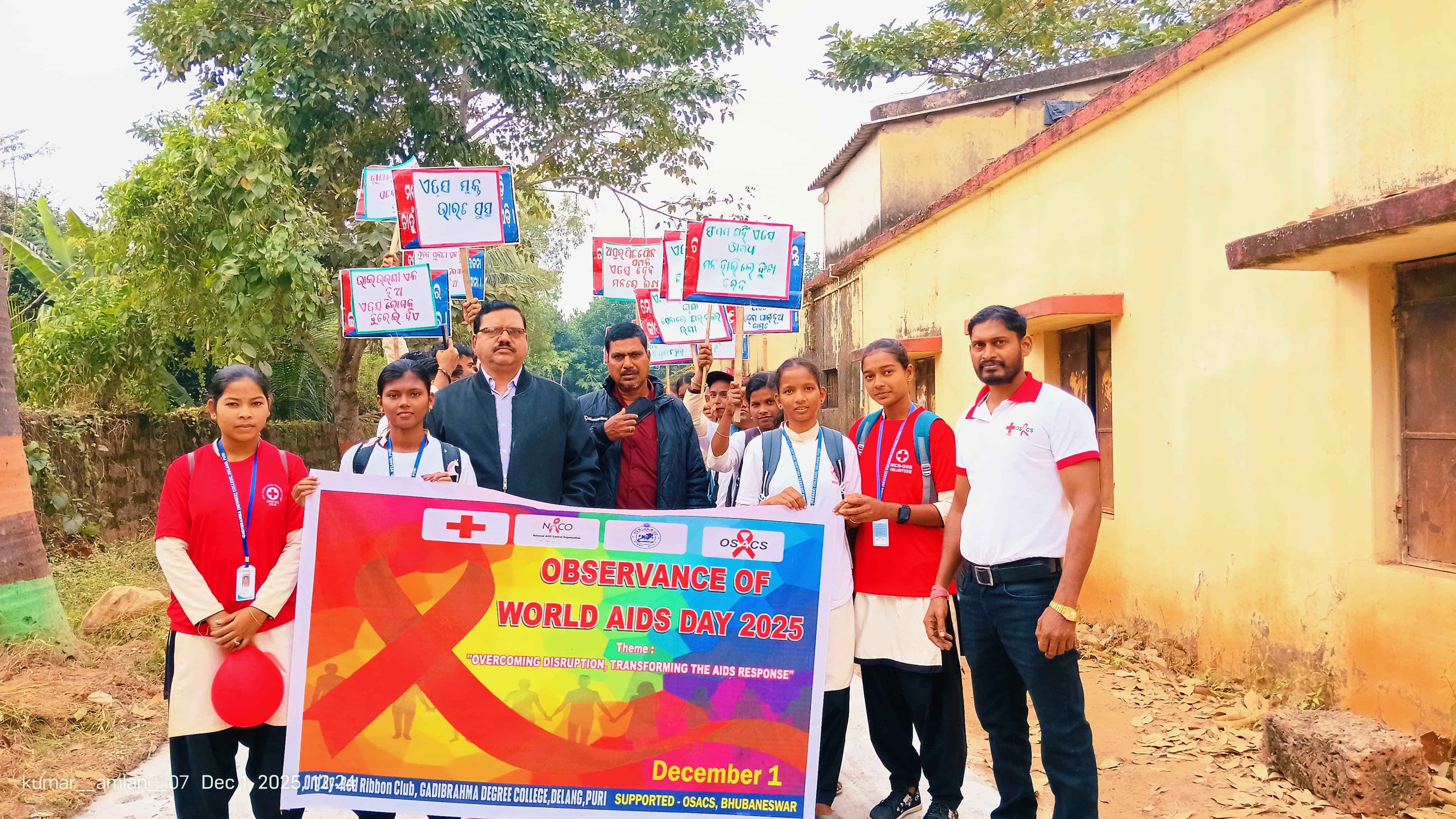 ଡେଲାଙ୍ଗ(ଦିଲ୍ଲୀପ କୁମାର ଧାଉଡ଼ିଆ): ପୁରୀ ଜିଲ୍ଲା ଡେଲାଙ୍ଗ ବ୍ଲକ ଅନ୍ତର୍ଗତ ଗାଦିବ୍ରହ୍ମ ସ୍ନାତକ ମହାବିଦ୍ୟାଳୟ ଐତୀହ କକ୍ଷ ରେ ଓଡିଶା ରାଜ୍ୟ ଏଡ୍ସ ନିୟନ୍ତ୍ରଣ ସମାଜ,ମହାବିଦ୍ୟାଳୟ ରେଡ୍କ୍ରସ ୟୂନିଟ୍ ଏବଂ ରେଡ୍ ରିବନ କ୍ଲବର ମିଳିତ ଆନୁକୁଲ୍ୟରେ ବିଶ୍ୱ ଏଡ୍ସ ଦିବସ ସୋମବାର ପାଳିତ ହୋଇଯାଇଛି। ଇତ୍ଯବସରରେ ଏଡ୍ସ ସଚେତନତା ଆଲୋଚନା ଚକ୍ର ମହାବିଦ୍ୟାଳୟର ଅଧ୍ୟକ୍ଷ ଡଃ ସରୋଜ କୁମାର ପଣ୍ଡାଙ୍କ ଅଧ୍ୟକ୍ଷତା ରେ ଅନୁଷ୍ଠିତ ହୋଇଯାଇଛି ଉକ୍ତ
