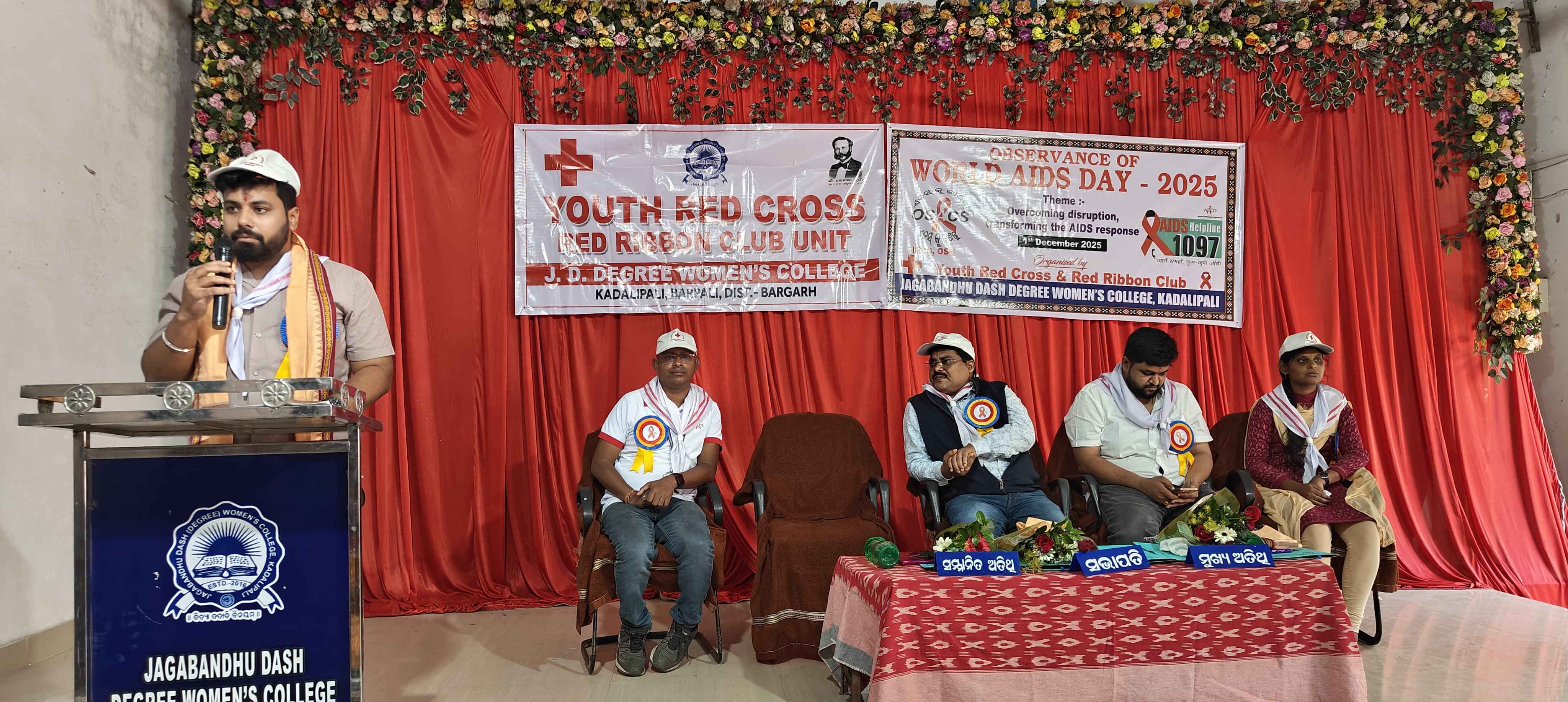 ଜଗବନ୍ଧୁ ଦାଶ ସ୍ନାତକ ମହିଳା ମହାବିଦ୍ୟାଳୟରେ ବିଶ୍ଵ ଏଡସ ଦିବସ ମହାବିଦ୍ୟାଳୟର ସହକାରୀ ଅଧ୍ୟକ୍ଷ ଓଡ଼ିଆ ବିଭାଗର ମୁଖ୍ୟ ଯୁବ ରେଡକ୍ରସ କାଉନସିଲର ଯତୀନ୍ଦ୍ର କୁମାର ସାହୁଙ୍କ ପରିଚାଳନା ସଭାରେ ମୁଖ୍ୟ ଅତିଥି ଭାବେ ଡ.ଚିନ୍ମୟ ଯାଦବ ସମ୍ମାନିତ ଅତିଥି ମହାବିଦ୍ୟାଳୟର ପ୍ରତିଷ୍ଠାତା ଅନ୍ତର୍ଯ୍ୟାମୀ ପଣ୍ଡା ,ସମ୍ମାନିତ ଅତିଥି ଡ. ବିଶ୍ୱଜିତ୍ ପାଢ଼ି ଯୋଗ ଦେଇ HIV Aidsର ଲକ୍ଷଣ ତତ୍ ସମ୍ପର୍କିତ ଅନେକ କିଛି ନୂତନ ତଥ୍ୟ ସ୍ବେଚ୍ଛାସେବୀ ମାନଙ୍କୁ ପ୍ରଦାନ କରି ଛାତ୍ରୀ ମାନଙ୍କ ସହ ଦୀର୍ଘ ସମୟଧରି ଆଲୋଚନା କରିଥିଲେ।। ପ୍ରଥମରୁ ହିନ୍ଦୀ ବିଭାଗର ମୁଖ୍ୟ ଜ୍ୟୋତି ସାହୁ ଅତିଥି ସ୍ବାଗତ କରିଥିବା ବେଲେ ଇତିହାସ ବିଭାଗର ଅଧ୍ୟାପିକା ତଥା ରେଡକ୍ରସ୍ ସହଯୋଗି କାଉନସିଲର ଯାଜ୍ଞସେନୀ ପଟେଲ ଧନ୍ୟବାଦ ଅର୍ପଣ କରିଥିଲେ।ଅଧ୍ୟାପକ ଶଶାଙ୍କ ଶେଖର ପଧାନ ପ୍ରବନ୍ଧ ଲିଖନ,ବକୃତା,ରଙ୍ଗୋଳୀ ପ୍ରଭୃତି ପ୍ରତିଯୋଗିତାରେ କୃତି ଲାଭ କରିଥିବା ଛାତ୍ରୀ ମାନଙ୍କୁ ପୁରସ୍କାର ପ୍ରଦାନରେ ସହଯୋଗ କରିଥିଲେ।ପରେ ପରେ ସ୍ଵେଚ୍ଛାସେବୀ ମାନେ ମୁଖ୍ୟ ରାସ୍ତାକୁ ଆସି ଲୋକଙ୍କୁ ସଚେତନ କରାଇ ଲୋକଙ୍କୁ ପୁସ୍ତିକା ବଣ୍ଟନ କରିବା ସହ ଲୋକ ମାନଙ୍କ ସହ ଆଲୋଚନା କରିଥିଲେ।ଏ ଅବସରରେ ମହାବିଦ୍ୟାଳୟର ଅଧ୍ୟାପିକା ପିଙ୍କି ବାରିକ,ମନିଷା ଭୋଇ,ପୁନମ ସାହୁ, ସସ୍ମିତା ମେହେର,ପରିଣୀତା ପ୍ରଧାନ,ଶୋଭାବତୀ ଥପା,ସହକର୍ମୀ ସାର୍ଥକ ପାଣିଗ୍ରାହୀ, ବିରେନ୍ଦ୍ର ଖଟୁଆ,ତ୍ରିପୁରା ବେହେରା ସାମିଲ ହୋଇଥିଲେ।