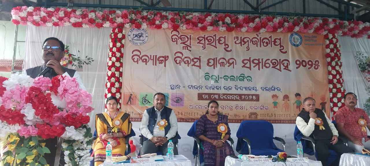 ବଲାଙ୍ଗୀର( ପ୍ରେରଣା ଖବର): ସମଗ୍ର ଶିକ୍ଷା ବଲାଙ୍ଗୀର ତରଫରୁ ସ୍ଥାନୀୟ ଟାଉନ ବାଳିକା ଉଚ୍ଚ ବିଦ୍ୟାଳୟ ଠାରେ ଦିବ୍ୟାଙ୍ଗ ଛାତ୍ରଛାତ୍ରୀଙ୍କ ପାଇଁ ସକାରାତ୍ମକ ପରିବେଶ ସୃଷ୍ଟି ନିମନ୍ତେ ଜିଲ୍ଲା ସ୍ତରୀୟ ସାଂସ୍କୃତିକ ଓ କ୍ରୀଡା ପ୍ରତିଯୋଗିତା ସମାରୋହ-୨୦୨୫ ଅନୁଷ୍ଠିତ ହୋଇଯାଇଛି।ଅତିରିକ୍ତ ବ୍ଲକ ଶିକ୍ଷା ଅଧିକାରୀ ତଥା ଏହି କାର୍ଯ୍ୟକ୍ରମର ନୋଡାଲ ଅଫିସର ସେବାଶ୍ରୀ ଭୋଇ ଙ୍କ ସଭାପତିତ୍ୱରେ ଅନୁଷ୍ଠିତ କାର୍ଯ୍ୟକ୍ରମ ରେ ମୁଖ୍ୟ ଅତିଥି ଭାବେ ବଲାଙ୍ଗୀର ଜିଲ୍ଲା ଶିକ୍ଷା ଅଧିକାରୀ ପ୍ରଦୀପ କୁମାର ନାଗ,ସମ୍ମାନୀତ ଅତିଥି ଭାବେ ବଲାଙ୍ଗୀର ସଦର ବ୍ଳକ ଶିକ୍ଷା ଅଧିକାରୀ ନୀଳମଣି ପଟେଲ,ବିଇଡି କଲେଜ ର