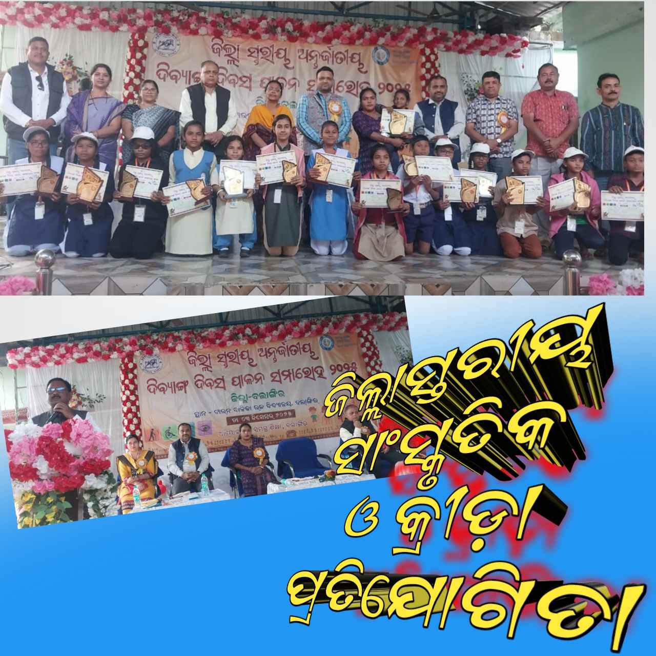 ଆସିଷ୍ଟାଣ୍ଟ ପ୍ରଫେସର ଡ.ସୁଧାଂଶୁଵାଲା ତ୍ରିପାଠୀ,ସ୍ଥାନୀୟ ବିଦ୍ୟାଳୟର ପ୍ରଧାନ ଶିକ୍ଷକ ନରେନ୍ଦ୍ର ନାଥ ମିଶ୍ର,ଅନ୍ତର୍ନିବେଶୀ ଶିକ୍ଷା ସଂଯୋଜକ ପ୍ରଶାନ୍ତ ସରାଫ ଯୋଗଦେଇଥିଲେ।ମୁଖ୍ୟ ଅତିଥି ଶ୍ରୀ ନାଗ ନିଜ ବକ୍ତବ୍ୟରେ ଦିବ୍ୟାଙ୍ଗ ଶିଶୁ ମାନେ ଆମ ସମାଜର ଗୁରୁତ୍ୱପୂର୍ଣ୍ଣ ଅଙ୍ଗ। ସମାଜର ସକ୍ରିୟ ଓ ସମାନ ସଦସ୍ୟ ଭାବେ ସେମାନଙ୍କୁ ଗଢି ତୋଳିବା ପାଇଁ ଶିକ୍ଷା ସହ ସାଂସ୍କୃତିକ ଓ କ୍ରୀଡା ପ୍ରତିଯୋଗିତାର ଭୂମିକା ଅତ୍ୟନ୍ତ ଗ୍ରୁରୁତ୍ୱପୂର୍ଣ୍ଣ ବୋଲି କହିଥିଲେ।ଏହି ଅବସରରେ ଆୟୋଜିତ ଜୁନିଅର ବିଭାଗର ସଂଗୀତ ପ୍ରତିଯୋଗିତାରେ ପ୍ରଥମ ସମୀର ଷାଣ୍ଢ,ଦ୍ଵିତୀୟ ମମିତା ସାହୁ ଏବଂ ତୃତୀୟ ବବିତା ତ୍ରିପାଠୀ,ମ୍ୟୁଜିକ ଚେୟାର ରେ ପ୍ରଥମ ଶ୍ରଦ୍ଧାଞ୍ଜଳି ଜାଲ, ଦ୍ଵିତୀୟ ହେମନ୍ତ ଦେଓ,ତୃତୀୟ ପୁଷ୍ପେନ୍ଦ୍ର ବଛା,ବକ୍ତୃତା ରେ ପ୍ରଥମ ସଗୁନ କୁଅଁର, ଦ୍ଵିତୀୟ ଅନୁଭବ ସାହୁ,ତୃତୀୟ ପ୍ରାଚୀ ସ୍ୱାଇଁ,ଚାମଚ ଦୌଡ ପ୍ରତିଯୋଗିତାରେ ପ୍ରଥମ କେଶବ ସା,ଦ୍ଵିତୀୟ ମୋହନ ଦଳାଇ,ତୃତୀୟ ସ୍ଥାନ ପରମେଶ୍ୱର ପଧାନ ଅଧିକାର କରିଥିବା ବେଳେ ସିନିଅର ବିଭାଗର ବକ୍ତୃତା ପ୍ରତିଯୋଗିତାରେ ପ୍ରଥମ ଆରାଧ୍ୟା ବିଶି,ଦ୍ଵିତୀୟ ହରିପ୍ରିୟା ଛାତ୍ରୀୟା, ତୃତୀୟ ଅନ୍ବେଷ କୁମ୍ଭାର ସେହିପରି ସଂଗୀତ ପ୍ରତିଯୋଗିତାରେ ପ୍ରଥମ ଈଶ୍ୱର ହରପାଳ,ଦ୍ଵିତୀୟ ନେହା ପୁଟେଲ,ତୃତୀୟ ଅଲିଶା ଛତ୍ରିଆ,ଚାମଚ ଦୌଡ ପ୍ରତିଯୋଗିତା ରେ ପ୍ରଥମ ମୋହିନୀ ମାଝୀ,ଦ୍ଵିତୀୟ, ତିଲୋତ୍ତମ ଜାନି,ତୃତୀୟ ରାହୁଲ କୁମାର ଖୁଆସ,ମ୍ୟୁଜିକ ଚେୟାରରେ ପ୍ରଥମ ରମାକାନ୍ତ ସୁନାନୀ,ଦ୍ଵିତୀୟ ଭଂଜନୀ ମାଝୀ ଏବଂ ପୁଷ୍ପାଞ୍ଜଳି ମେହେର ତୃତୀୟ ସ୍ଥାନ ଅଧିକାର କରିଥିଲେ।ଉଦଯାପନୀ ଉତ୍ସବରେ ଅତିରିକ୍ତ ବ୍ଲକ ଶିକ୍ଷା ଅଧିକାରୀ ସେବାଶ୍ରୀ ଭୋଇ,ପ୍ରବୀର କୁମାର ପଣ୍ଡା,ରୀନା କୁମାରୀ ବେହେରା,