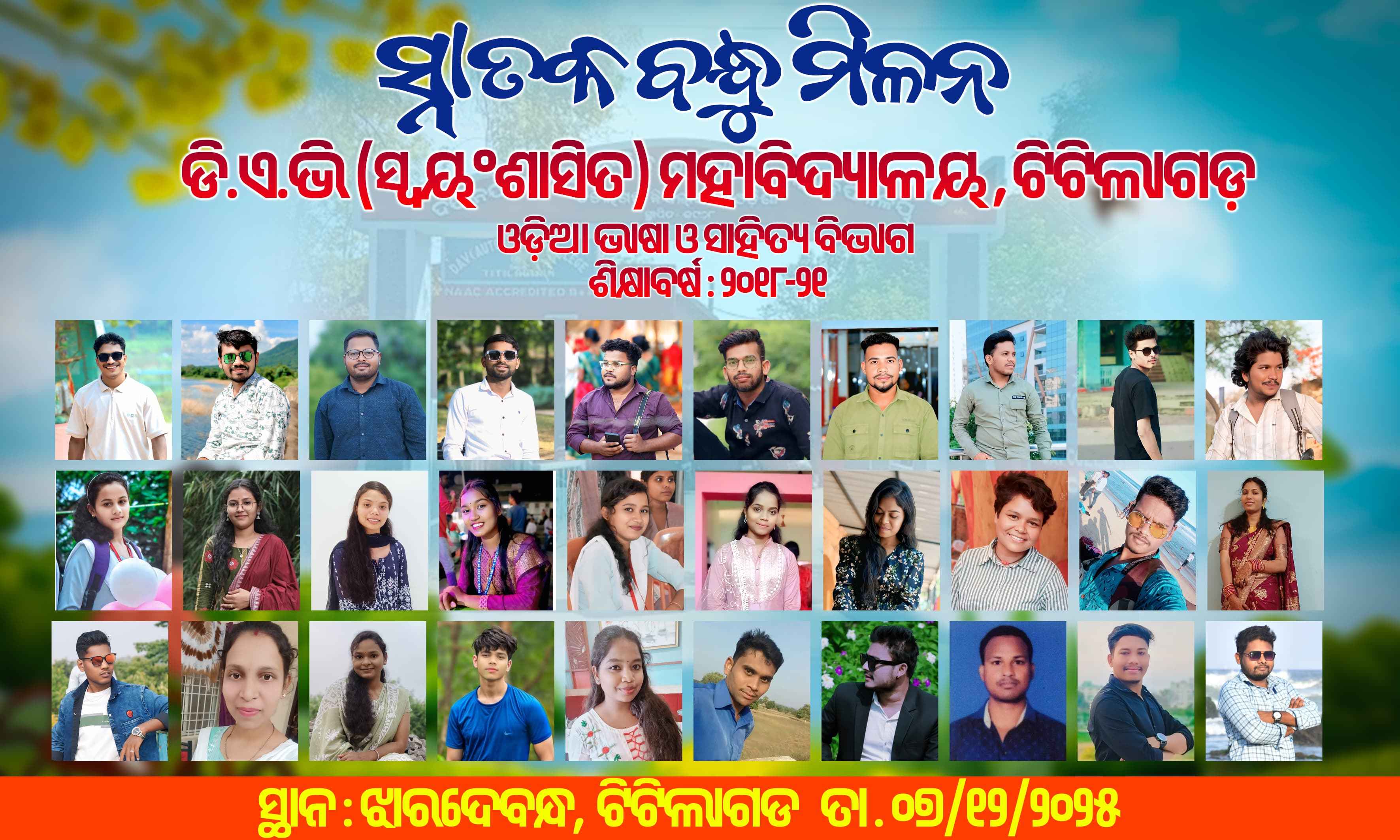ଟିଟିଲାଗଡ଼(ପ୍ରେରଣା ଖବର): ଡି.ଏ.ଭି. (ସ୍ବୟଂଶାସିତ) ମହାବିଦ୍ୟାଳୟ, ଟିଟିଲାଗଡ଼ ଓଡ଼ିଆ ଭାଷା ଓ ସାହିତ୍ୟ ବିଭାଗର ପୂର୍ବତନ ସ୍ନାତକ ଛାତ୍ରମାନଙ୍କ ଦ୍ବାରା 'ବନ୍ଧୁ ମିଳନ' କାର୍ଯ୍ୟକ୍ରମ ଝାରଦେବନ୍ଧ, ଟିଟିଲାଗଡ଼ ଠାରେ ଆୟୋଜିତ ହୋଇଯାଇଛି। ଏଥିରେ ଓଡ଼ିଆ ଭାଷା ସାହିତ୍ୟ ବିଭାଗର ଅଧ୍ୟାପିକା ମନ୍ଦାକିନୀ ମେହେର, ଅଧ୍ଯାପକ ଡକ୍ଟର ଜଗଦୀଶ ଚନ୍ଦ୍ର ଭୋଇ, ଡକ୍ଟର ସୁଶାନ୍ତ ମହାନନ୍ଦ, କୁବାର ବଛା ଉପସ୍ଥିତ ରହି ପିଲାମାନଙ୍କ କ୍ୟାରିୟର ସମ୍ବନ୍ଧୀୟ ଆଲୋଚନା କରିବା ସହ ପିଲାମାନଙ୍କୁ ଆଗକୁ ବଢିବାର ଉତ୍ସାହ ପ୍ରଦାନ କରିଥିଲେ। ଝାରଦେବନ୍ଧର ପ୍ରାକୃତିକ ସୌଦର୍ଯ୍ୟମୟ ପରିବେଶରେ ବନବିହାର ସହିତ ସାଂସ୍କୃତିକ କାର୍ଯ୍ୟକ୍ରମମଧ୍ଯ ଆୟୋଜିତ ହୋଇଥିଲା । ସ୍ନାତକ ୨୦୧୮-୨୧ ଶିକ୍ଷାବର୍ଷ ଓଡ଼ିଆ ବିଭାଗର ଛାତ୍ର ପବିତ୍ର ବାଗ, ସମୀର ରଣା, ସଞ୍ଜୀବ ଭୋଇ, ସୁଦାମ ଛାନ୍ଦ, ଦୁର୍ବାଦଳ କଟା, ଶିବା ମନହୀରା, ରାଧାମାଧବ କଲତା, ସରଜୁ ନାଗ, ଶେଷଦେବ ବେହେରା,