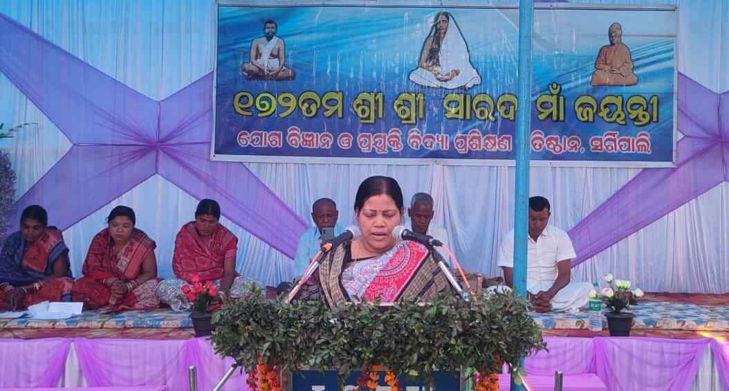 ବରଗଡ଼ ଜିଲ୍ଲା ବରପାଲି ବ୍ଲକ୍ ଅନ୍ତର୍ଗତ ସର୍ଗିପାଲି ସ୍ଥିତ ମାଁ ସାରଦା ପୀଠ ପରିସରରେ ଯୋଗ ବିଜ୍ଞାନ ଓ ପ୍ରଯୁକ୍ତି ବିଦ୍ଯା ପ୍ରଶିକ୍ଷଣ ପ୍ରତିଷ୍ଠାନ ପକ୍ଷରୁ ମାଁ ସାରଦା ଦେବୀଙ୍କ ୧୭୨ତମ ଜନ୍ମଜୟନ୍ତୀ ପାଳିତ ହୋଇଯାଇଛି। କାର୍ଯ୍ୟକ୍ରମକୁ ଆଚାର୍ଯ୍ଯ ଓ ସାଧକସାଧିକା ମାନଙ୍କ ଗହଣରେ ଗୁରୁଜୀ ଉଦ୍ଘାଟନ କରିଥିଲେ। ପ୍ରାରମ୍ଭରେ ପିଠ ପୂଜନ ସମ୍ପର୍ଣ୍ଣ ପରେ ଗୁରୁମାଁ, ଗୁରୁଜୀ, ଆଚାର୍ଯ୍ଯ ଓ ସାଧକସାଧିକା ଶିକ୍ଷାର୍ଥିମାନେ ମାଁଙ୍କ ପ୍ରତିମୂର୍ତ୍ତିରେ ମାଲ୍ଯାର୍ପଣ ସହ ପୂଜାର୍ଚ୍ଚନା କରିଥିଲେ। ଏହି ଅବସରରେ ଶ୍ରୀଗୁରୁଙ୍କ ରଚିତ ଜୟମାଁ ସାରଦା ସଂଗିତ ସାଧିକା ବାସନ୍ତି ଓ ସାଥିଙ୍କ ଦ୍ବାରା ପରିବେଷଣ ହୋଇଥିଲା। ମାଁ ସାରଦାଙ୍କ ଜୀବନୀ ଓ ତ୍ଯାଗ, ନିଷ୍ଠା, ବଦାନ୍ୟତା ଏବଂ ନାରୀ ସମାଜର ପ୍ରେରଣାର ଶକ୍ତି ବିଷୟ ଉପରେ ସାଧକ ମହେନ୍ଦ୍ର ମହାଣା ଉପସ୍ଥାପନ କରିଥିଲେ। ଈଶ୍ବର ପ୍ରଣିଧାନ ସମ୍ବନ୍ଧରେ ଯୋଗ ବିଜ୍ଞାନର ରହସ୍ୟ ଉପରେ ଆଚାର୍ଯ୍ୟ ଶେଷଦେବ ବେହେରା ଅଭିଭାଷଣ ରଖିଥିଲେ। ସମାଧିର ସଜ୍ଞା ଏବଂ ମନୁଷ୍ୟ ଜୀବନରେ ଭୂମିର ପ୍ରୟୋଗଜନ୍ୟ ରହସ୍ୟ ସମ୍ପର୍କରେ ବଳବନ୍ତ ଛତ୍ରିଆ ବକ୍ତବ୍ଯ ପ୍ରଦାନ କରିଥିଲେ। ଯୋଗ ବିଜ୍ଞାନ ଓ ଏହାର ରହସ୍ୟ ସମ୍ବନ୍ଧରେ ବିସ୍ତୃତ ଭାବରେ ଗୁରୁଜୀ ଆଲୋଚନା କରିଥିବା ବେଳେ ଗୁରୁମାଁ ଗୁରୁତତ୍ତ୍ଵ ଓ ଏହାର ରହସ୍ୟ ଉପରେ ବ୍ୟାଖ୍ୟା କରିଥିଲେ। ସେହିପରି ସାଧକ ରାଜେଶ ପଧାନ ମଣିଷ ଜୀବନରେ ଶିକ୍ଷା ଓ ସାଧନାର ଆବଶ୍ୟକତାକୁ ନେଇ ସାଧୁବାଣୀ ବାଢିଥିଲେ।