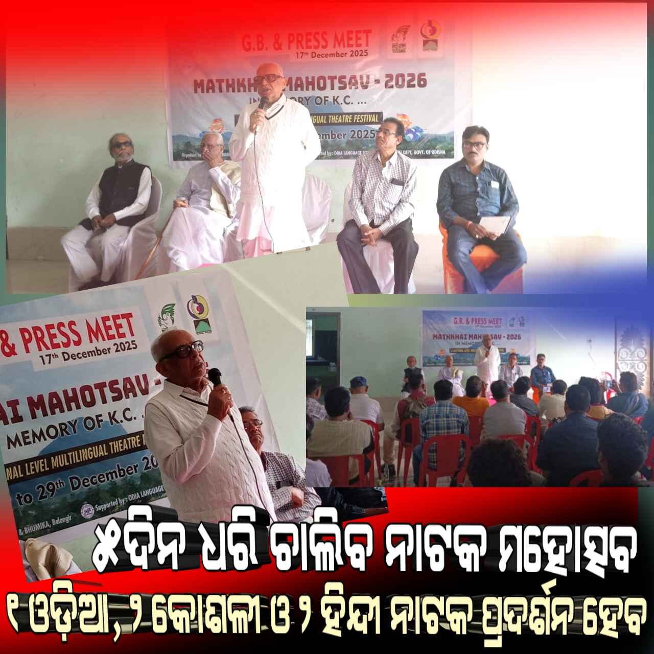 ବଲାଙ୍ଗିର(ପ୍ରେରଣାଖବର): ସାଂସ୍କୃତିକ ଓ ସାମାଜିକ ଅନୁଷ୍ଠାନ ଭୂମିଳା ଓ ମଠଖାଇ ମହୋତ୍ସବ କମିଟିର ମିଳିତ ଆନୁକୂଲ୍ୟରେ ଡିସେମ୍ବର ୨୫ ରୁ ୨୯ ତାରିଖ ପର୍ଯ୍ୟନ୍ତ ମଠଖାଇ ମହୋତ୍ସବ ହେବାକୁ ଯାଉଛି। ସ୍ଥାନୀୟ କୋସଲ କଳାମଣ୍ଡଳରେ ଦୀର୍ଘ ୫ଦିନଧରି ଏହି କାର୍ଯ୍ୟକ୍ରମ ଚାଲିବ ବୋଲି ଆଜି ସ୍ଥାନୀୟ ସଂସ୍କୃତି ମଣ୍ଡପଠାରେ ଅନୁଷ୍ଠିତ ସାମ୍ବାଦିକ ସମ୍ମିଳନୀ ଓ ସାଧାରଣ ପରିଷଦ ବୈଠକରେ କମିଟି ପକ୍ଷରୁ ସୂଚନା ଦିଆଯାଇଛି। ଭୂମିକାର ସଭାପତି ବୀରେନ୍ଦ୍ର ବନଛୋରଙ୍କ ପରିଚାଳନାରେ ଅନୁଷ୍ଠିତ ବୈଠକରେ ମହୋତ୍ସବ କମିଟି ଅଧ୍ୟକ୍ଷ ତଥା ପୂର୍ବତନ ମନ୍ତ୍ରୀ ନରସିଂହ ମିଶ୍ର, ଭୂମିକା ଉପଦେଷ୍ଟା ପ୍ରଫେସର ମଧୁସୂଦନ ପତି, ଉପଦେଷ୍ଟା ନାଟ୍ୟଭୂଷଣ ଜଗଦାନନ୍ଦ ଛୁରିଆ, ସମ୍ପାଦକ ଜିତେନ୍ଦ୍ରିୟ ତ୍ରିପାଠୀ ମଂଚାସୀନ ଥିଲେ। ପୂର୍ବବର୍ଷଗୁଡ଼ିକ ଭଳି ଏଥର ମଧ୍ୟ ଏହି ସମାରୋହକୁ ରାଜ୍ୟ ତଥା ରାଜ୍ୟ ବାହାରର ନାଟ୍ୟ ଦଳଗୁଡିକ ଆସିବେ । ଚଳିତବର୍ଷ ମୋଟ ୨ଟି କୋସଲୀ, ୨ଟି ହିନ୍ଦୀ ଏବଂ ଗୋଟିଏ ଓଡିଆ ନାଟକ ପରିବେଷଣ ହେବ ।