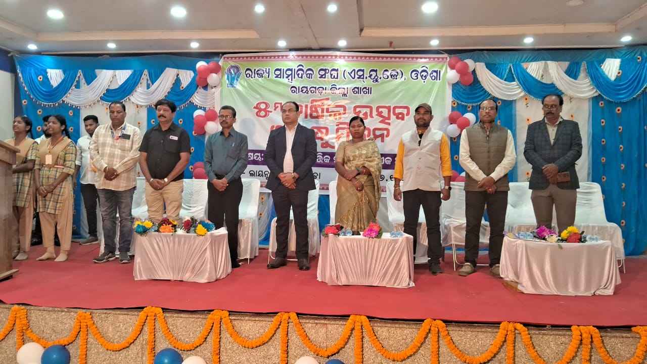 ରାୟଗଡା(ପ୍ରେରଣା ଖବର): ରାୟଗଡା ଜିଲ୍ଲା ଏସୟୁଜେ ଶାଖାର ୫ମ ବାର୍ଷିକ ଉତ୍ସବ ଓ ବନ୍ଧୁମିଳନ କାର୍ଯ୍ୟକ୍ରମ ଆଜି ରାଜ୍ୟ ସଭାପତି କୈଳାଶ ଚନ୍ଦ୍ର ନାୟକଙ୍କ ଶୁଭେଚ୍ଛା ଓ ଶୁଭକାମନା ସ୍ପର୍ଶରେ ରାଜ୍ୟ କାର୍ଯ୍ୟକାରିଣୀ ସଭାପତି କୀର୍ତ୍ତିଚନ୍ଦ୍ର ସାହୁ, ରାଜ୍ୟ ଉପରେ ସଭାପତି ମହେନ୍ଦ୍ର କୁମାର ଦର୍ଜୀ, ରାଜ୍ୟ ସମ୍ପାଦକ ବିଭୁ ପ୍ରସାଦ ପଣ୍ଡାଙ୍କ ଉପସ୍ଥିତିରେ ଜିଲ୍ଲା କାର୍ଯ୍ୟକର୍ତ୍ତାଙ୍କ ଗହଣରେ