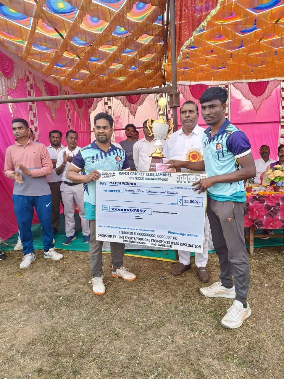 ତୁଷୁରା (ପଞ୍ଚାନନ ନାଏକ) ବଲାଙ୍ଗିର ଜିଲ୍ଲା ଗୁଡଭେଳା ବ୍ଲକ ଅନ୍ତର୍ଗତ ତେନ୍ତୁଳୀଖୁଣ୍ଟି ପଞ୍ଚାୟତ ଜମ୍ଭେଲ ମିନି ଖେଳପଡିଆ ଠାରେ ସ୍ଥାନୀୟ ରାମଜୀ କ୍ରିକେଟ ସଂଘ ଆନୁକୂଲ୍ୟରେ ଟୁର୍ନାମେଣ୍ଟ ଅନୁଷ୍ଠିତ ହେଇଥିଲା ଦୋହେଲା ଓ ସିନ୍ଦୁର ବାହାଲ ମଧ୍ୟରେ ଫାଇନାଲ ଖେଳ ହେଇଥିଲା ଉକ୍ତ ଖେଳ ରେ ସିନ୍ଦୁର ବାହାଲ କୁ ପରାସ୍ତକରି ଦୋହେଲା ବିଜୟୀ ହେଇ ଫାଇନାଲ କୁ ପ୍ରବେଶ କରିଥିଲା ମୁଖ୍ୟ ଅତିଥିଭାବେ ପୂର୍ଵତନ ବ୍ଲକଅଧକ୍ଷ ଅଶୋକ ଚନ୍ଦ୍ର ଦୋରା, ସମ୍ମାନିତ ଅତିଥି ତେନ୍ତୁଳୀଖୁଣ୍ଟି ସରପଞ୍ଚ ଗୃଦାନନ୍ଦ ମହାନନ୍ଦ ମୁଖ୍ୟ ଅତିଥି ଙ୍କ ହାତରୁ ଟ୍ରାଫି ପୁରସ୍କୃତକରି କ୍ରିକେଟ ଖେଳାଳିଙ୍କୁ ଭାଷଣ ରଖି ସହିତ ଉତ୍ସାହିତ କରିଥିଲେ ସହଯୋଗ ଡମ୍ୱରୁଧର ବାରିକ, ସଚ୍ଚିପାଥି ମେହେର, ତପନ କୁମାର ଭୋଇ, ଡମ୍ୱରୁଧର ଚନ୍ଦନ, ଛବିଲ ଭୋଇ, ପଦ୍ମନାଭ ବାରିକ, ମୈତ୍ର ଭୋଇ ପରିଚାଳନାରେ ସହଯୋଗ କରିଥିଲେ