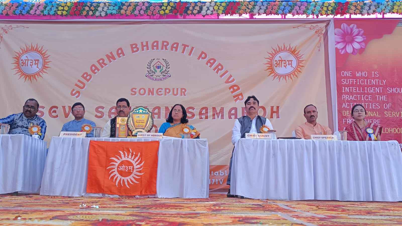 ଦୟାନନ୍ଦ ପବ୍ଲିକ ସ୍କୁଲ ଓ ସୁବର୍ଣ୍ଣ ଭାରତୀ ପରିବାର ର ସମସ୍ତ ସଦସ୍ୟ, ଟିଚର, କର୍ମଚାରୀ ଓ ଭାରତ ବିକାଶ ପରିଷଦ ର ସଭାପତି ଶ୍ରୀ ଦୂର୍ଯୋଧନ ସାହୁ, ସଦସ୍ୟା ସୁନନ୍ଦା ସାହୁ, କବିତା ପଧାନ, ସୁଭାଷିନୀ ଷଡ଼ଙ୍ଗୀ ପ୍ରମୁଖ ସମସ୍ତ ସଦସ୍ୟ କାର୍ଯ୍ଯ କ୍ରମ ରେ ସହଯୋଗ କରିଥିଲେ l ଶ୍ରୀମତୀ ସୁନନ୍ଦା ସାହୁ ଓ ଲକ୍ଷ୍ମୀ ନାରାୟଣ ସାହୁ ସଭା ସଂଯୋଜନା କରିଥିବା ବେଳେ ଦୁର୍ୟୋଧନ ସାହୁ, କବିତା ପଧାନ ଓ ସୁଭାଷିନୀ ଷଡ଼ଙ୍ଗୀ ଅତିଥି ସ୍ଵାଗତ କରିଥିଲେ l subarn*ସୁବର୍ଣ୍ଣ ଭାରତୀ ପରିବାର ପକ୍ଷରୁ ସେବା ସମ୍ମାନ ସମାରୋହ*- ସୋନପୁର - ୨୬-୧୨- ଆଜି ସୁବର୍ଣ୍ଣ ଭାରତୀ ପରିବାର ସୁବର୍ଣ୍ଣପୁର ପକ୍ଷରୁ ଆୟୋଜିତ "ସେବା ସମ୍ମାନ ସମାରୋହ ୨୦୨୪, ୨୦୨୫ ଓ ୨୦୨୬" ପାଇଁ ବିଭିନ୍ନ କ୍ଷେତ୍ରରେ ସେବା ଓ ସମାଜ ର ହିତ ପାଇଁ କାର୍ଯ୍ଯ କରି ଆସୁଥିବା ୬୦ ରୁ ଉର୍ଦ୍ଧ୍ବ ବ୍ୟକ୍ତି ବିଶେଷ ଙ୍କୁ ସମ୍ବର୍ଦ୍ଧିତ କରା ଯାଇଥିଲା l ଆଜିର ଏହି ଉତ୍ସବ ରେ ଏସପି ଶ୍ରୀ ନାରାୟଣ ନାଏକ ମୁଖ୍ୟ ଅତିଥି, ସମ୍ମାନିତ ଅତିଥି ଭାବରେ ଉପ ଜିଲ୍ଲାପାଳ ସୌମ୍ୟା ରୂପା ରଥ, ଆର ଏସ ଏସ ର ସହ ପ୍ରାନ୍ତ ପ୍ରଚାରକ ସୁରେନ୍ଦ୍ର ପଣ୍ଡା, କବି ଆର୍ତ୍ତ ତ୍ରାଣ ବାବୁ, ପ୍ରଧ୍ୟାପକ ଉମାକାନ୍ତ ନାଗ ଯୋଗ ଦେଈ ସୁବର୍ଣ୍ଣ ଭାରତୀ ପରିବାର ର ସମ୍ମାନ ସମରୋହ ଅୟୋଜନ କୁ ଭୂୟସୀ ପ୍ରଶଂସା କରିଥିଲେ l ଅନୁଷ୍ଠାନ ପକ୍ଷରୁ ସୁବର୍ଣ୍ଣପୁର ଏସପି ଶ୍ରୀ ନାରାୟଣ ନାଏକ ଙ୍କୁ ଭାରତ ବିକାଶ ପରିଷଦ ର ସୁନନ୍ଦା ସାହୁ ଓ ଉଦ୍ଘୋଷକ ଲକ୍ଷ୍ମୀ ନାରାୟଣ ସାହୁ ଙ୍କୁ "ମୁତ୍ୟାଲ୍ଲୁ ଆମ୍ମା ସ୍ମୃତି ସମ୍ମାନ" ରେ ସମ୍ବର୍ଧିତ କରାଯାଇ ଥିବା ବେଳେ ଶ୍ରୀ ଗୋପାଳ ଜୀ ବିଭୁ କୃପା ସମ୍ମାନ ରେ ସୋନପୁର ଉପ ଜିଲ୍ଲାପାଳ ଡ଼ ସୌମ୍ୟା ରୂପା ରଥ ଙ୍କୁ ସମ୍ବର୍ଧିତ କରାଯାଇଥିଲା l ସୁବର୍ଣ୍ଣ ଗୌରବ ମରୋଣତ୍ତର ସମ୍ମାନ ରେ ସ୍ଵଗତ ମୋହନ ମେହେର, ବି ସୁଦାମ ପାତ୍ର ଓ ବାଣୀ ସେଟି ଶ୍ରୀ ହରି ପାତ୍ର ଙ୍କ ସମ୍ମାନ ତାଙ୍କ ପରିବାର ଙ୍କୁ ପ୍ରଦାନ କରା ଯାଇଥିଲା l ସେହିପରି ସମ୍ବାଦ ଶ୍ରୀ ସମ୍ମାନ ରେ ସ୍ଵାଧୀନ ମେହେର , ନେତୃତ୍ଵ ଶ୍ରୀ ସମ୍ମାନ ରେ ମନୋରଞ୍ଜନ ତ୍ରୀପାଠୀ , ଶିକ୍ଷା ଶ୍ରୀ ସମ୍ମାନ ରେ ଦେବେନ୍ଦ୍ର ପଧାନ , ଗତି କୃଷ୍ଣ ମିଶ୍ର ଓ ସନ୍ତୋଷ ପୁଝାରୀ , ଧର୍ମ କଲ୍ୟାଣୀ ସମ୍ମାନ ରେ ନନ୍ଦିନୀ ଶତପଥି, ଯୋଗ ଶ୍ରୀ ସମ୍ମାନ ରେ ନ୍ୟୁନ ଚନ୍ଦ୍ର ପୁଝାରୀ, ସୁରେଶ ଚନ୍ଦ୍ର ବେହେରା , ସୁବର୍ଣ୍ଣ ଶ୍ରୀ ସମ୍ମାନ ରେ ପୌଲସ୍ତି ମେହେର, ସତ୍ୟ ନାରାୟଣ ସାହୁ ଓ ଜୟ ନାରାୟଣ ସା , ନାରୀ ଶକ୍ତି ସମ୍ମାନ ରେ ମଞ୍ଜୁଳା ମିଶ୍ର , ଏଡଭାଞ୍ଚର ବାଇକ୍ ରାଇଡର୍ ସମ୍ମାନ ରେ ମିଥୁନ ସାହୁ , ସଂସ୍କୃତି ସୁରକ୍ଷା ସମ୍ମାନ ରେ ବୈକୁଣ୍ଠ ଶତପଥୀ, ଘନ ଶ୍ୟାମ ଭ୍ୟାସ, ଓ ପ୍ରସାଦୁ ପ୍ରଧାନ , ଆୟୁଶ୍ରୀ ସମ୍ମାନ ରେ ରଞ୍ଜନ କୁମାର ମିଶ୍ର, ସୁବର୍ଣ୍ଣ ଶ୍ରିମୟୀ ସମ୍ମାନ ରେ କେ ବର୍ଷା , ଯୁବ ନେତୃତ୍ବ ସମ୍ମାନ ରେ ପୀୟୂଷ କୁମାର ପଣ୍ଡା , ସଙ୍ଗୀତ ଶ୍ରୀ ସମ୍ମାନ ରେ କୃଷ୍ଣ ଚନ୍ଦ୍ର ସିନ୍ଧରିଆ, ଗୀତିକାର ସମ୍ମାନ ରେ ଯୁଧିଷ୍ଠିର ବାରିକ, ସଦ ଭାବନା ସମ୍ମାନ ରେ ଏଡଭୋକେଟ ନରଦେବ ଭୋଇ, ନାଟ୍ୟଶ୍ରୀ ସମ୍ମାନ ରେ ଗିରିଜା ଶଙ୍କର ସାହୁ, ସୁରକ୍ଷା ସମ୍ମାନ ରେ ଏକ୍ସ ଆର୍ମି ସଂଘ କର୍ମ କର୍ତ୍ତା ଙ୍କୁ ଓ ଦେବ ଦମ୍ପତି ସମ୍ମାନ ରେ ଭଗବତୀ ରାୟଗୁରୁ, ପ୍ରତାପ କେଶରୀ ରାୟ ଗୁରୁ, ବୃନ୍ଦାବନ ରଥ ଜୟନ୍ତୀ ରଥ ଓ ଗୁଣ ନିଧୀ ପାତ୍ର ପ୍ରେମ ଶିଳା ପାତ୍ର ଙ୍କ ସମେତ ସୋନ