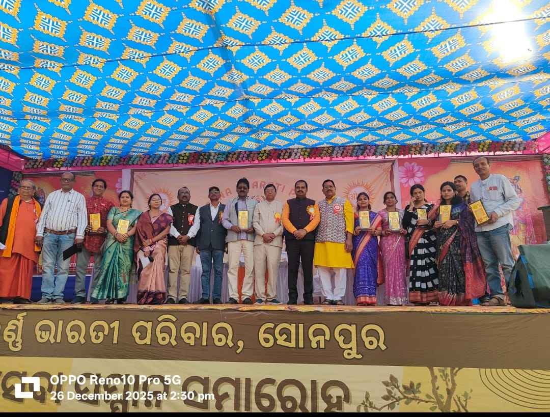 ଉପରେ ଗୁରୁତ୍ବାରୋପ କରିଥିଲେ । ସମ୍ମାନିତ ଅତିଥି ଭାବରେ ସୋନପୁର କଲେଜର ପ୍ରଫେସର ରାଧାକାନ୍ତ ନାଏକ ମୁଖ୍ୟବକ୍ତା ଭାବେ ଉଦ୍ୟାନ ବିଭାଗ ସହ ନିର୍ଦ୍ଦେଶକ ହୃଷିକେଶ ଦାସ, ବକ୍ତା ଲକ୍ଷ୍ଣଣ କୁମାର ଶାସ୍ତ୍ରୀ,(ପ୍ରବଚକ ) ସୁବର୍ଣ୍ଣଭାରତୀ ପରିବାର ପ୍ରମୁଖ ଶିବ ପ୍ରସାଦ ପାତ୍ର ପ୍ରମୁଖ ଯୋଗଦେଇ ଆମ ଧର୍ମ ସଂସ୍କୃତି ପରମ୍ପରା ଓ ଏକତା ଆମରି ଗୌରବ ଓ ଆମ ସୁରକ୍ଷା ବୋଲି ମତ ରଖିଥିଲେ। ସୁବର୍ଣ୍ଣ ଭାରତୀ ପରିବାର ର ପ୍ରମୁଖ ଶିବ ପ୍ରସାଦ ପାତ୍ର ସ୍ବାଗତ ଭାଷଣ ପ୍ରଦାନ୍ କରି ଥିବା ବେଳେ ସୁନନ୍ଦା ସାହୁ ସଭା ସଂଯୋଜନା କରିଥିଲେ l ଅଧ୍ୟାପକ ଉମାକାନ୍ତ ନାଗ ଧନ୍ୟବାଦ ଅର୍ପଣ କରିଥିଲେ। ଆର୍ଯ୍ୟରତ୍ନ ସମ୍ମାନରେ ୩ ଜଣ, ଆର୍ଯ୍ୟ ଗୌରବ ସମ୍ମାନ ରେ ୨୭ ଜଣ, ଆର୍ଯ୍ୟ ଦମ୍ପତି ସମ୍ମାନରେ ଗୋଟାଏ ଦମ୍ପତି ଓ ମୂତ୍ୟାଲ୍ଲୁ ଆମ୍ମା ସ୍ମୃତି ସମ୍ମାନ ରେ ୧୩ ଜଣ ବିଶିଷ୍ଟ ବ୍ୟକ୍ତି ଙ୍କୁ ଆଜି ମୁଖ୍ୟ ଅତିଥି ବିଧାନ ସଭା ଚିଫ ହ୍ୱିପ ଶ୍ରୀ ଶ୍ରୀ ସରୋଜ କୁମାର ପ୍ରଧାନ ଙ୍କ ଦ୍ଵାରା ସମ୍ବର୍ଦ୍ଧିତ କରା ଯାଇଥିଲା l ଏହି ଉତ୍ସବ ରେ ବିଭିନ୍ନ ଅଞ୍ଚଳ ରୁ ଶହ ଶହ ସାଧୁ ସନ୍ୟାସୀ ସହର ର ବୁଦ୍ଧିଜିବୀ ମହିଳା ବିଶିଷ୍ଟ ବ୍ୟକ୍ତି ଯୋଗ ଦେଇଥିଲେ l ଭାରତ ବିକାଶ ପରିଷଦ ସଭାପତି ଦୂର୍ଯୋଧନ ସାହୁ , ନନ୍ଦିନୀ ଶତପଥୀ, କବିତା ପଧାନ, ସୁଭାଷିନୀ ଷଡ଼ଙ୍ଗୀ ପ୍ରମୁଖ ଉଭୟ ଅନୁଷ୍ଠାନ ର ସମସ୍ତ ସଦସ୍ୟ କାର୍ଯ୍ଯ କ୍ରମ ରେ ସହଯୋଗ କରିଥିଲେ l