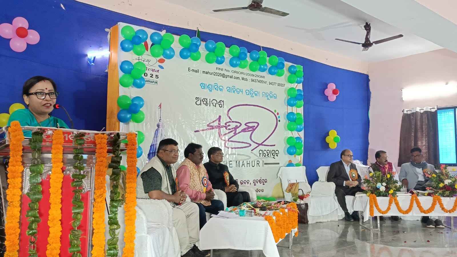 ମଣିଷ ମନର ଆବେଗକୁ ପରିପ୍ରକାଶ କରିବା ପାଇଁ ସାହିତ୍ୟ ହିଁ ଏକମାତ୍ର ଉପଯୁକ୍ତ ମାଧ୍ୟମ। ସାହିତ୍ୟ ସାଧନା ସୁଖ, ଦୁଃଖ, ଅଭାବ ଓ ଅସୁବିଧା ଦେଖେ ନାହିଁ। ସେହିପରି ସାହିତ୍ୟରେ ଶବ୍ଦ, ଛନ୍ଦ, ଅଳଙ୍କାର ଅପେକ୍ଷା ଭାବ ହିଁ ମୁଖ୍ୟ ଉପଜୀବ୍ୟ ହୋଇଥାଏ। ଜୀବନକୁ ଛୁଇଁ ଛୁଇଁ ଯାଉଥିବା ପ୍ରସଙ୍ଗ ସବୁକୁ ନିଜର ପ୍ରତିଟି ପୃଷ୍ଠାରେ ତୋଳି ଧରି ମହୁରି ଆଜି ସାହିତ୍ୟ ଜଗତରେ ଏକ ଭିନ୍ନ ପରିଚୟ ତିଆରି କରିଛି। କବି, ଲେଖକ, ସାହିତ୍ୟିକ ସମସ୍ତଙ୍କୁ ନିଜର କରି ପାରୁଥିବା ମହୁରି ପତ୍ରିକା ସତରେ ସାହିତ୍ୟ ଜଗତରେ ଅନବଦ୍ୟ ଓ ଅନନ୍ୟ ବୋଲି ଆଜି ସୁବର୍ଣ୍ଣପୁରସ୍ଥିତ ସଂସ୍କୃତି ଭବନଠାରେ ଅନୁଷ୍ଠିତ ଅଷ୍ଟାଦଶ ମହୁରି ମହୋତ୍ସବ ଅବସରରେ ଅତିଥିମାନେ ମତବ୍ୟକ୍ତ କରିଛନ୍ତି। ଆପଣ ଯେତେେଳେ ପର୍ଯ୍ୟାପ୍ତ ପୃଥିବୀ କୁ ଆବିଷ୍କାର କରିବା ପ୍ରଚେଷ୍ଟା ରେ ନିଜ କୁ ନିୟୋଜିତ ରଖିବେ, ଦେଖିବେ ସତରେ ଆକାଶ ର ଜନ୍ହ ଟା ଏବେବି ସୁନ୍ଦର ଅଛି ସତରେ ପାଦ ତଳ ର ସବୁଜ ଘାସ ଟା ସେମିତି ଅଛି ବୋଲି ଜିଲ୍ଲାପାଳ ଡ଼ ସାହୁ କହିଥିଲେ l କଳାହାଣ୍ଡି କବିତା ଆନ୍ଦୋଳନର ଶାଶ୍ୱତ ସ୍ପନ୍ଦନ ମହୁରି ସାହିତ୍ୟ ପତ୍ରିକା ପକ୍ଷରୁ ଏହାର ଅଷ୍ଟାଦଶ ବାର୍ଷିକ ଉତ୍ସବ ସୁବର୍ଣ୍ଣପୁରଠାରେ ଅନୁଷ୍ଠିତ ହୋଇଯାଇଛି। ମହୁରିର ମୁଖ୍ୟ ସଂପାଦକ ଡ. ଭବାନୀଶଙ୍କର ନିଆଲଙ୍କ ଅଧ୍ୟକ୍ଷତାରେ ଅନୁଷ୍ଠିତ ମହୋତ୍ସବରେ ମୁଖ୍ୟଅତିଥି ଭାବେ ସମ୍ବଲପୁର ବିଶ୍ୱ ବିଦ୍ୟାଳୟର କୁଳପତି ପ୍ରଫେସର ବିଧୁଭୂଷଣ ମିଶ୍ର ଯୋଗ ଦେଇଥିବାବେଳେ ମୁଖ୍ୟବକ୍ତା ଭାବେ ବରିଷ୍ଠ ଲେଖକ ପ୍ରଫେସର ନାରାୟଣ ପଣ୍ଡା ଯୋଗ ଦେଇଥିଲେ। ବିଶିଷ୍ଟ ଅତିଥି ଭାବେ ଗାଳ୍ପିକ ତଥା ସୁବର୍ଣ୍ଣପୁର ଜିଲ୍ଲାପାଳ ଡ. ନୃପରାଜ ସାହୁ, କବି ଡ. ପ୍ରୀତିଧାରା ସାମଲ ମଞ୍ଚାସୀନ ଥିଲେ। ମହୁରିର ସମ୍ପାଦକ ତଥା ଗାଳ୍ପିକ ସୁକାନ୍ତ ସାହୁ ସ୍ୱାଗତ ଅଭିଭାଷଣ ଦେଇଥିବାବେଳେ ସୁଶୀଲ କୁମାର ସଭା ପରିଚାଳନା କରିଥିଲେ। ଏହି ଅବସରରେ ଡ. ପ୍ରୀତିଧାରା ସାମଲଙ୍କୁ ମହୁରି ସମ୍ମାନ-୨୦୨୪ ଓ ଡ. ନୃପରାଜ ସାହୁଙ୍କୁ ମହୁରି ସମ୍ମାନ-୨୦୨୫ ପ୍ରଦାନ କରାଯାଇଥିଲା। ଦ୍ଵିତୀୟ ଅଧିବେଶନରେ ଅନୁଷ୍ଠିତ ହୋଇଥିଲା ରାଜ୍ୟସ୍ତରୀୟ କବିତା ପାଠୋତ୍ସବ। ମହାନଦୀ ସାହିତ୍ୟ ସଂସଦର ସଭାପତି ଡ. ସୌରଭ ରଞ୍ଜନ ଖମାରୀଙ୍କ ଅଧ୍ୟକ୍ଷତାରେ ଅନୁଷ୍ଠିତ ଏହି କବିତା ପାଠୋତ୍ସବରେ ଅତିଥି ଭାବେ ଅବସରପ୍ରାପ୍ତ ପ୍ରାଧ୍ୟାପକ ଡ. ଜ୍ୟୋତିରଞ୍ଜନ ବହିଦାର, ଉଲୁଣ୍ଡାସ୍ଥିତ ପଞ୍ଚାୟତ ସମିତି ମହାବିଦ୍ୟାଳୟର ଅଧ୍ୟକ୍ଷ ଡ. ଦେବାଶିଷ ପାଣ୍ଡିଆ, ଶିକ୍ଷାବିତ ଓ ଗବେଷକ ଡ. ଅନିରୁଦ୍ଧ କୁରକୁରିଆ, ଅଧ୍ୟାପିକା ଡ. ଇତିଶ୍ରୀ ଦାଶ ପ୍ରମୁଖ ମଞ୍ଚାସୀନ ଥିଲେ। କବି ଲକ୍ଷ୍ମୀ ନାରାୟଣ ସାହୁ, ରଞ୍ଜିତା ପଣ୍ଡା କବିତା ପାଠ ଉତ୍ସବର ସଂଯୋଜନା କରିଥିଲେ। ଏହି ଅବସରରେ ରାଜ୍ୟର ବିଭିନ୍ନ କୋଣ ଅନୁକୋଣରୁ ୩୦ରୁ ଉର୍ଦ୍ଧ୍ଵ କବି ଯୋଗ ଦେଇ ସ୍ବରଚିତ କବିତା ପାଠ କରିଥିଲେ। ଏହି ଅବସରରେ ଅତିରିକ୍ତ ଜିଲ୍ଲାପାଳ ରାଜେନ୍ଦ୍ର ମାଝୀ, ଅତିରିକ୍ତ ଜିଲ୍ଲାପାଳ ଆଞ୍ଜେଲିନା ପ୍ରଧାନ, ଜିଲ୍ଲା ପରିଷଦ ମୁଖ୍ୟ ଉନ୍ନୟନ ଅଧିକାରୀ ଡ. ଅଶ୍ୱିନୀ ମେହେର, ଉପଜିଲ୍ଲାପାଳ ଡ. ସୌମ୍ୟାରୂପା ରଥ,ଜିଲ୍ଲା ପଞ୍ଚାୟତ ତଥା ସୂଚନା ଓ ଲୋକ ସମ୍ପର୍କ ଅଧିକାରୀ ଅର୍ଜୁନ ମାଝୀ, ଜିଲ୍ଲା ସଂସ୍କୃତି ଅଧିକାରୀ ଯମୁନା ପ୍ରଧାନ, ସହକାରୀ ଜିଲ୍ଲାପାଳ ସତ୍ୟବ୍ରତ ସାହୁଙ୍କ ସହିତ ଜିଲ୍