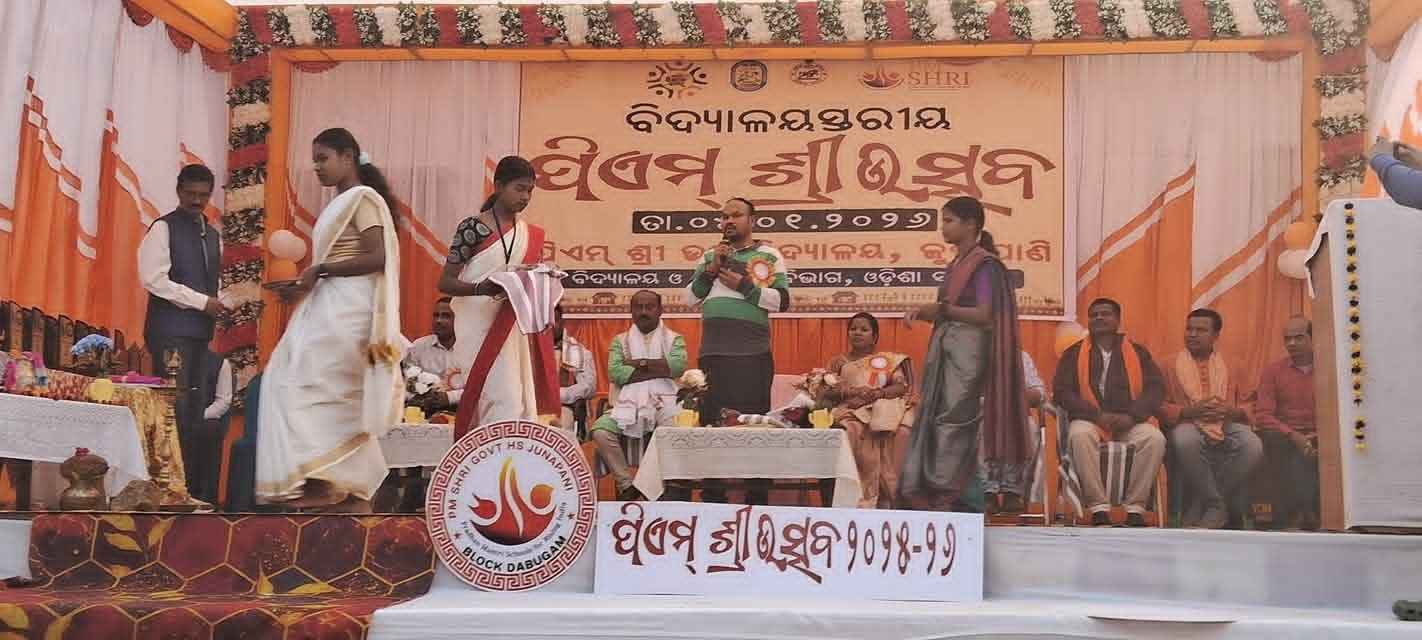 ଡାବୁଗାଁ ବ୍ଳକ ଜୁନାପାଣି ଗ୍ରାମ ପଞ୍ଚାୟତ ସଦର ମହକୁମାସ୍ଥିତ ଜୁନାପାଣି ପି.ଏମ୍.ଶ୍ରୀ ଉଚ୍ଚ ବିଦ୍ୟାଳୟ ପରିସରରେ ବିଦ୍ୟାଳୟ ସ୍ତରୀୟ ପି.ଏମ୍.ଶ୍ରୀ ଉତ୍ସବ ୨୦୨୫-୨୬ ମହାସମାରୋହରେ ପାଳିତ ହୋଇଯାଇଛି l ଏହି ଅବସରରେ ଆବାହକ ସମ୍ପୃକ୍ତ ବିଦ୍ୟାଳୟର ପ୍ରଧାନଶିକ୍ଷକ ଗୌତମ ବାରିକ, ଶିକ୍ଷକ ଶିକ୍ଷୟତ୍ରୀ , ଛାତ୍ରଛାତ୍ରୀ ବୃନ୍ଦ, ବିଦ୍ୟାଳୟ ପରିଚାଳନା କମିଟି, ପୁରାତନ ଛାତ୍ର ଛାତ୍ରୀ, କମିଟି ସଭ୍ୟ ସଭ୍ୟା ବୃନ୍ଦ ଙ୍କ ଦ୍ଵାରା ଉକ୍ତ ଉତ୍ସବ କରାଯାଇଥିଲା l ଆବାହକ ସମ୍ପୃକ୍ତ ବିଦ୍ୟାଳୟର ପ୍ରଧାନ ଶିକ୍ଷକ ଶ୍ରୀ ବାରିକ ଙ୍କ ଅଧ୍ୟକ୍ଷତାରେ ମୁଖ୍ୟ ଅତିଥି ନବରଙ୍ଗପୁର ଜିଲ୍ଲା ଅତିରିକ୍ତ ଜିଲ୍ଲା ଶିକ୍ଷା ଅଧିକାରୀ ପ୍ରକାଶ ଚନ୍ଦ୍ର ମହାଲିକ, ସମ୍ମାନୀତ ଅତିଥି ଡାବୁଗାଁ ଗୋଷ୍ଠୀ ଶିକ୍ଷା ଅଧିକାରିଣୀ ରଶ୍ମିତା ନେତାମ, ଅତିରିକ୍ତ ଗୋଷ୍ଠୀ ଶିକ୍ଷା ଅଧିକାରୀ ଭଗବାନ ମାଝୀ ଓ ସନ୍ତୋଷ କୁମାର ସାହୁ, ପୁରାତନ ଛାତ୍ର ଛାତ୍ରୀ କମିଟି ଅଧ୍ୟକ୍ଷ ରଘୁ ହରିଜନ, ବିଦ୍ୟାଳୟ ପରିଚାଳନା କମିଟି ସଭାପତି ମାଧବ ଭତ୍ରl ପ୍ରମୁଖ ଉପସ୍ଥିତ ରହି ମୁଖ୍ୟ ଅତିଥି ଙ୍କ ଦ୍ଵାରା ଉଦଘାଟନ କରାଯାଇଥିଲା l ପ୍ରଭୁ ଜଗନ୍ନାଥ ଙ୍କ ଫଟୋ ଚିତ୍ର ରେ ପୁଷ୍ପ ମାଲ୍ୟାର୍ପଣ କରି ଧୂପ ଦୀପ ପ୍ରଜ୍ଜ୍ଵଳନ କରିବା ପରେ ଅତିଥି ମାନଙ୍କୁ ପୁଷ୍ପ ଗୁଚ୍ଛ, ଉତ୍ତରୀୟ ଦେଇ ସ୍ୱାଗତ ସମ୍ବର୍ଦ୍ଧନା କରାଯାଇଥିଲା |