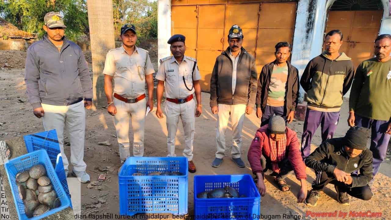ନବରଙ୍ଗପୁର ବନଖଣ୍ଡ ଅଧିନ ଡାବୁଗାଁ ବନାଞ୍ଚଳର ମାଇଦଲପୁର ସେକ୍ସନରେ ଗୁରୁବାର ସନ୍ଧ୍ୟା ସମୟରେ ନବରଙ୍ଗପୁର ଜିଲ୍ଲା ବନଖଣ୍ଡ ଅଧିକାରୀ ଶୁଭେନ୍ଦୁ ବେହେରାଙ୍କ ନେତୃତ୍ୱ lରେ ଡାବୁଗାଁ ବନାଞ୍ଚଳ ଅଧିକାରୀ ରାମ ଚନ୍ଦ୍ର ଭତ୍ରାଙ୍କ ତତ୍ତ୍ଵାବଧାନରେ ୮୩ଟି କଇଁଛ ଜବତ କରିବା ସହ ୨ଜଣ କଇଁଛ ବେପାରୀ ଙ୍କୁ ଗିରଫ କରାଯାଇଛି । ସୁଚନା ଯୋଗ୍ୟ ଡାବୁଗାଁ ଥାନା ଅଧୀନ ଚାଟିଗୁଡା ଗ୍ରାମର ପବିତ୍ର ସରକାର (୩୦) ଓ ରାମ ପ୍ରାସାଦ ସରକାର (୩୪) ଏକ ମୋଟସାଇକଲ ନଂ ଓଡ଼ି ୨୪ଜି ୪୫୪୮ ଯୋଗେ ୮୩ଟି କଇଁଛ ବିକ୍ରି କରିବା କୁ ନେଉଥିବା ସମୟରେ କୌଣସି ସୂତ୍ରରୁ ଖବର ପାଇ ନବରଙ୍ଗପୁର ବନଖଣ୍ଡ ଅଧିକାରୀ ଡାବୁଗାଁ ବଣପାଳ ଶ୍ରୀ ଭତ୍ରା ଙ୍କ ଜରୀଆରେ ମଇଦଲପୁର ଛକ ନିକଟରେ କଇଁଛ ସହ ବେପାରୀଙ୍କୁ ମୋଟରସାଇକଲ ସହ ଧରିଥିଲେ । ପରେ ଶୁକ୍ରବାର ଦିନ ଉକ୍ତ ବେପାରୀ ୨ଜଣଙ୍କୁ କୋର୍ଟ ଚାଲାଣ କରାଯାଇଛି । ଉଦ୍ଧାର କଇଁଛ କୁ ଇନ୍ଦ୍ରାବତୀ ଡ୍ୟାମ ରେ ଛଡାଯିବ ବୋଲି ଶ୍ରୀ ଭତ୍ରା ସୁଚନା ଦେଇଛନ୍ତି । ଏହି ସମୟର ଫରେଷ୍ଟର ମାଧୁସୁଦନ ପାତ୍ର, ଉମାଶଙ୍କର ମିଶ୍ର , ବସନ୍ତ କୁମାର ନାୟକ ଓ ବନାଞ୍ଚଳ ର କର୍ମଚାରୀ ମାନେ ଉପସ୍ଥିତ ଥିଲେ ।