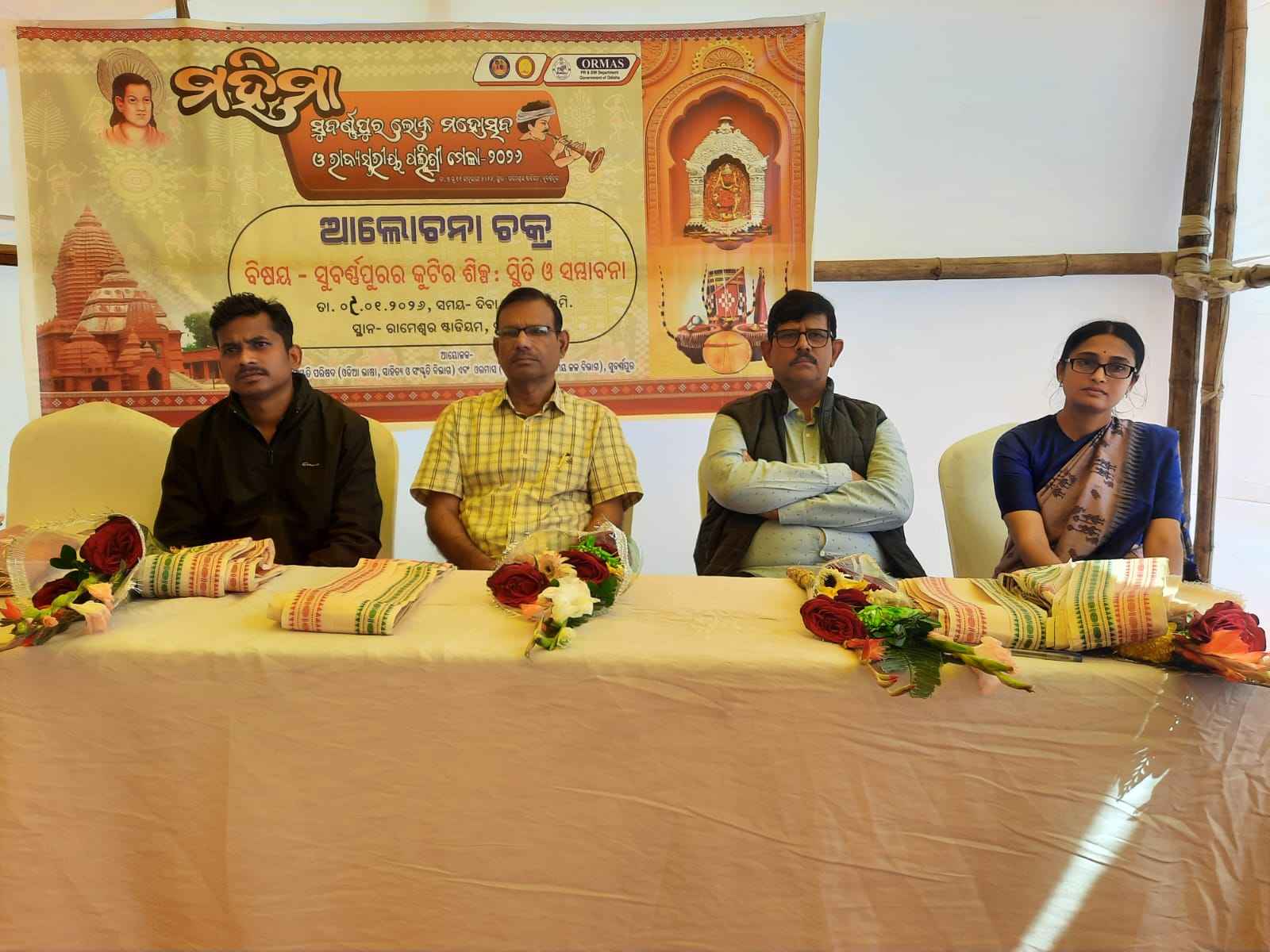 ସୁବର୍ଣ୍ଣପୁର (ମନୋରଞ୍ଜନ ତ୍ରିପାଠୀ) ସୁବର୍ଣ୍ଣପୁର ରାମେଶ୍ବର ଷ୍ଟାଡିୟମ୍ ଠାରେ "ମହିମା" ସୁବର୍ଣ୍ଣପୁର ଲୋକ ମହୋତ୍ସବ ଏବଂ ରାଜ୍ୟ ସ୍ତରୀୟ ପଲ୍ଲିଶ୍ରୀ ମେଳା - ୨୦୨୬ ର ତୃତୀୟ ଦିବସ ଅବସରରେ ସୁବର୍ଣ୍ଣପୁର ଜିଲ୍ଲାର କୁଟୀର ଶିଳ୍ପର ସ୍ଥିତି ଓ ସମ୍ଭାବନା ଉପରେ ଆଲୋଚନା ଚକ୍ର ଅନୁଷ୍ଠିତ ହୋଇଥିଲା। ଏହି ଆଲୋଚନା ଚକ୍ରର ସଭାପତି ଶ୍ରୀ ସୌରଭ ରଞ୍ଜନ ଖମାରି ପଲ୍ଲୀଶ୍ରୀ ମେଳାର ଦ୍ୱିତୀୟ ଆଲୋଚନା ଚକ୍ର ଆୟୋଜନ କରିଥିଲେ। ଏହି ଆଲୋଚନା ଚକ୍ରରେ “ସୁବର୍ଣ୍ଣପୁରର କୁଟୀର ଶିଳ୍ପ: ସ୍ଥିତି ଓ ସମ୍ଭାବନା” ବିଷୟବସ୍ତୁ ଉପରେ ଉପସ୍ଥିତ ଅତିଥି, ଅଂଶଗ୍ରହଣକାରୀ ଓ ଆୟୋଜକମାନେ ବିସ୍ତୃତ ଭାବେ ଆଲୋଚନା କରିଥିଲେ। ଏହି