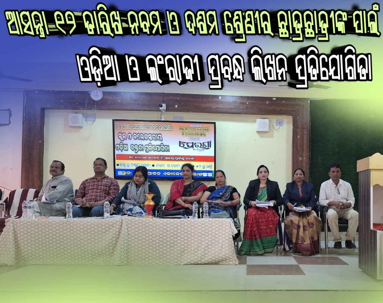 ଆସନ୍ତା ୧୨ ତାରିଖ ଦିନ ପୁଣି ଥରେ ପତିତପାବନ ଏକାଡେମୀ ଠାରେ ନବମ ଓ ଦଶମ ଶ୍ରେଣୀର ଛାତ୍ରଛାତ୍ରୀଙ୍କ ମଧ୍ୟରେ ଓଡ଼ିଆ ଏବଂ ଇଂରାଜୀ ପ୍ରବନ୍ଧ ପ୍ରତିଯୋଗିତା ଅନୁଷ୍ଠିତ ହେବ l ଇଚ୍ଛୁକ ପ୍ରତିଯୋଗୀ ମାନେ ଅଂଶଗ୍ରହଣ କରିବା ପାଇଁ ପ୍ରେରଣା ତରଫରୁ ଅନୁରୋଧ କରାଯାଇଛି l ଆଜିର ପ୍ରତିଯୋଗିତାକୁ ସଫଳ କରିବାରେ ସ୍କୁଲର ପ୍ରଧାନ ଶିକ୍ଷକ ଦ୍ଵିତିଚନ୍ଦ୍ର ମହାଲିଙ୍ଗଙ୍କ ସମେତ ସମସ୍ତ ଶିକ୍ଷକ ଶିକ୍ଷୟିତ୍ରୀ ସହଯୋଗ କରିଥିଲେ l
