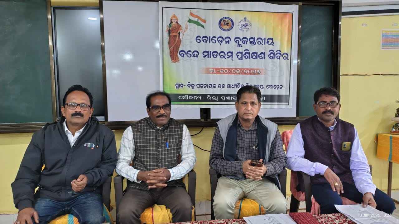 ନୂଆପଡ଼ା ଜିଲ୍ଲା ପ୍ରଶାସନ ଦ୍ବାରା ବୋଡ଼େନ ବି ଡି ଓ ସୁଶାନ୍ତ କୁମାର ରଣାଙ୍କ ଅଧ୍ୟକ୍ଷତାରେ ବିଜୁ ପଟ୍ଟନାୟକ ଉଚ୍ଚ ମାଧ୍ୟମିକ ବିଦ୍ୟାଳୟ ବୋଡ଼େନ ଠାରେ ବ୍ଲକ ସ୍ତରୀୟ ବନ୍ଦେ ମାତରମ୍ ପ୍ରଶିକ୍ଷଣ ଶିବିର ଆୟୋଜିତ ହୋଇଥିଲା । ଶିବିରରେ ବ୍ଲକର ବିଭିନ୍ନ ଶିକ୍ଷାନୁଷ୍ଠାନରୁ ଚୟନିତ ଶିକ୍ଷକ-ଶିକ୍ଷୟତ୍ରୀମାନେ ଯୋଗଦେଇଥିଲେ । କଲେଜର ଭାରପ୍ରାପ୍ତ ଅଧ୍ୟକ୍ଷ ସାମୂଆଲ ଦାନି ଉପସ୍ଥିତ ରହି, ବନ୍ଦେ ମାତରମ୍ ସଙ୍ଗୀତର ଇତିହାସ ଉପରେ ଆଲୋକପାତ କରିଥିଲେ । ଏହି ସଙ୍ଗୀତ କିପରି ଦେଶବାସୀଙ୍କ ଉଦ୍ଦେଶ୍ୟରେ ଉତ୍ସର୍ଗୀକୃତ ତାହାରି ଉପରେ ଉପସ୍ଥିତ ସମସ୍ତଙ୍କୁ ବିସ୍ତାରିତ ଭାବରେ ବୁଝାଇଥିଲେ ।ପ୍ରଶିକ୍ଷକ ଭାବରେ ପ୍ରାଧ୍ୟାପକ ଗୟାଧର ମହାନ୍ତି,ଶିକ୍ଷକ ଉମାକାନ୍ତ ବାଗ ଓ ମାଧବ ବାଗ ଯୋଗଦାନ କରି ବନ୍ଦେ ମାତରଂ ସଙ୍ଗୀତ ଗାନ କରିବାର ଶୈଳୀ ସହିତ ଏହାର ବିଶେଷତ୍ୱ ଉପରେ ଅବଗତ କରାଇଥିଲେ । ଏହି ପ୍ରଶିକ୍ଷଣ ଶିବିର ମାଧ୍ୟମରେ ଶିକ୍ଷକ-ଶିକ୍ଷୟତ୍ରୀମାନେ ବନ୍ଦେ ମାତରମ୍ ସଙ୍ଗୀତର ସଠିକ୍ ଗାୟନ ଶୈଳୀ ସହିତ ଏହାର ଦେଶଭକ୍ତି ମୂଲ୍ୟବୋଧକୁ ଅଧିକ ଭାବରେ ଅନୁଭବ କରିପାରିଥିଲେ ।ବ୍ଲକ ପ୍ରଶାସନ ପକ୍ଷରୁ ଜି ପି ଡି ଓ ଭୀଷ୍ମ କୁମାର, ଏ ପି ଓ ରବିନାରାୟଣ ରାଉତ, ଏ ବି ଏଫ୍ ରାକେଶ କୁମାର ଷଡଙ୍ଗୀ, ବି ଏସ ଏସ ଓ କୁମର ମାଝୀ,ବି ପି ସି ହେରାମ୍ବ ବିଶ୍ଵାଳଙ୍କ ସମେତ ଅନ୍ୟ ଅଧିକାରୀ ତଥା କଲେଜର ସମସ୍ତ ଷ୍ଟାଫ ସହଯୋଗ କରିଥିଲେ।
