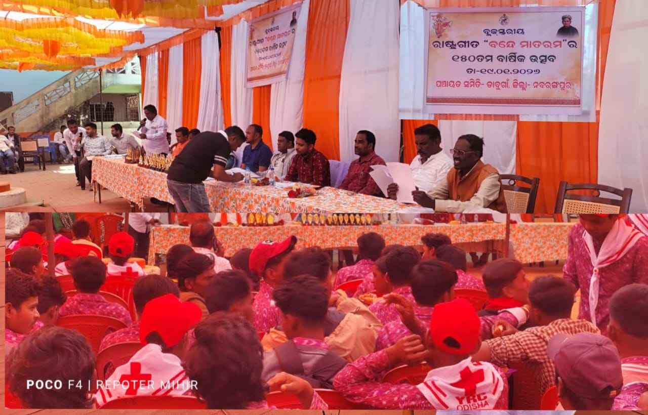 ନବରଙ୍ଗପୁର(ପ୍ରିୟଦର୍ଶିନୀ ପାତ୍ର) ଡାବୁଗାଁ ବ୍ଳକ ପରିସରରେ ବ୍ଲକ ସ୍ତରୀୟ ରାଷ୍ଟ୍ରୀଗୀତ “ବନ୍ଦେ ମାତରମ୍” ର ୧୫୦ ତମ ବାର୍ଷିକ ଉତ୍ସବ ପାଳିତ ହୋଇଯାଇଛି | ଏଥିରେ ମୁଖ୍ୟ ଅତିଥି ଭାବେ ଡାବୁଗାଁ ବିଧାୟକ ମନୋହର ରନ୍ଧାରୀ ଯୋଗ ଦେଇ ରାଷ୍ଟ୍ର ଗୀତ, ରାଷ୍ଟ୍ର ଭକ୍ତି ଉପରେ ଉଦବୋଧନ ଦେଇଥିଲେ | ପୂର୍ବରୁ ଅନୁଷ୍ଠିତ ପ୍ରତିଯୋଗୀତା ଯଥା:- ପ୍ରବନ୍ଧରେ ଉପ କନିଷ୍ଠ ବିଭାଗରେ ଅବନ୍ତିକା ସ୍ଵାଇଁ (୧ମ),ସେବିକା ଭତ୍ରା (୨ୟ) ଓ ବସନ୍ତ ଶବର (୩ୟ), କନିଷ୍ଠ ବିଭାଗରେ ସାଇ ସତିଶ ବକ୍ସି (୧ମ), ସଞ୍ଜିତା ପନକା (୨ୟ) ଓ ବନିତା ହରିଜନ (୩ୟ), ବରିଷ୍ଠ ବିଭାଗରେ ଏସ. ହାରିକା (୧ମ), ରଞ୍ଜନ ସାନ୍ତା (୨ୟ) ଓ ରଘୁ ସାନ୍ତା (୩ୟ), ଏବଂ ବକ୍ତୃତାରେ ଉପ କନିଷ୍ଠ ବିଭାଗରେ ପ୍ରିନ୍ସ ରଞ୍ଜନ ସାହୁ (୧ମ), ଦେବାନନ୍ଦ ମାଝି (୨ୟ) ଓ ଟୁନା ପନକା (୩ୟ), କନିଷ୍ଠ ବିଭାଗରେ ସାଇନାଥ ପଣ୍ଡା (୧ମ), ମଧୁସ୍ମିତା ବଇପାରି (୨ୟ) ଓ କବିତା ମେହେର (୩ୟ), ବରିଷ୍ଠ ବିଭାଗରେ ଶୁଭ୍ରାଂଶୁ ଶେଖର ପଣ୍ଡା (୧ମ), ପାର୍ବତୀ ଭତ୍ରା (୨ୟ) ଓ ମିନାକ୍ଷୀ ପନକା (୩ୟ), ସଙ୍ଗୀତ ରେ ଉପ କନିଷ୍ଠ ବିଭାଗରେ ଜାଗୃତି ପଟ୍ଟନାୟକ (୧ମ), ପ୍ରସନ୍ନ ଗୌଡ (୨ୟ) ଓ ଶିବାନୀ ସାନ୍ତା (୩ୟ), କନିଷ୍ଠ ବିଭାଗରେ ମୀରା ବିଶୋଇ (୧ମ), ଗୀତାଞ୍ଜଳୀ ହରିଜନ (୨ୟ) ଓ ମଦନା ପୂଜାରୀ (୩ୟ), ବରିଷ୍ଠ ବିଭାଗରେ ପଙ୍କଜ ମାଝି (୧ମ), କରିମ ପନକା (୨ୟ) ଓ ଅର୍ଚ୍ଚିତା ଖିଲୋ (୩ୟ), ଏବଂ ଚିତ୍ରାଙ୍କନରେ ଉପ କନିଷ୍ଠ ବିଭାଗରେ ତପସ୍ଵିନୀ ପଣ୍ଡା (୧ମ), ଗଜେନ୍ଦ୍ର ଭତ୍ରା (୨ୟ) ଓ ରୀତିକା ଗୌଡ (୩ୟ), କନିଷ୍ଠ ବିଭାଗରେ ଅନ୍ତରାମ ମେହେର (୧ମ), ଥବୀର ହାଲବା (୨ୟ) ଓ ସାଗରିକା ମହାରଣା (୩ୟ), ବରିଷ୍ଠ ବିଭାଗରେ ମହେନ୍ଦ୍ର ସାନ୍ତା (୧ମ), ଟୁନା ସାନ୍ତା (୨ୟ) ଓ ଶ୍ରବଣ ମାଝି (୩ୟ) ପ୍ରମୁଖ ଙ୍କୁ ଅତିଥି ମାନଙ୍କ ଦ୍ଵାରା ପୁରସ୍କୃତ କରାଯାଇଥିଲା | ଏଥିରେ ଅନ୍ୟ ଅତିଥି ଭାବେ ଜିଲାପରିଷଦ ସଭ୍ୟ ଧନସିଂ ଭତ୍ରା,ବିଜେପି ବୋରୀଗାଁ ମଣ୍ଡଳ ସଭାପତି ଜଗଦୀଶ ଭତ୍ରା, ରାଜ୍ୟସଭା ସାଂସଦ ଙ୍କ ପ୍ରତିନିଧି ରାମାରାଓ ଚୌଧୁରୀ, ବ୍ଲକ କଂଗ୍ରେସ ସଭାପତି ଜି. ସାଇ ରାଜୁ, ଜୁନାପାଣି ସରପଞ୍ଚ ଦୟାନିଧି ଭତ୍ରା, ବିଡିଓ ସମୀର କୁମାର ପାତ୍ର, ବ୍ଲକ ସାମାଜିକ ସୁରକ୍ଷା ଅଧିକାରୀ ଯତୀନ ପାଣିଗ୍ରାହୀ, ଅତିରିକ୍ତ ବ୍ଲକ ଶିକ୍ଷା ଅଧିକାରୀ ଭଗବାନ ମାଝି, ଭୈରବ ଉଚ୍ଚ ମାଧ୍ୟମିକ ବିଦ୍ୟାଳୟ ର ଛାତ୍ରୀଛାତ୍ର ଓ କୃତକାର୍ଯ୍ୟ ହୋଇଥିବା ଛାତ୍ରୀଛାତ୍ର, ଶିକ୍ଷୟତ୍ରୀ ଶିକ୍ଷକ ମାନେ ଉପସ୍ଥିତ ଥିଲେ | ଅମୂଲ୍ୟ ଦଳାଇ କାର୍ଯ୍ୟକ୍ରମ ପରିଚାଳନା କରିଥିଲେ |