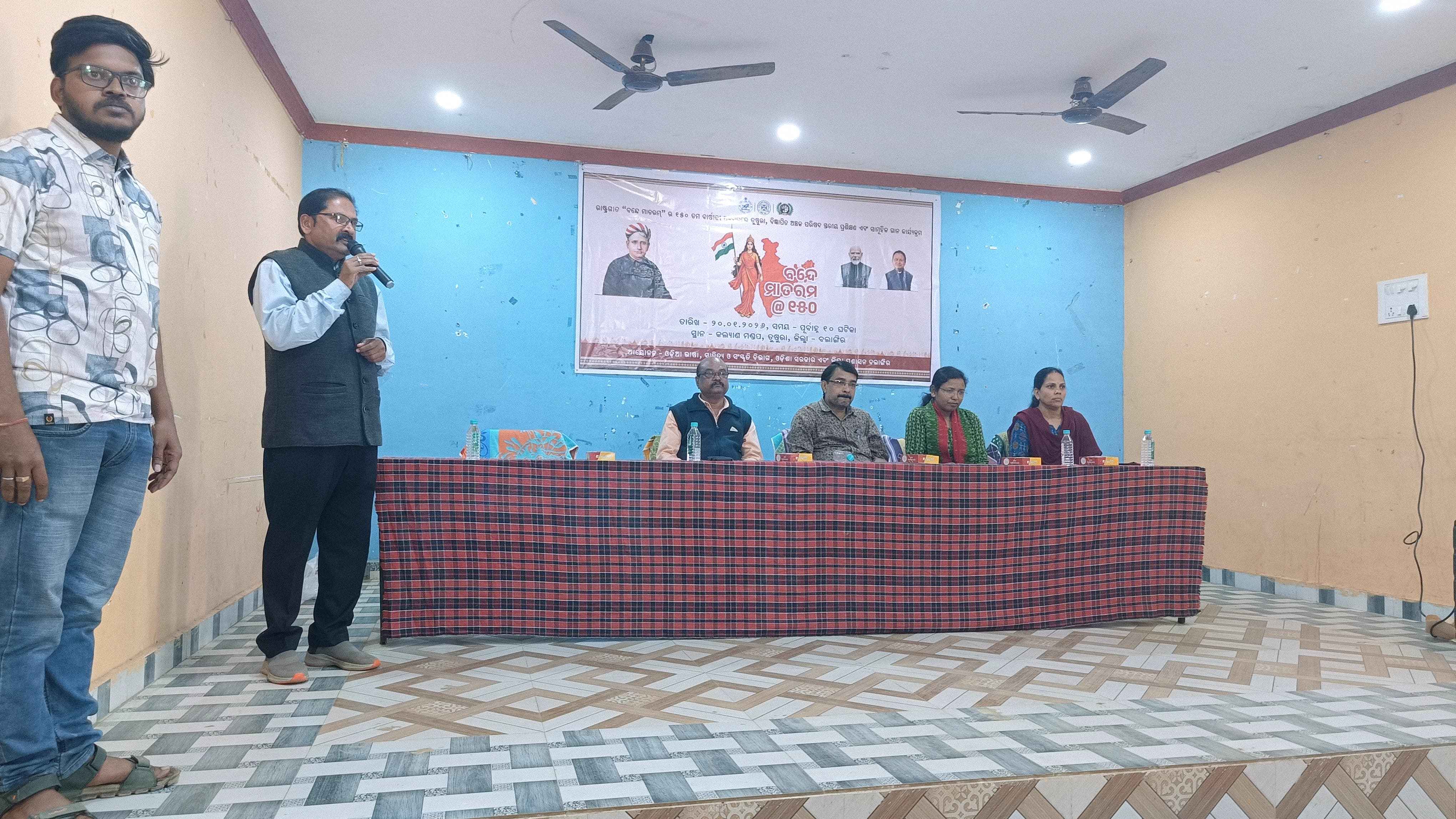 ତୁଷୁରା-(ପଞ୍ଚାନନ ନାଏକ )- ତୁଷୁରା ବିଜ୍ଞାପିତ ଅଞ୍ଚଳ ପରିଷଦ ଆନୁକୂଲ୍ୟରେ କଲ୍ୟାଣ ମଣ୍ଡପ ଠାରେ ରାଷ୍ଟ୍ରୀୟ ଗୀତ "ବନ୍ଦେ ମାତରଂ" ର ୧୫୦ ବର୍ଷ ପୂର୍ତ୍ତି ଉତ୍ସବ ମହା ସମାରୋହରେ ପାଳିତ ହୋଇ ଯାଇଛି। ଏଥିରେ ମୁଖ୍ୟ ଅତିଥି ଭାବେ ତୁଷୁରା ତହସିଲଦାର ତଥା ଇଓ ଆର୍ତ୍ତତ୍ରାଣ ଥାଟି ଯୋଗ ଦେଇ ଏହି ଅବସରରେ ପୂର୍ବରୁ ଅନୁଷ୍ଠିତ ହୋଇଥିବା ବକ୍ତୃତା ଓ ପ୍ରବନ୍ଧ ପ୍ରତିଯୋଗିତାର କୃତି ପ୍ରତିଯୋଗୀଙ୍କୁ ସାର୍ଟିଫିକେଟ ଓ ଟ୍ରଫି ପ୍ରଦାନ କରି ସମସ୍ତେ ରାଷ୍ଟ୍ର ଭକ୍ତିରେ ଉଦ୍ବୁଦ୍ଧ ହେବା ପାଇଁ ଛାତ୍ରଛାତ୍ରୀଙ୍କୁ ଆହ୍ବାନ ଦେଇଥିଲେ। ସମ୍ମାନିତ ଅତିଥି ଭାବେ ଅତିରିକ୍ତ ତହସିଲଦାର ସରିତା ମାଝି, ସେକ୍ସନ୍ ଅଫିସର ସୁନିତା ପଣ୍ଡା ଓ ତୁଷୁରା ଡିଗ୍ରୀ କଲେଜର ଅଧ୍ୟକ୍ଷ ସରୋଜ ପ୍ରଧାନ ଯୋଗ ଦେଇଥିଲେ। ତୁଷୁରା ସରକାରୀ ବାଳକ ଉଚ୍ଚ ପ୍ରାଥମିକ ବିଦ୍ୟାଳୟର ପ୍ରଧାନ ଶିକ୍ଷକ ଡ. ହେମନ୍ତ କୁମାର ଦାଶ ସଭା ସଞ୍ଚାଳନ କରିଥିଲେ। ସୌଭାଗ୍ୟ କୁମାର ନାଏକ, ରମାକାନ୍ତ ବିଶ୍ବାଲ ପିଣ୍ଟୁ ବିଶ୍ବାଲ ଓ ଏନ୍ଏସି ତୁଷୁରାର ସମସ୍ତ କର୍ମଚାରୀ ତଥା ସମସ୍ତ ବିଦ୍ୟାଳୟର ଗାଇଡ୍ ଶିକ୍ଷକ ଶିକ୍ଷିକା ସହଯୋଗ କରିଥିଲେ।